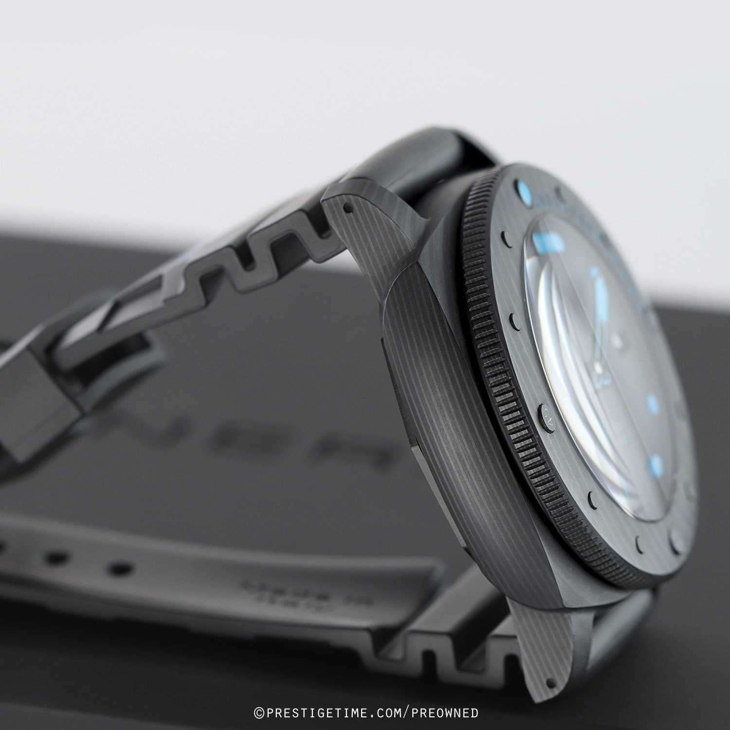 - Fitted on its Panerai original black rubber strap with a brushed black DLC coated titanium tang buckle. The strap is new & unworn with its full wear lifespan remaining.
