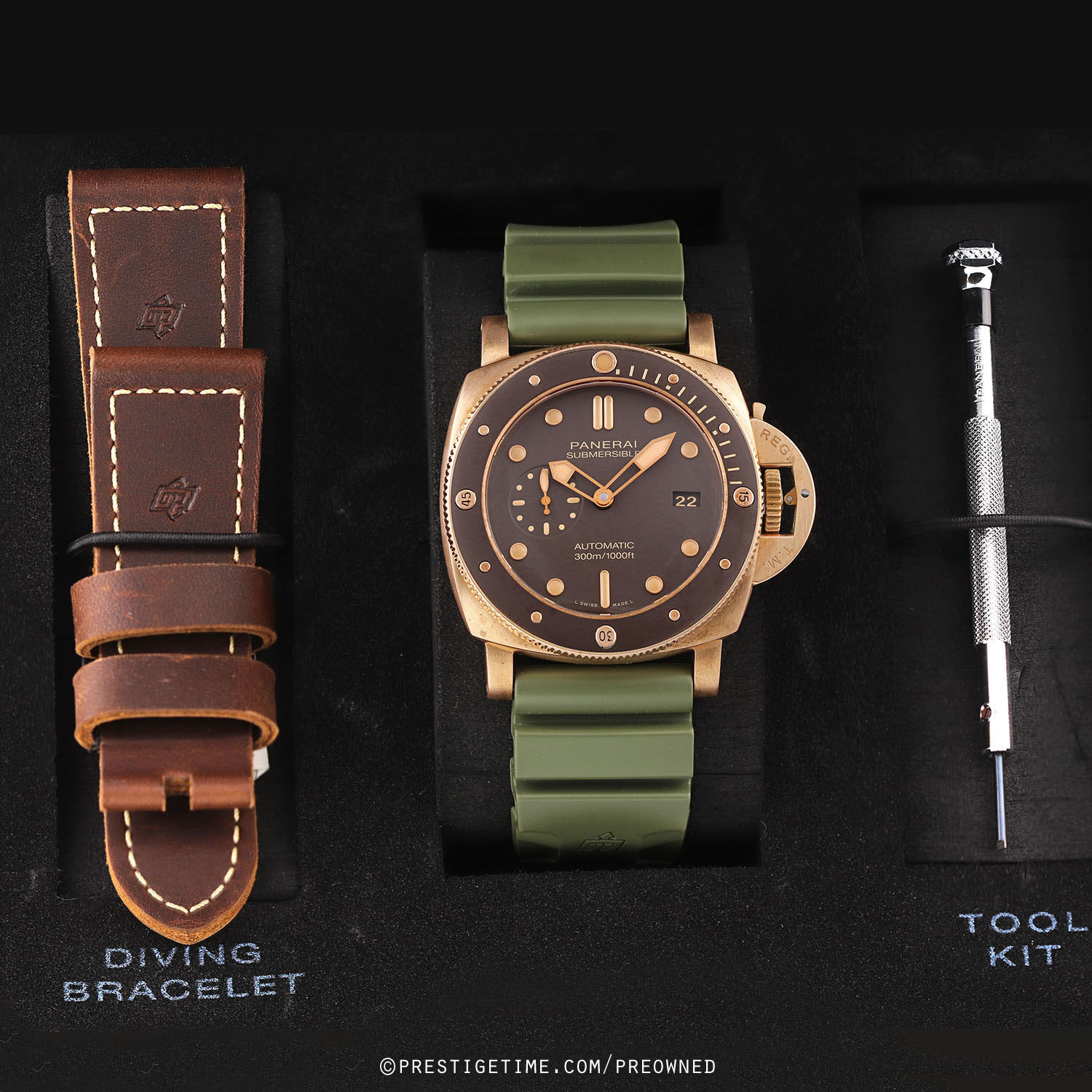 - Delivered with an additional Panerai brown calfskin leather strap with the Panerai logo hot-stamped onto both lengths of the strap. This strap is in new & unworn condition with its full wear lifespan remaining.