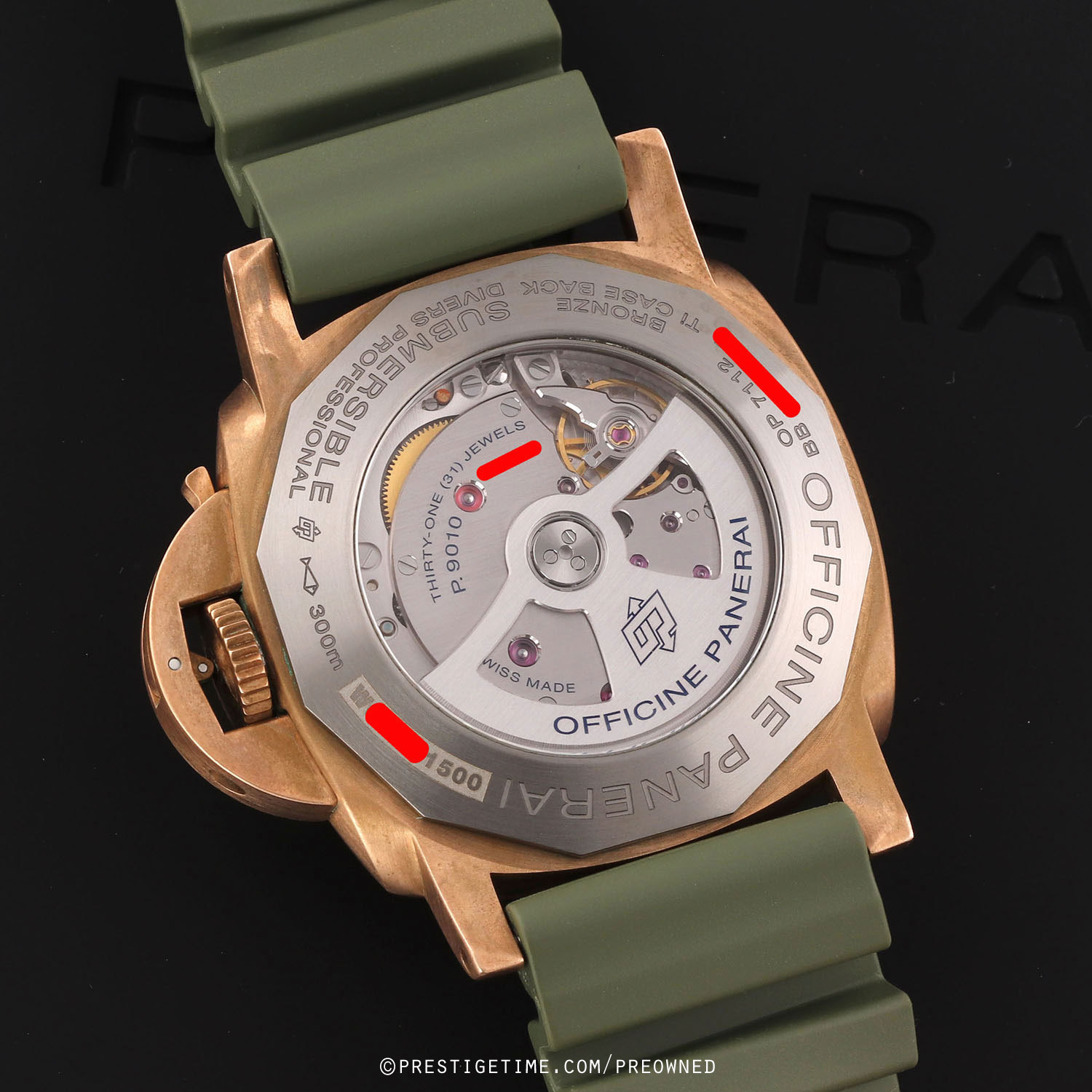 Movement: Powered by a Panerai in-house caliber P.9010, beats at 28,800 vph (4Hz), contains 31 jewels & has an impressive power reserve of 3 days (72 hours+).