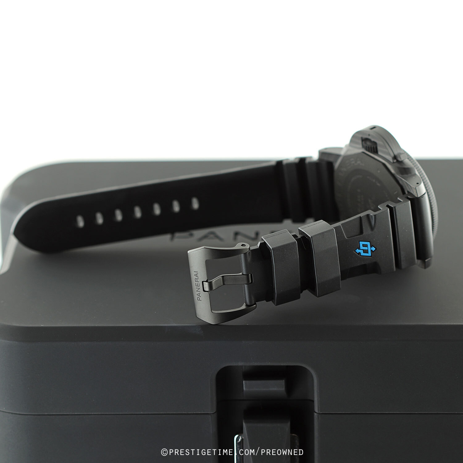 - Fit on its Panerai original black rubber strap with a brushed black coated tang buckle. The strap is unworn with its full wear lifespan remaining.