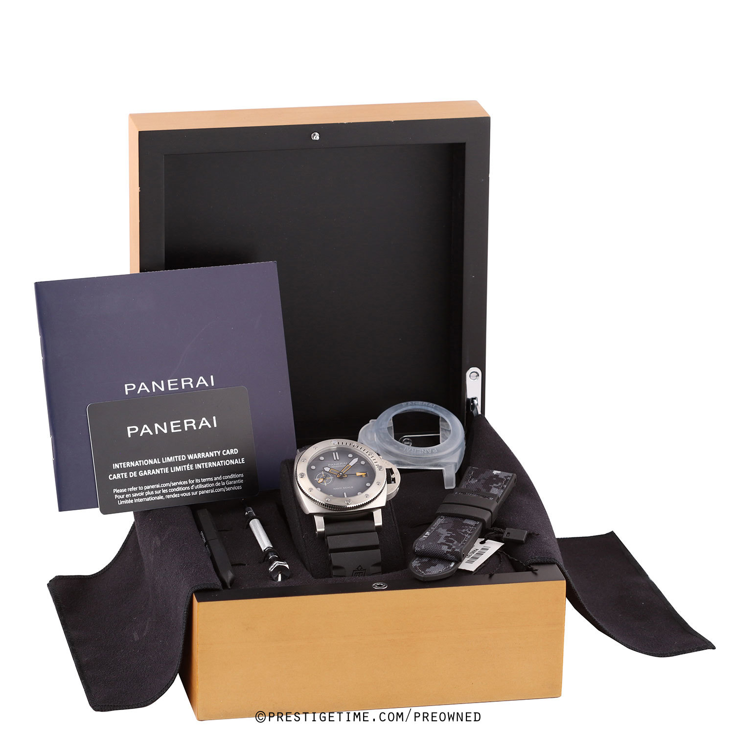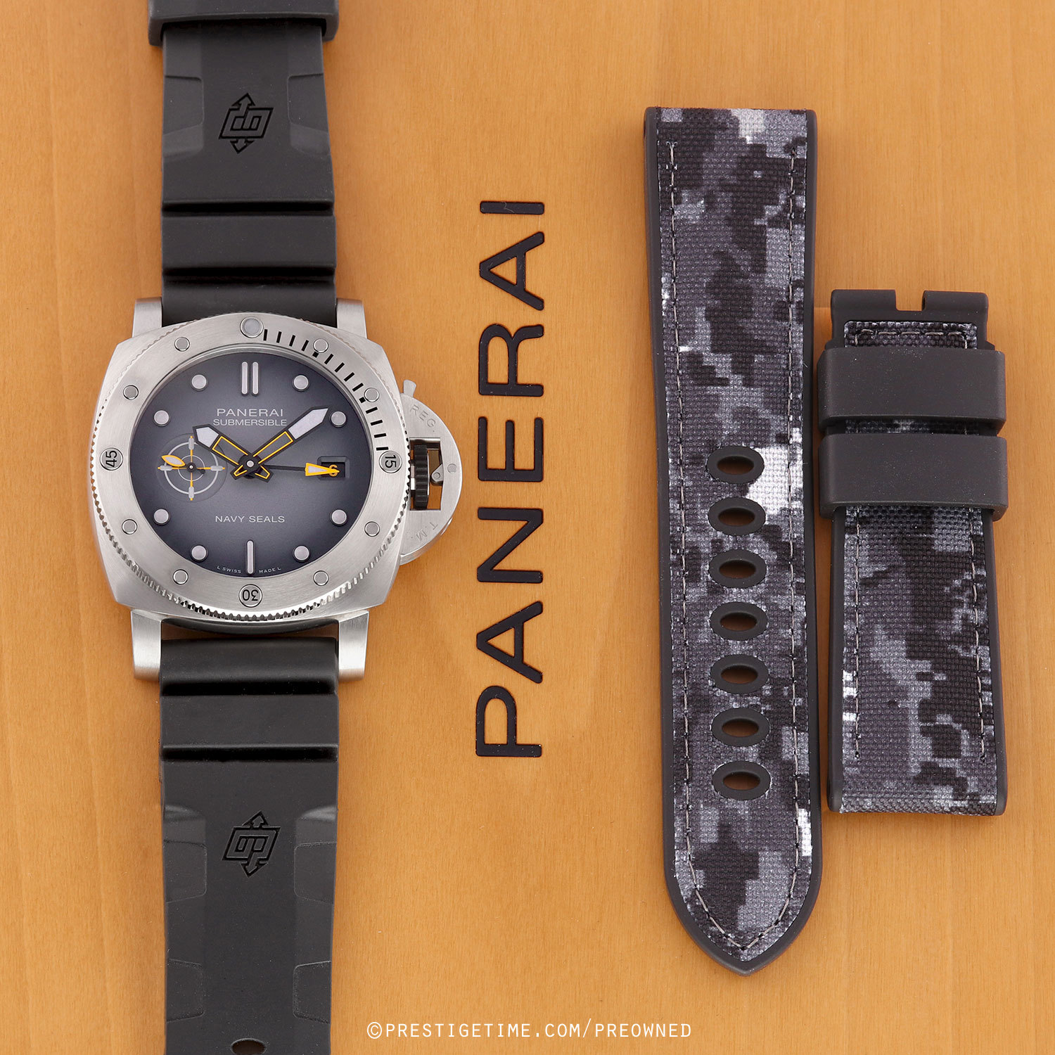 - Delivered with an additional Panerai camo design fabric & black rubber lined strap. This strap is brand new & unworn with its full wear-lifespan remaining.