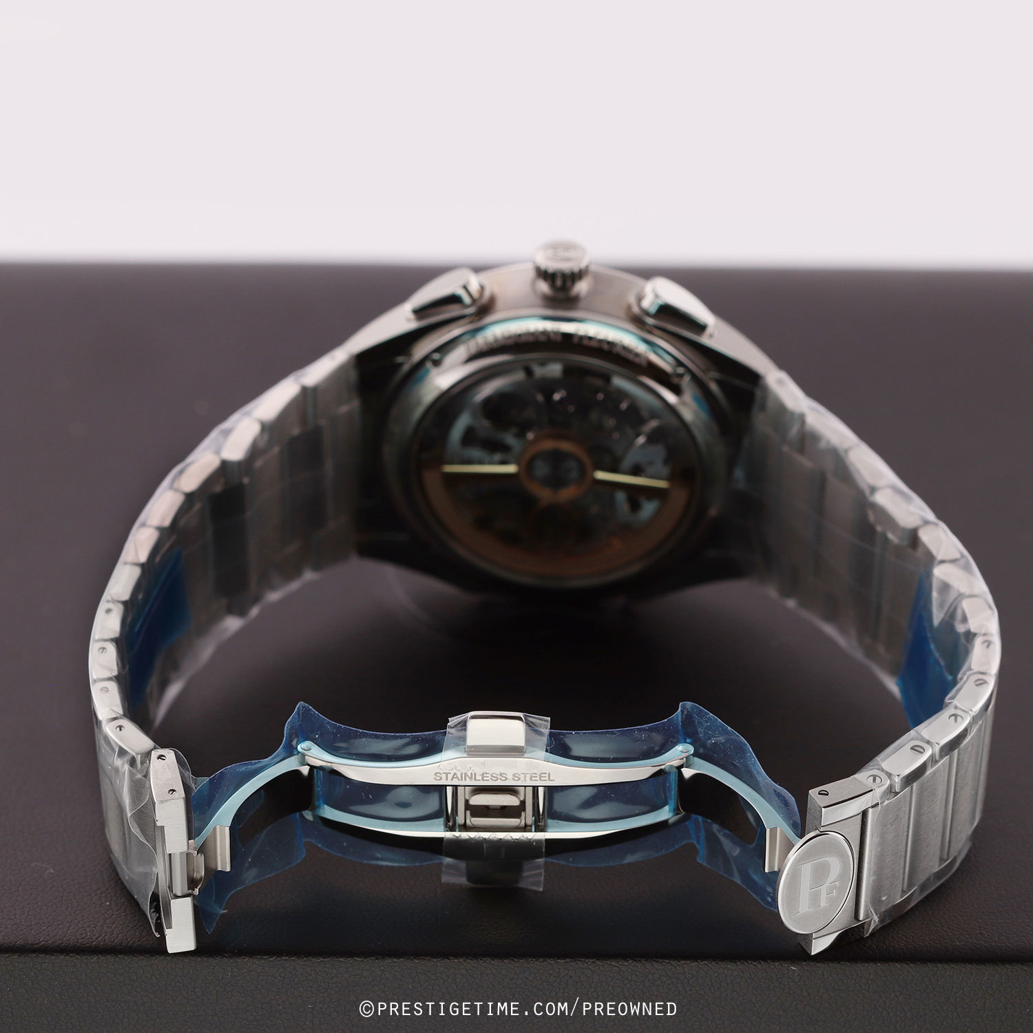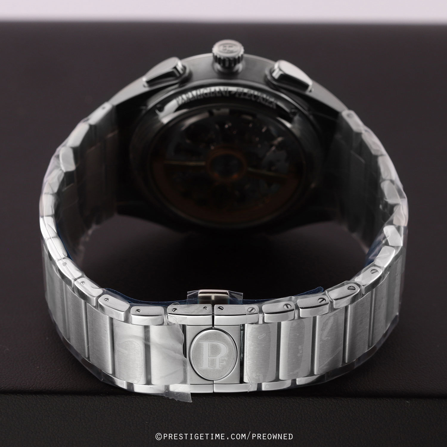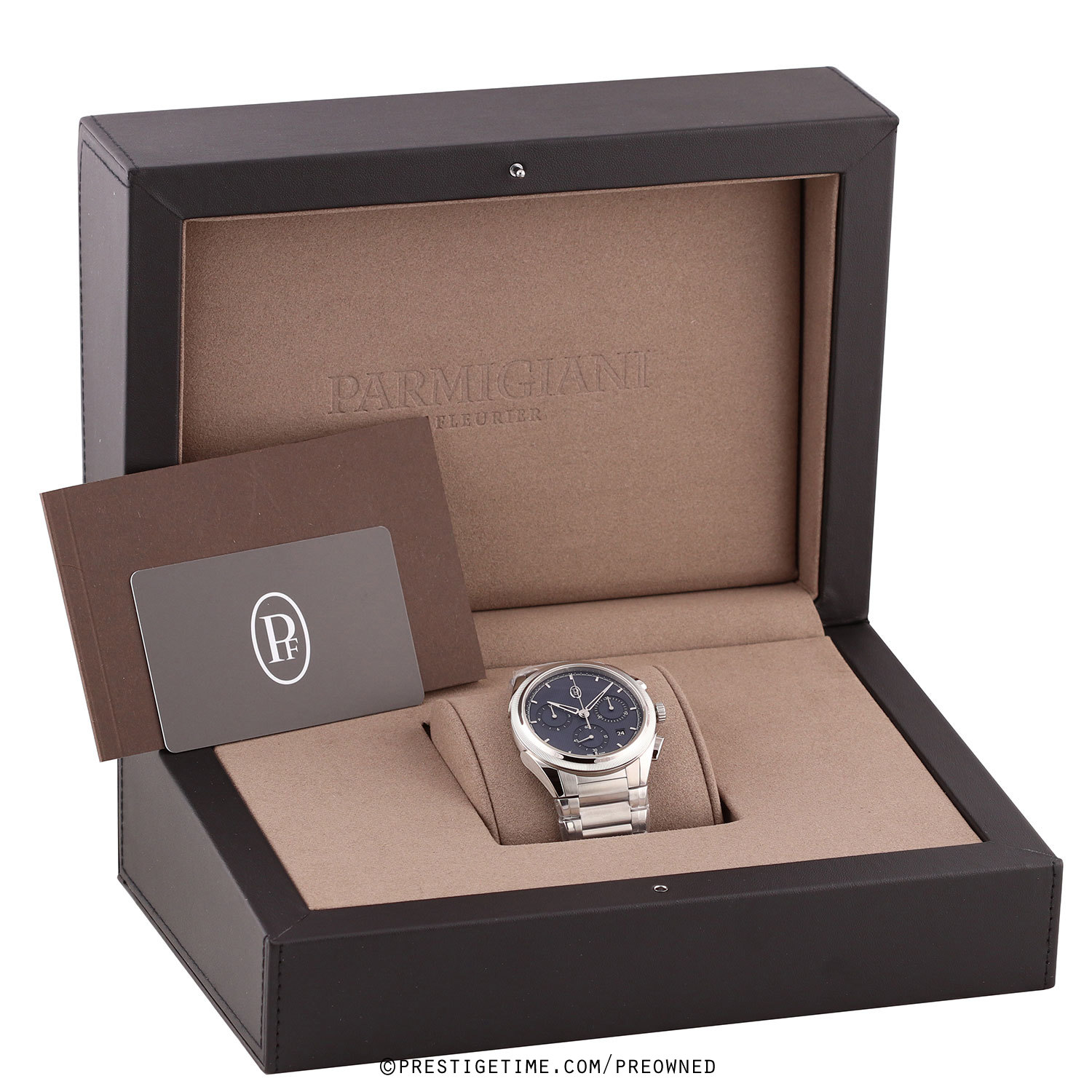 Bracelet: Fitted on its original Parmigiani brushed & polished stainless steel bracelet with a push-button folding clasp. The bracelet is fully linked & will fit up to an 8" wrist.