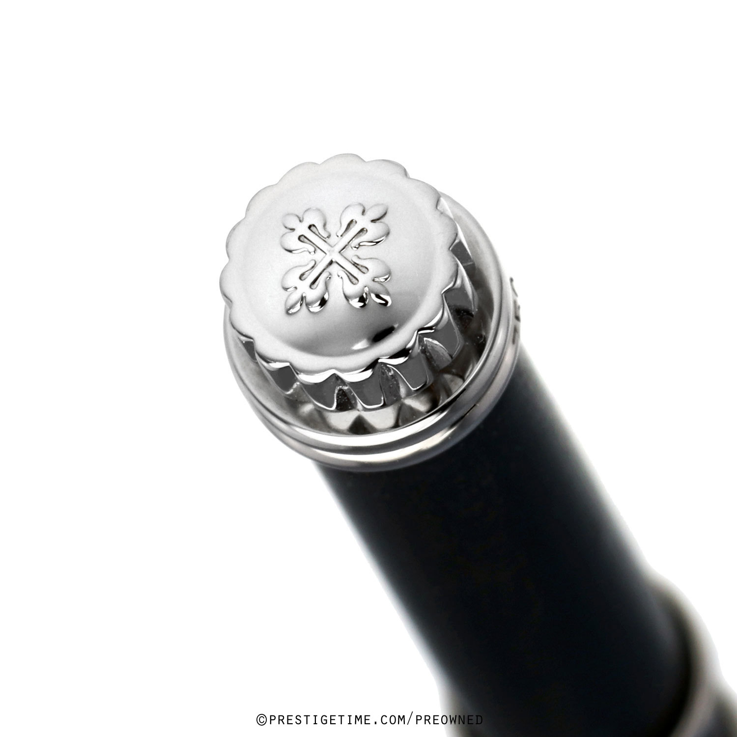 Genuine Patek Philippe stylus tool (pusher for recessed buttons). Black with 18kt white gold. In excellent condition. logo & hallmark stamping are present & clear.