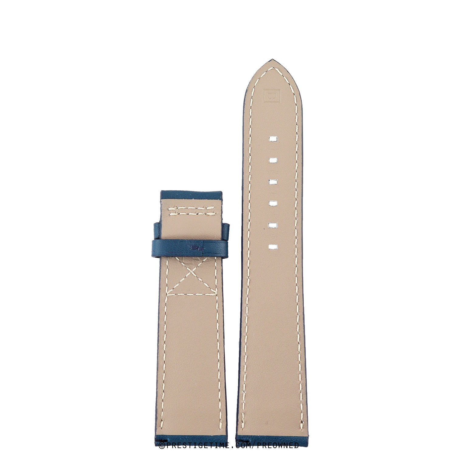 Genuine Patek Philippe blue calfskin strap with off-white stitching.