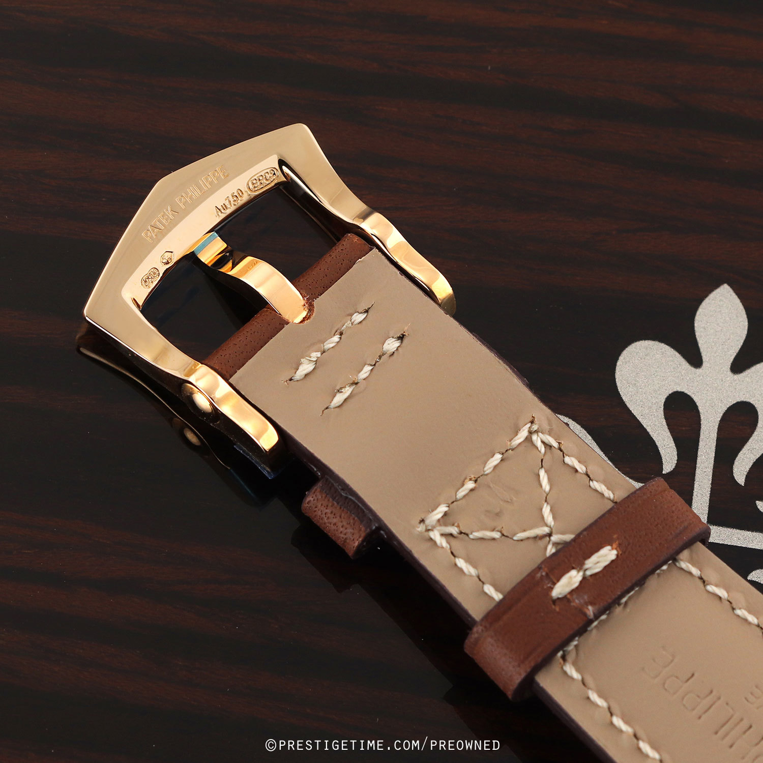 Strap: Fitted with its Patek original brown calfskin strap with white stitching & a polished 18kt rose gold tang buckle. The strap is unworn & crisp, in new condition.