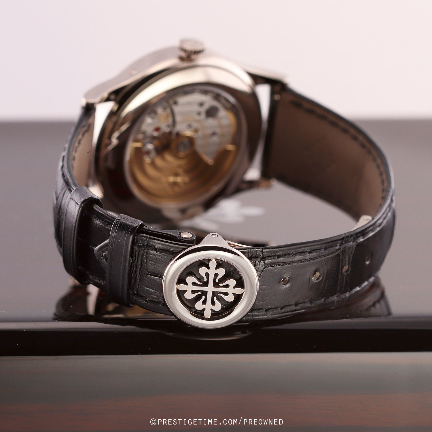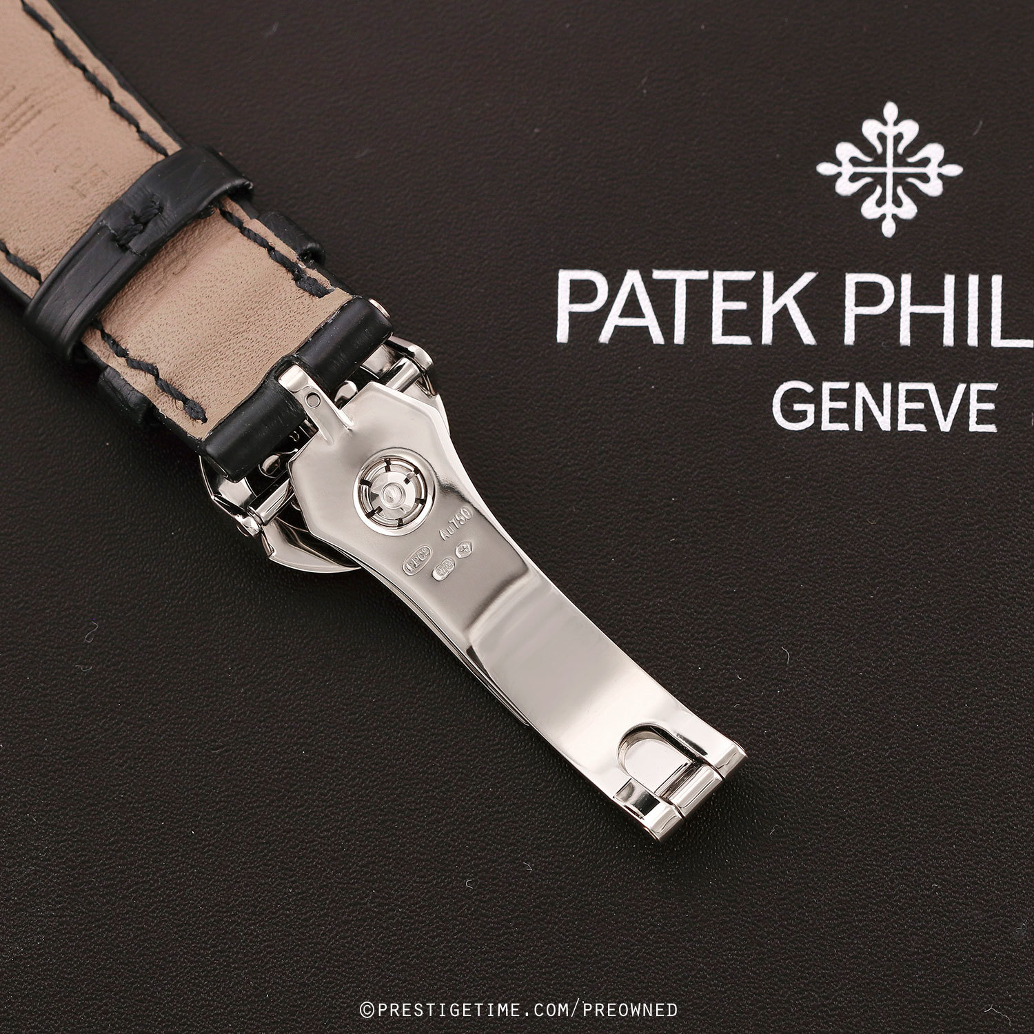 Strap: Fitted on its original Patek Phillipe black alligator strap with a solid 18kt white gold calatrava style deployant buckle. The strap is in excellent overall condition, with plenty of its wear-lifespan remaining. We would grade the strap as in 90%+ condition.