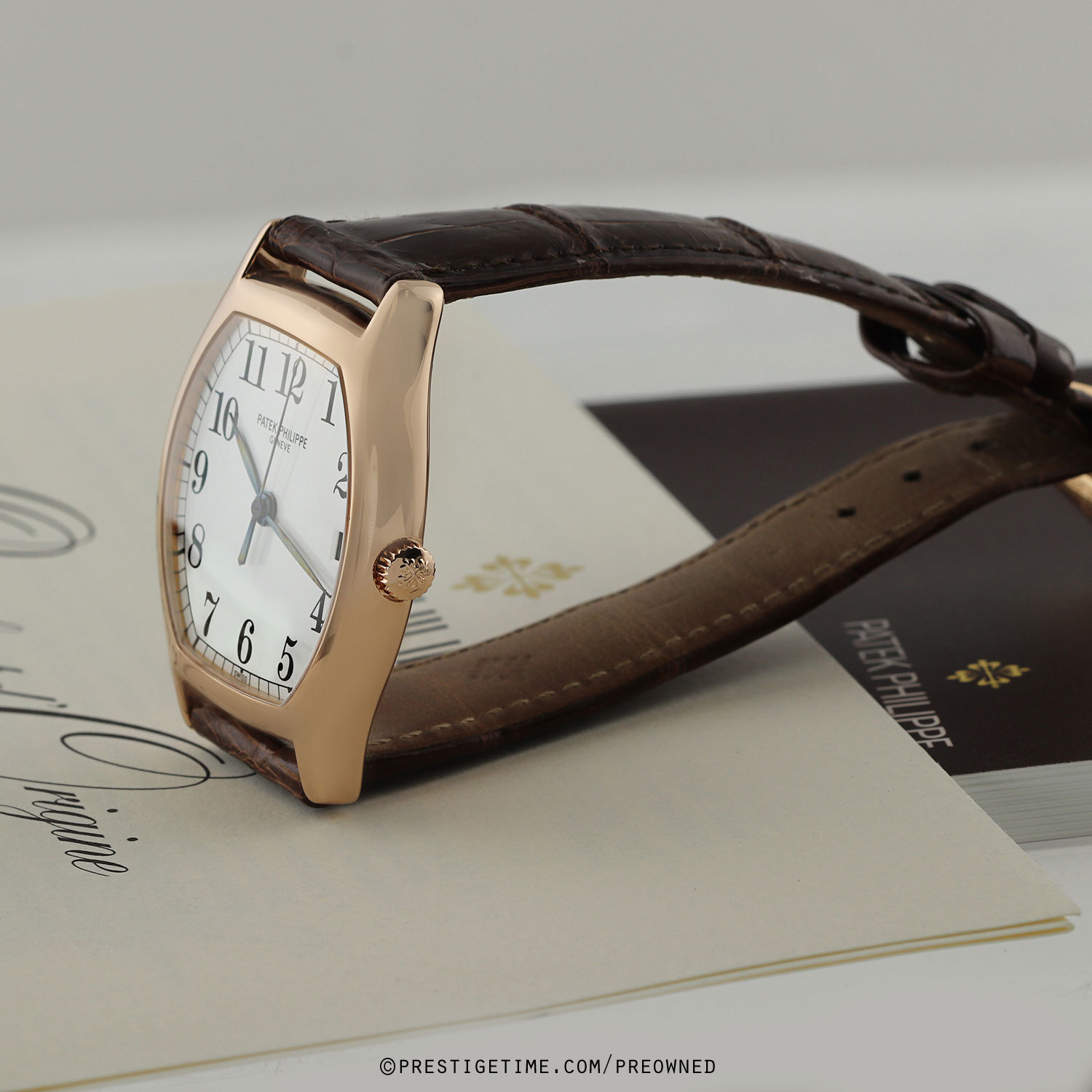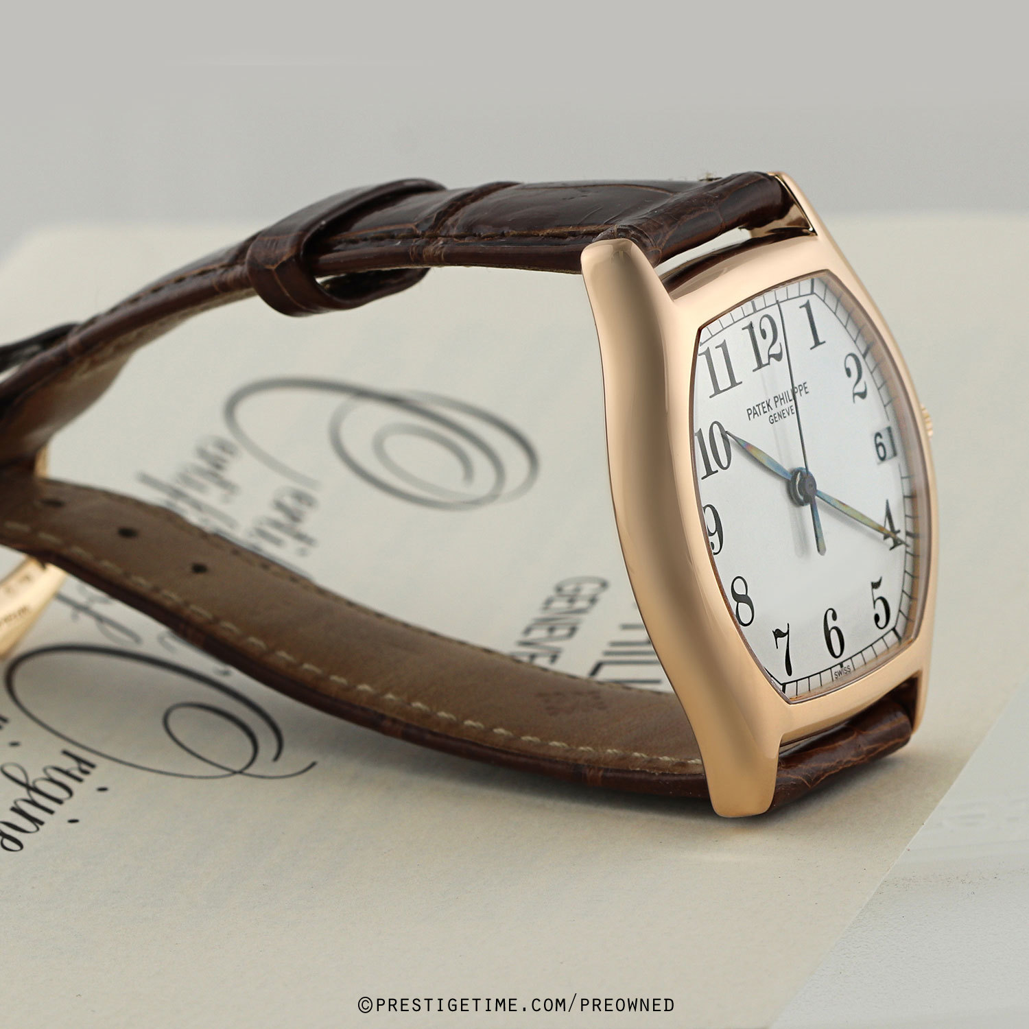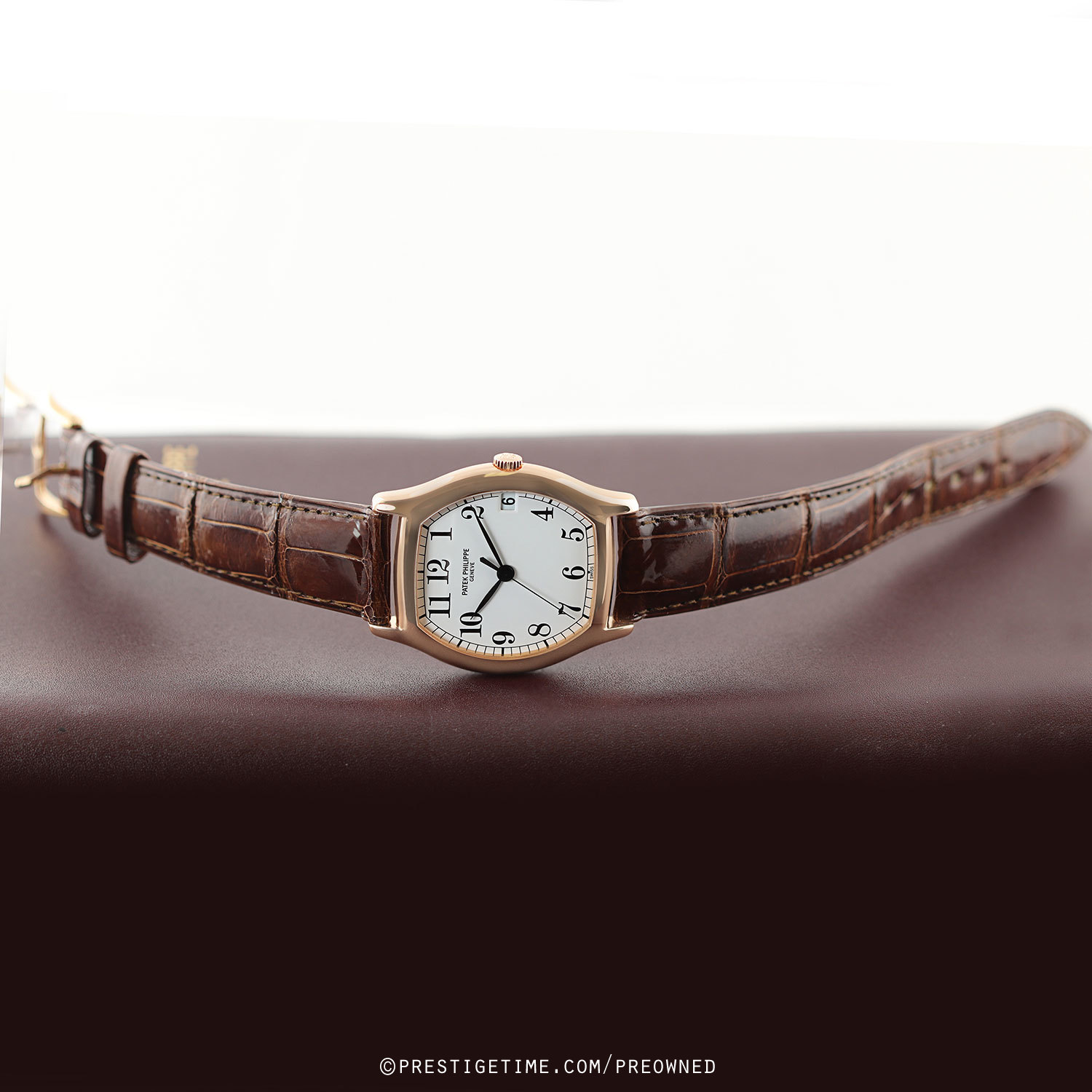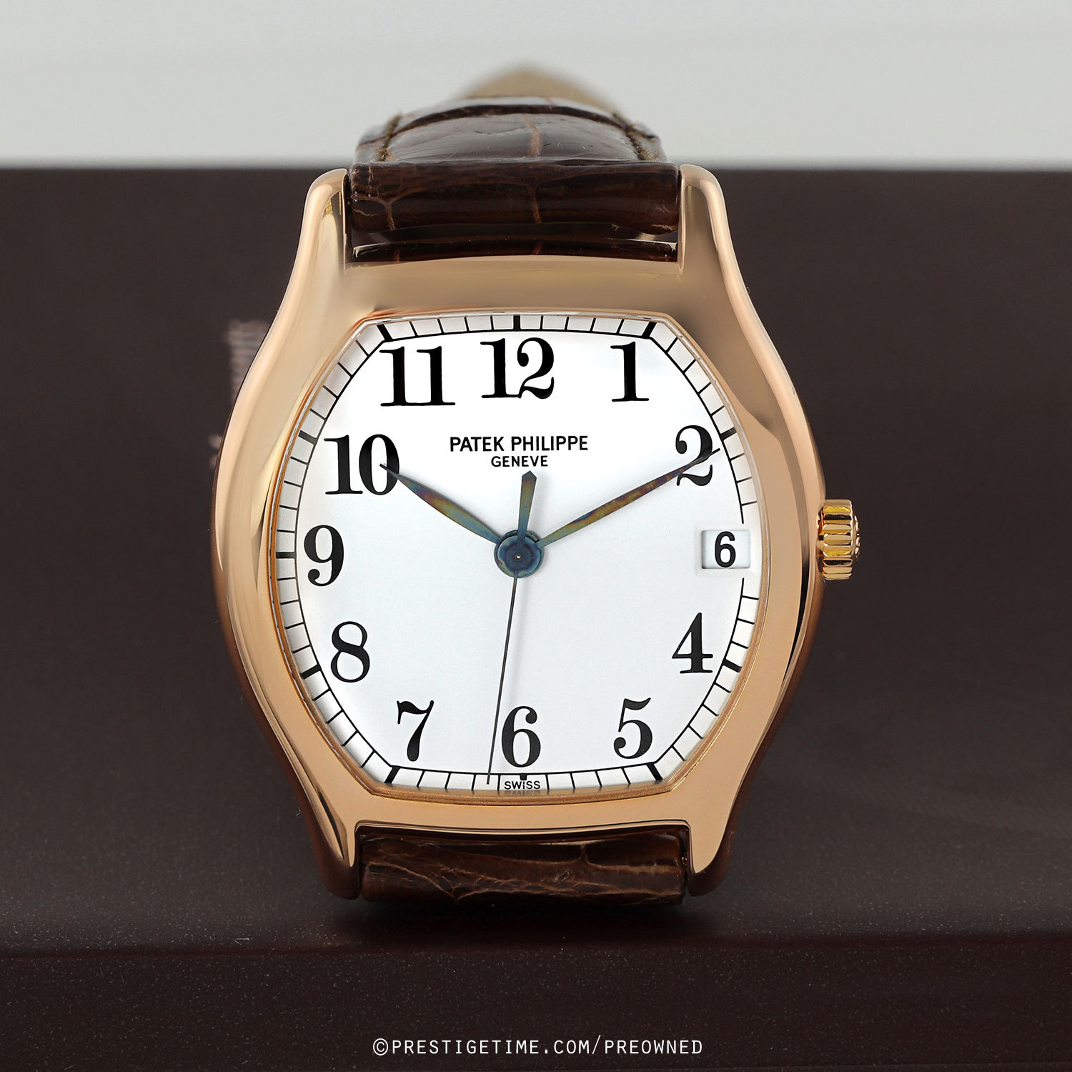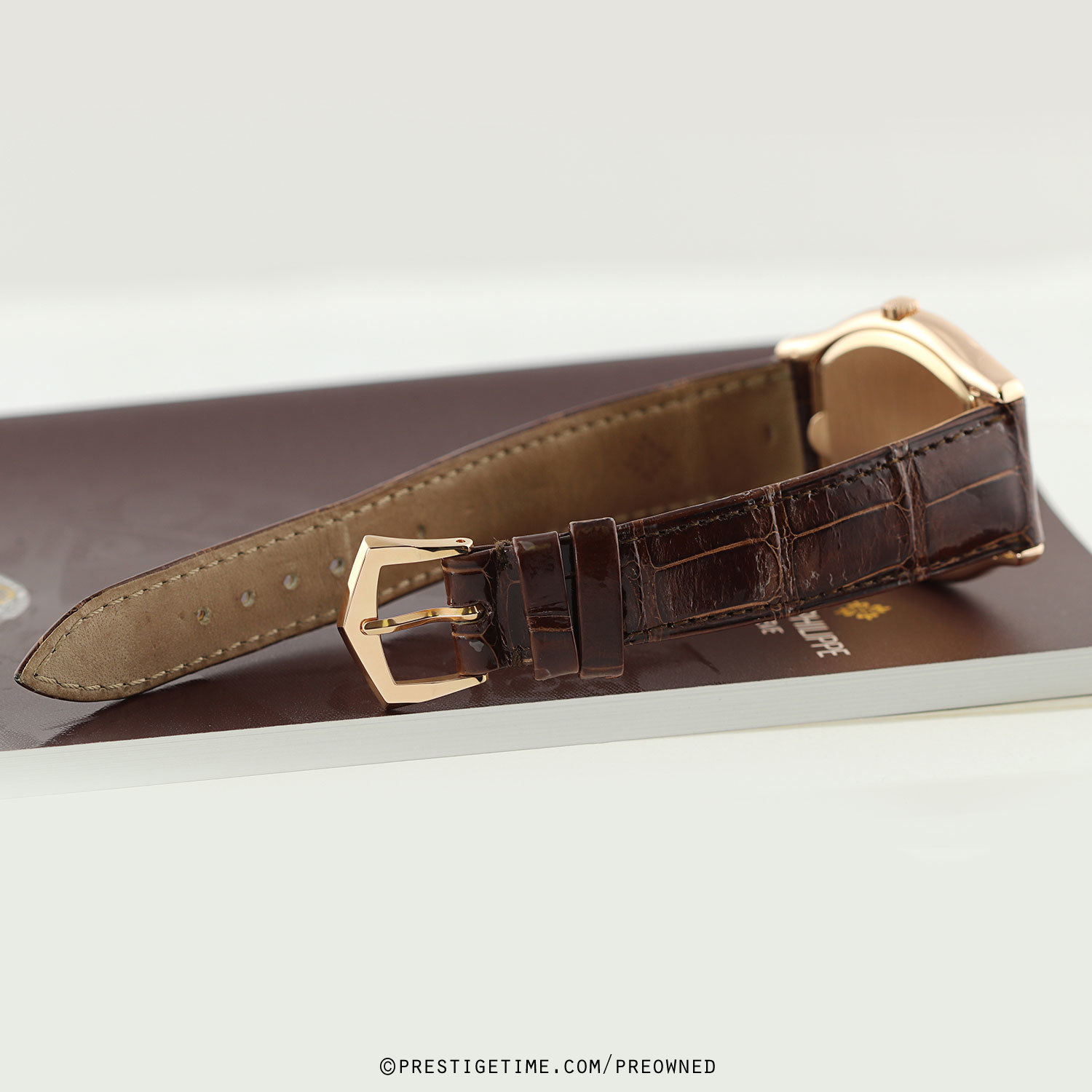 Strap: Fitted on its original brown alligator leather strap with a solid 18kt rose gold tang buckle. The strap & buckle are OEM Patek Philippe. The strap is worn, but with plenty of life remaining. A new OEM strap can be purchased for an additional $450.