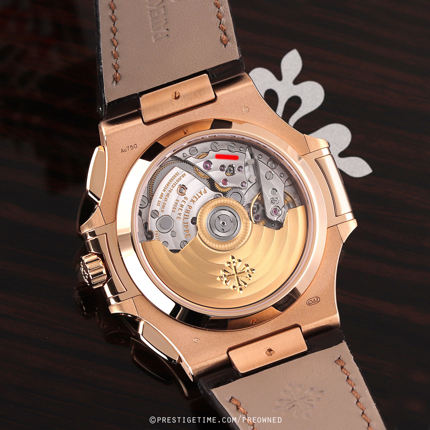 Movement: Powered by a Patek Philippe in-house caliber CH 28-520 C/522 with a Gyromax® balance and a Spiromax® balance spring. The movement is composed of 327 parts, beats at 28,800 vph (4Hz), contains 35 jewels, has a power reserve of 45-55 hours. Also features a solid 21kt yellow gold rotor which is unidirectional winding. This caliber bears the Patek Philippe Seal hallmark.