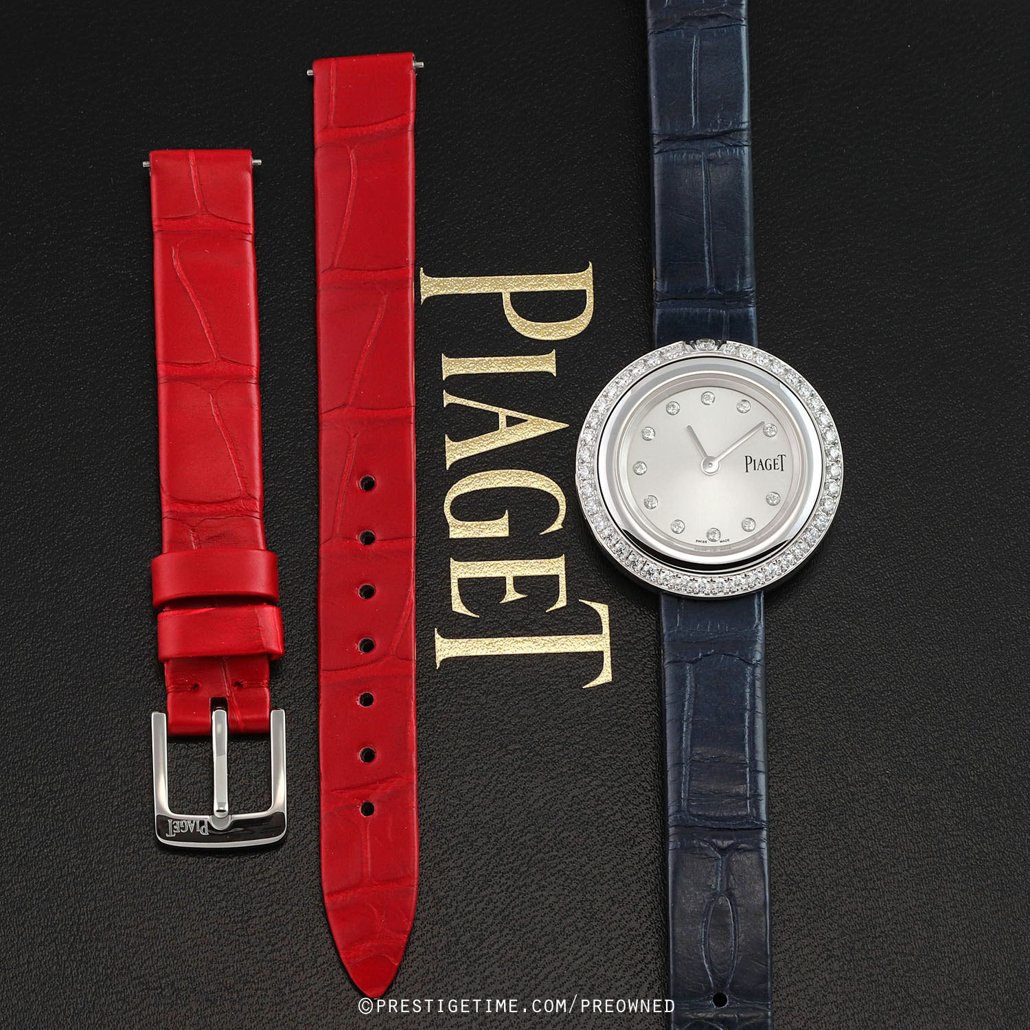 Straps: Delivered with 2 OEM Piaget straps, each with levered spring-bars allowing to interchange between straps easily without the need of tools.
