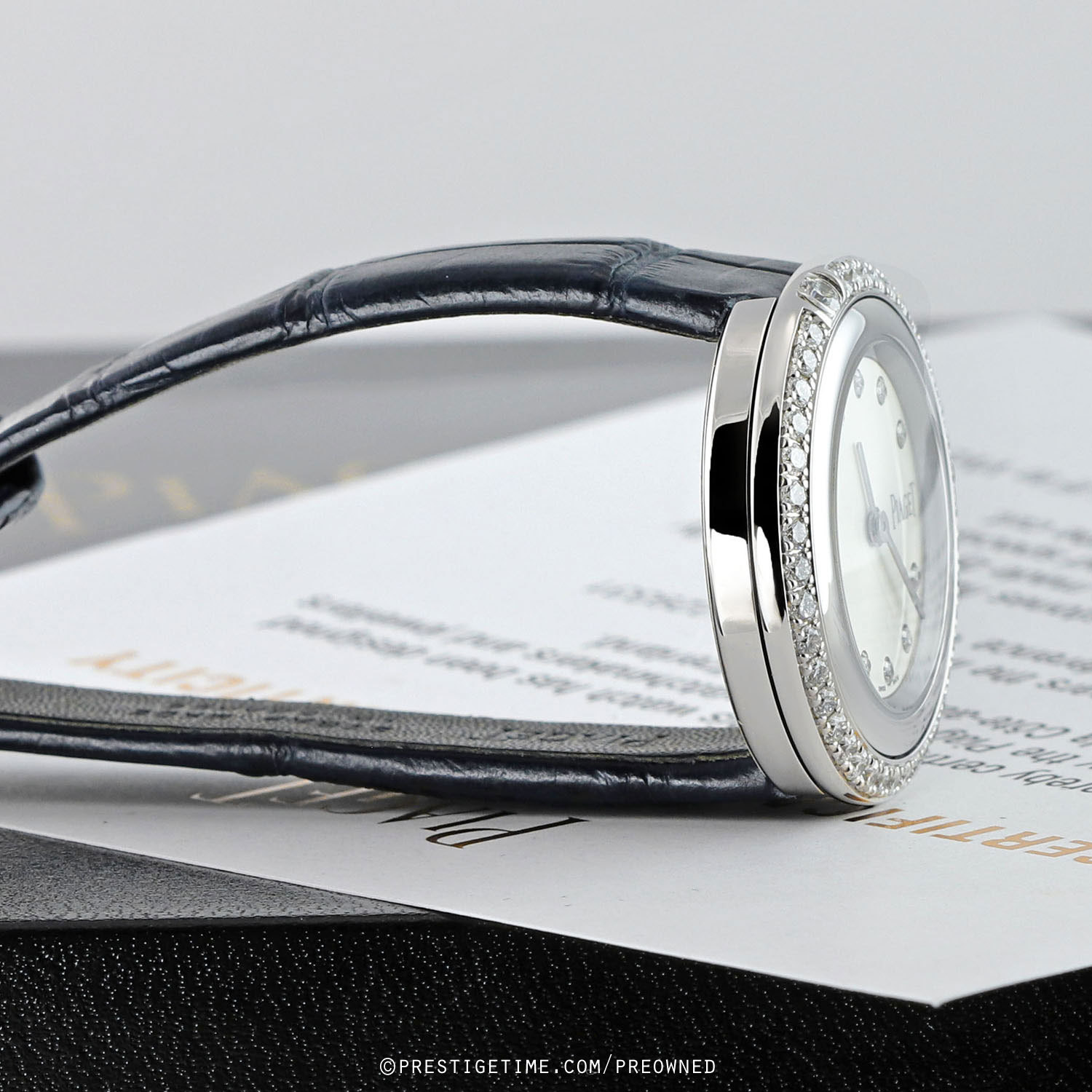 Movement: Powered by a Piaget in house quartz (battery) caliber 56p. Time correction via a recessed button case back.