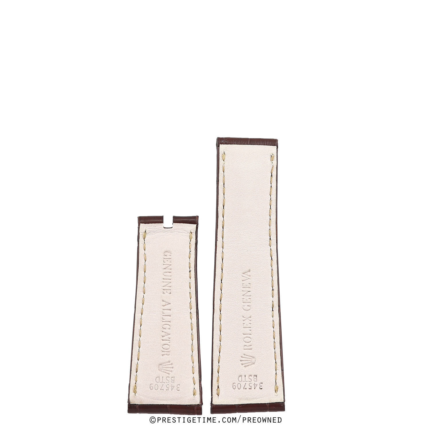 Genuine Rolex 345709 BSTD padded dark brown alligator strap for deployant buckle.