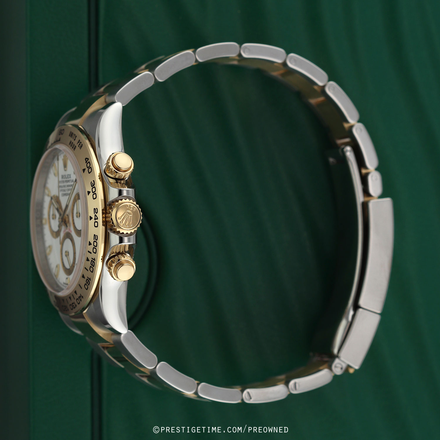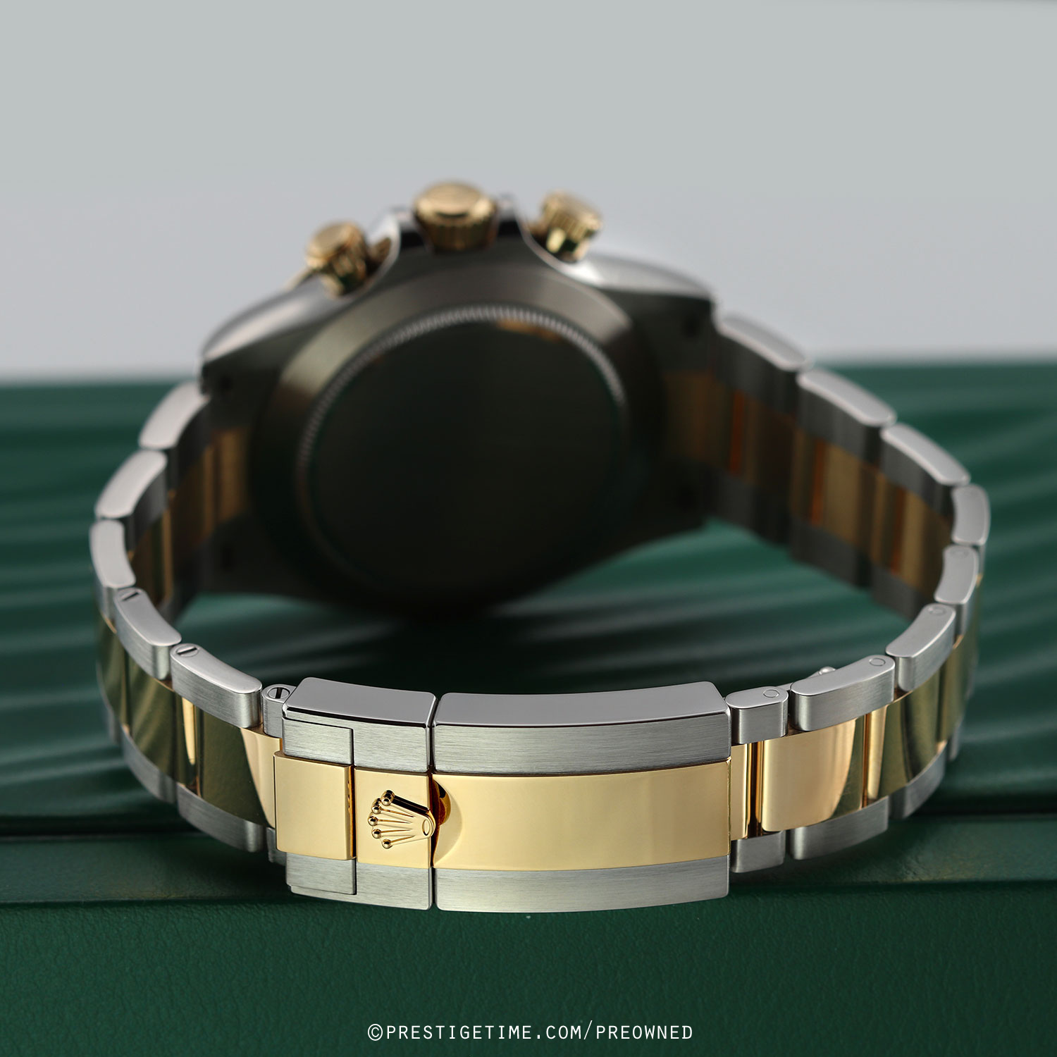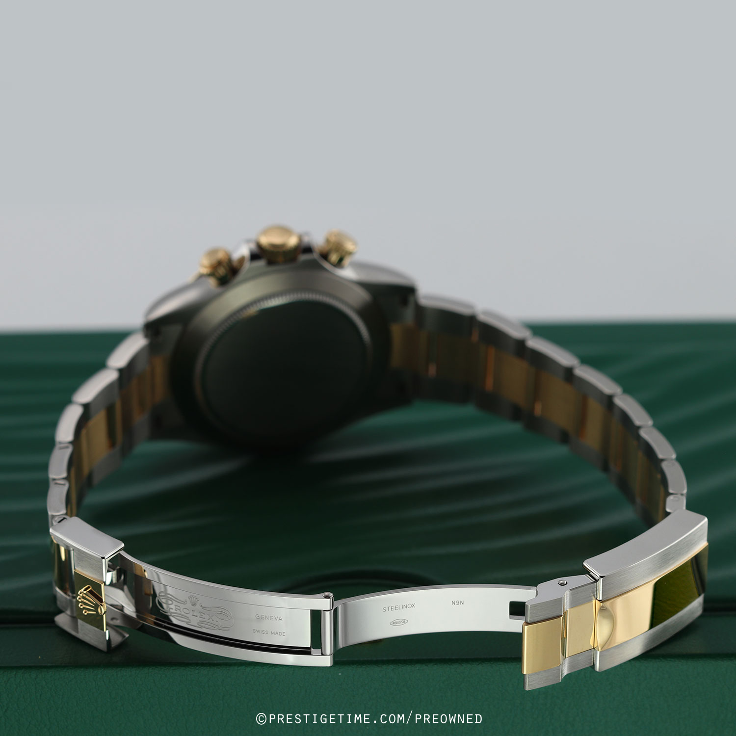 Bracelet: Fitted on a stainless steel & 18kt yellow gold, brushed & polished Oyster style bracelet with an Oysterlock double-locking deployant clasp. The clasp is fitted with Rolex's patented Easylink 5mm extension link. The bracelet is fully linked & will fit up to a 7-7/8" worst.