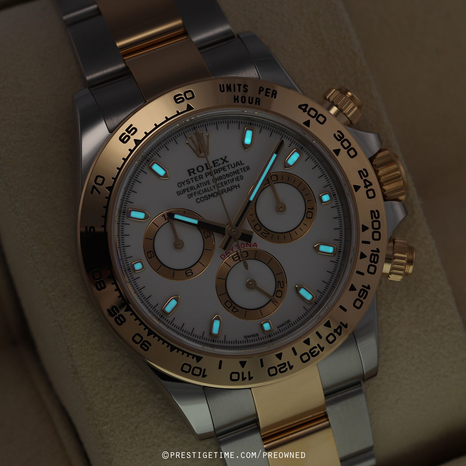 Movement: Powered by a Rolex in-house Superlative Chronometer certified calibre 4130, beats at 28,800 vph, composed out of 290 parts, contains 44 jewels & has a power reserve of 72 hours when running the time only, or 66 hours with the chronograph function running. The movement features a Paramagnetic blue Parachrom hairspring & bi-directional winding rotor.