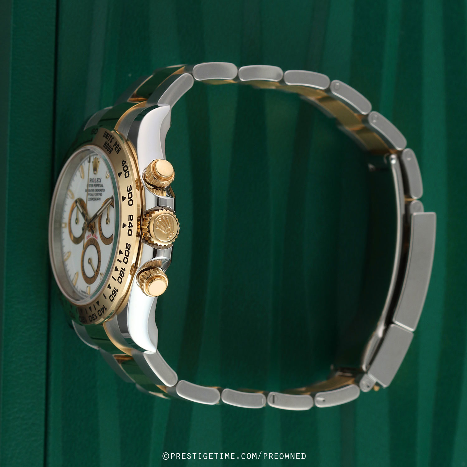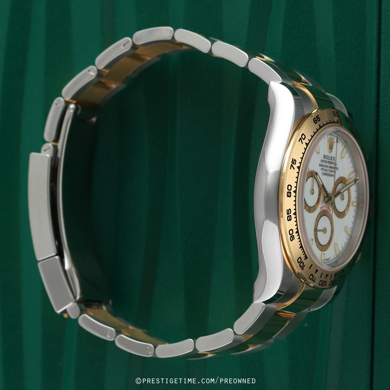 Bracelet: Fitted on a brushed & polished stainless steel & 18kt yellow gold Oyster style bracelet with an Oysterlock double-locking deployant clasp. The clasp is fitted with Rolex's patented Easylink 5mm extension link. The bracelet is fully linked & will fit up to a 7-7/8" wrist.