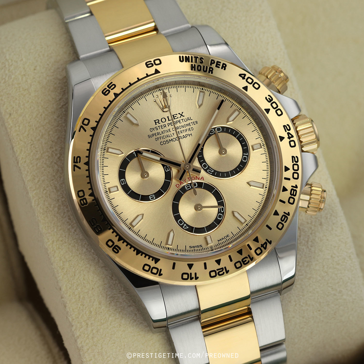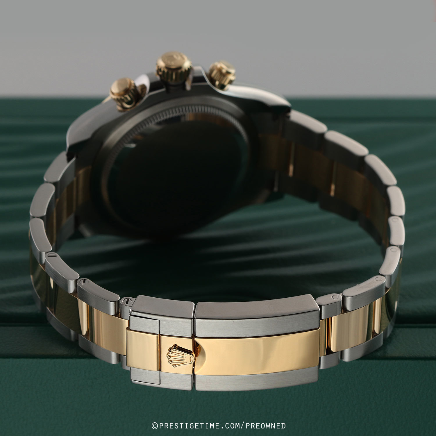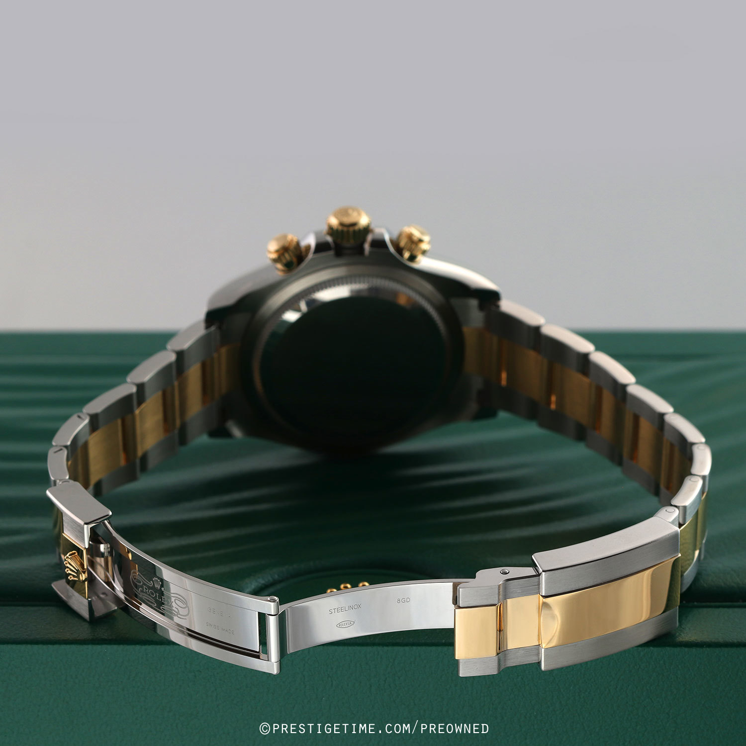Bracelet: Fitted on a brushed & polished stainless steel & 18kt yellow gold Oyster style bracelet with an Oysterlock double-locking deployant clasp. The clasp is fitted with Rolex's patented Easylink 5mm extension link. The bracelet is fully linked & will fit up to a 7-7/8" wrist.