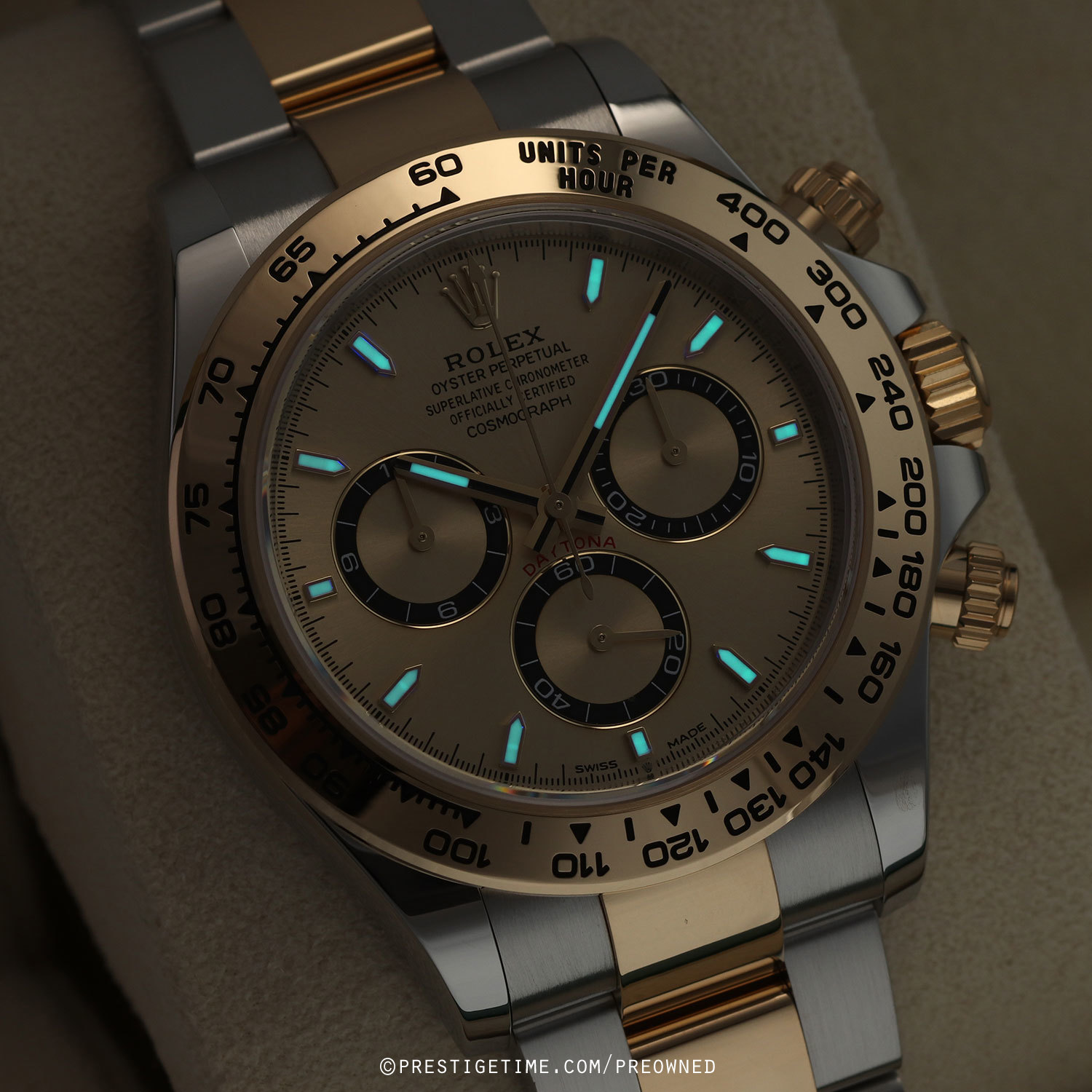 Movement: Powered by a Rolex in-house calibre 4131, beats at 28,800 vph (4Hz), contains 47 jewels & has a power reserve of +/- 72 hours (3 days). Superlative Chronometer (COSC + Rolex certification after casing). The movement features a Paramagnetic blue Parachrom hairspring, high performance Paraflex shock absorbers and a bi-directional self-winding rotor.