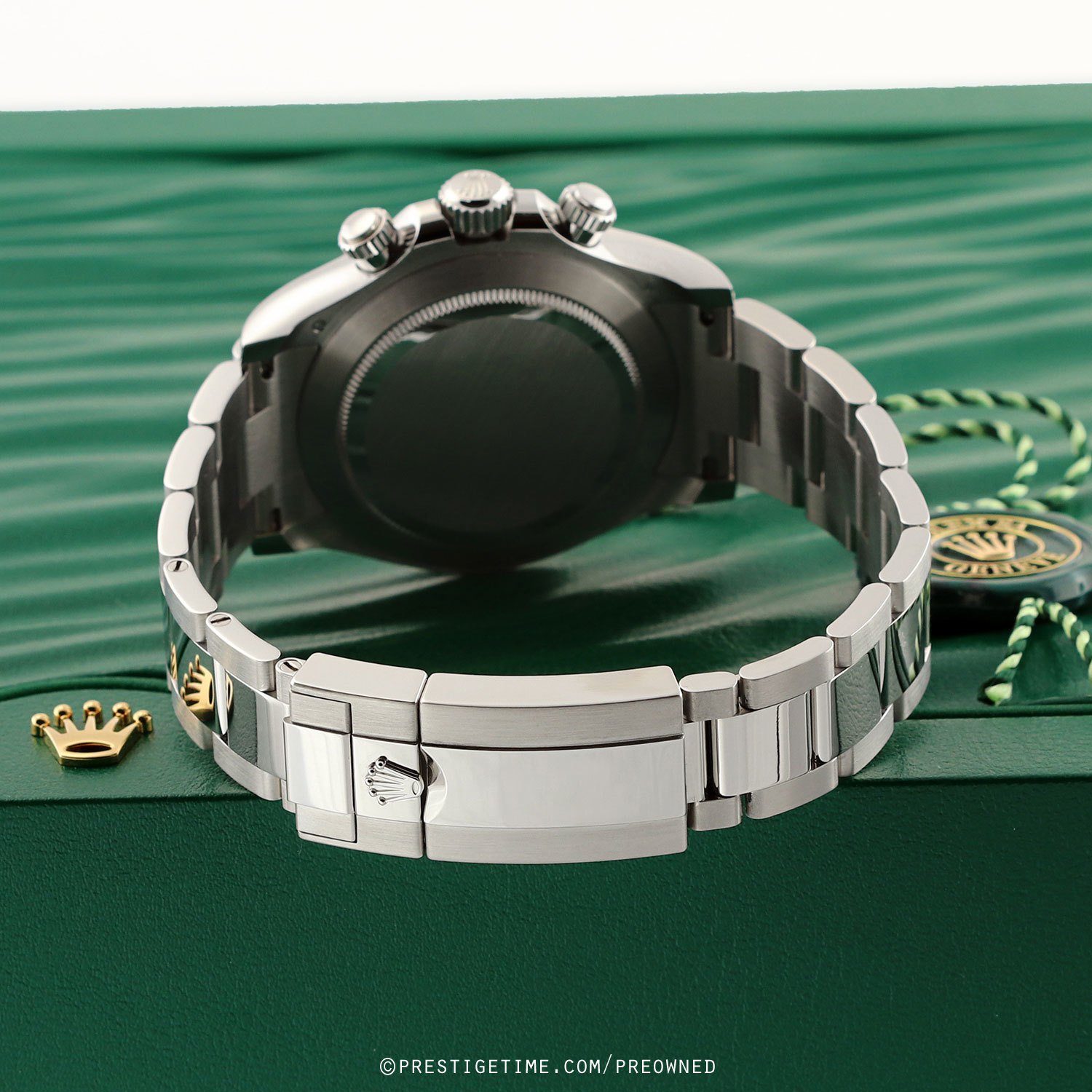 Movement: Powered by a Rolex in-house Superlative Chronometer certified calibre 4130, beats at 28,800 vph, composed out of 290 parts, contains 44 jewels & has a power reserve of 72 hours when running the time only, or 66 hours with the chronograph function running. The movement features a Paramagnetic blue Parachrom hairspring & bi-directional winding rotor.