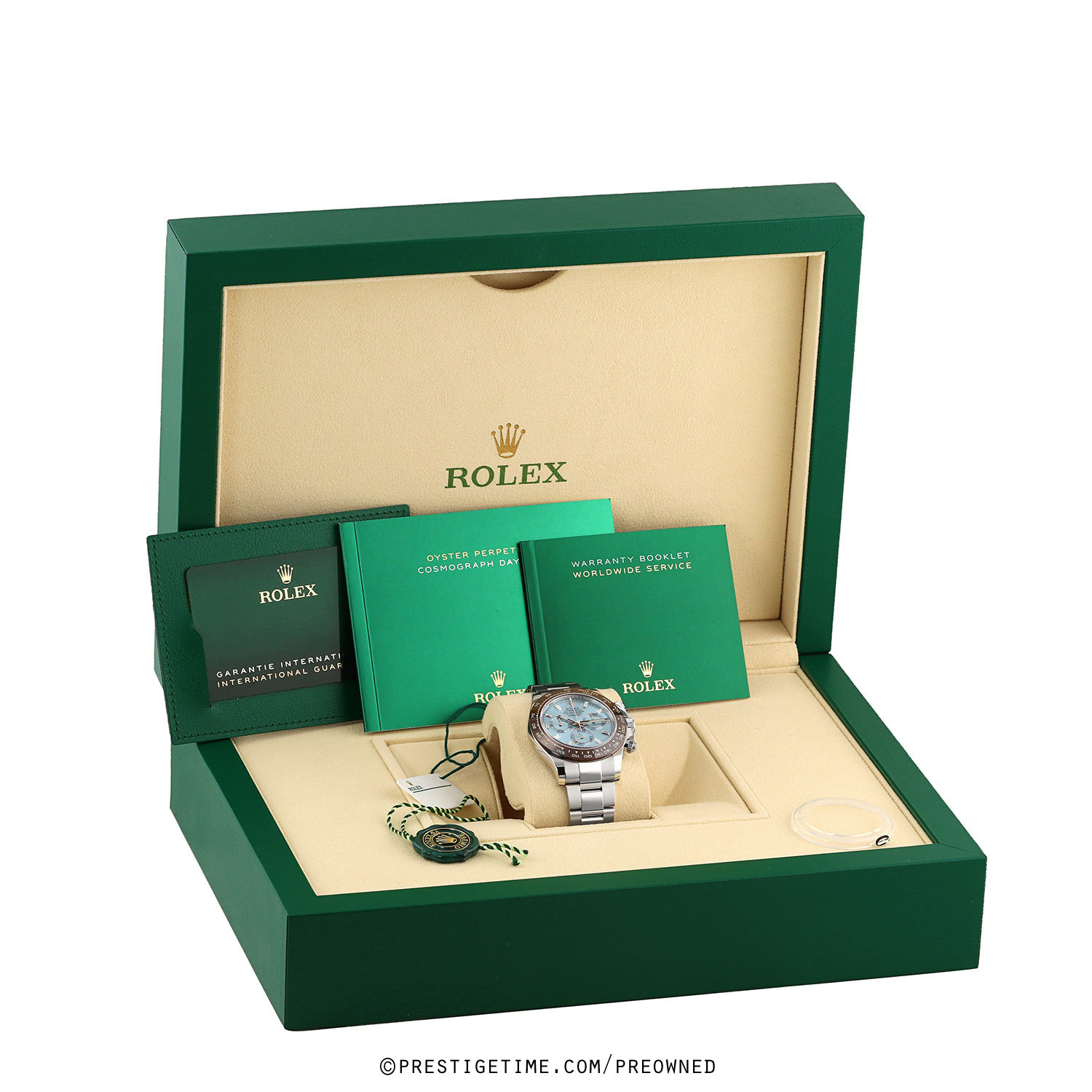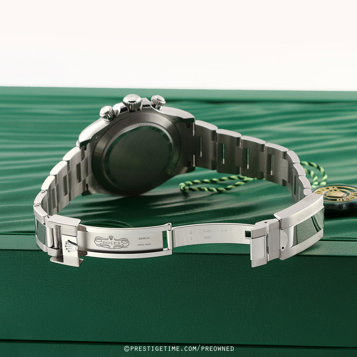 Strap: Fitted on a solid 950 platinum brushed & polished Oyster style bracelet with an Oysterlock double-locking deployant clasp. The clasp is fitted with Rolex's patented Easylink 5mm extension link. The bracelet is fully linked & will fit up to a 7-7/8" worst.