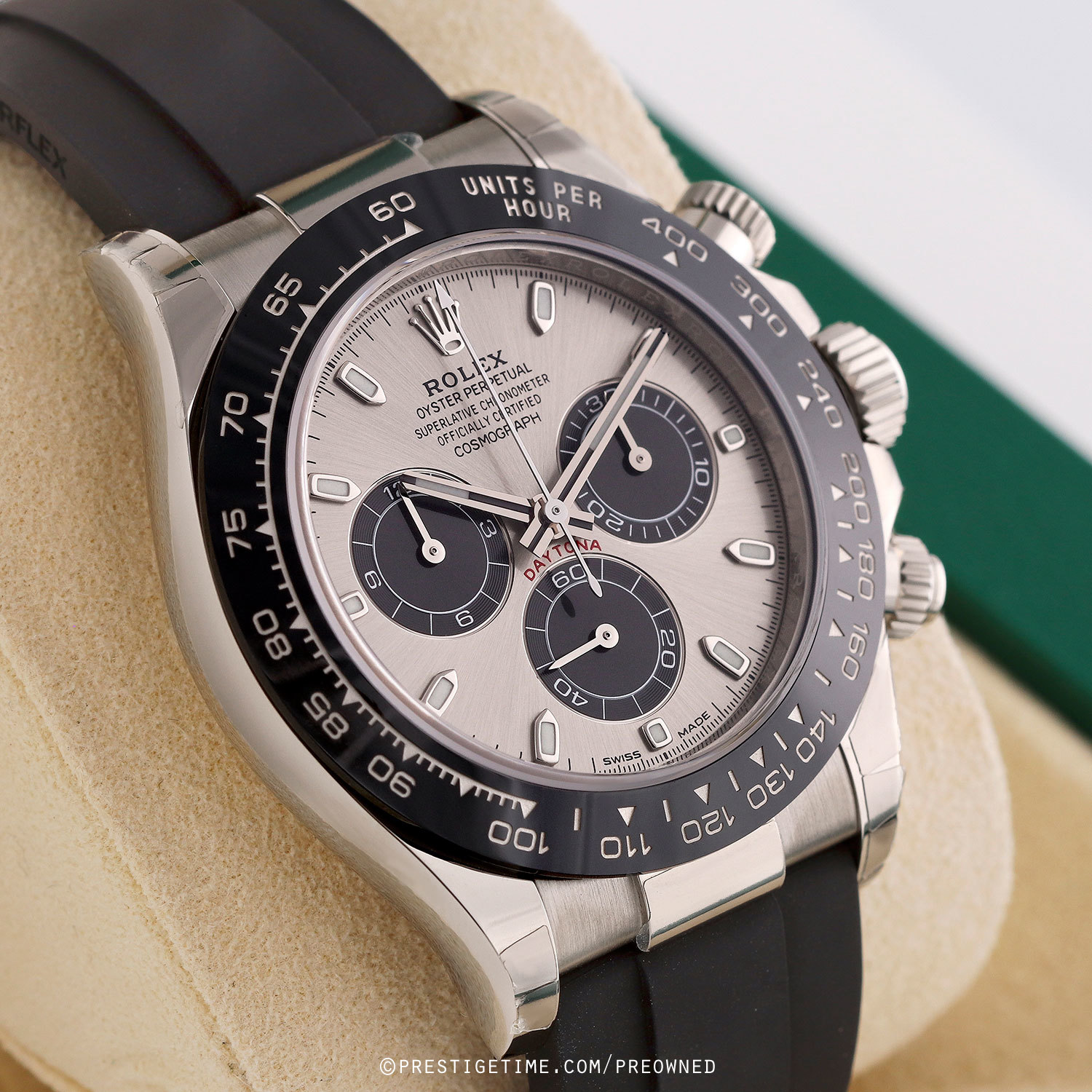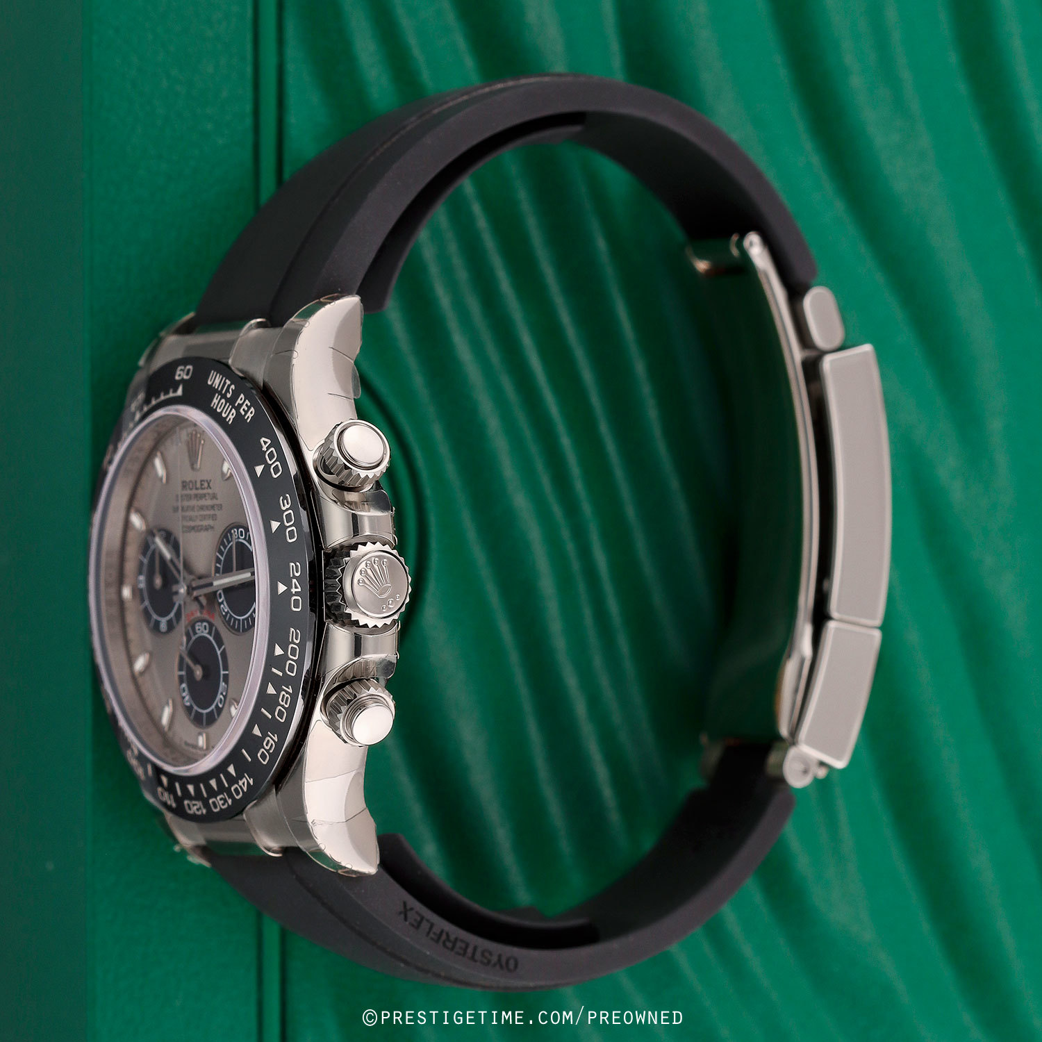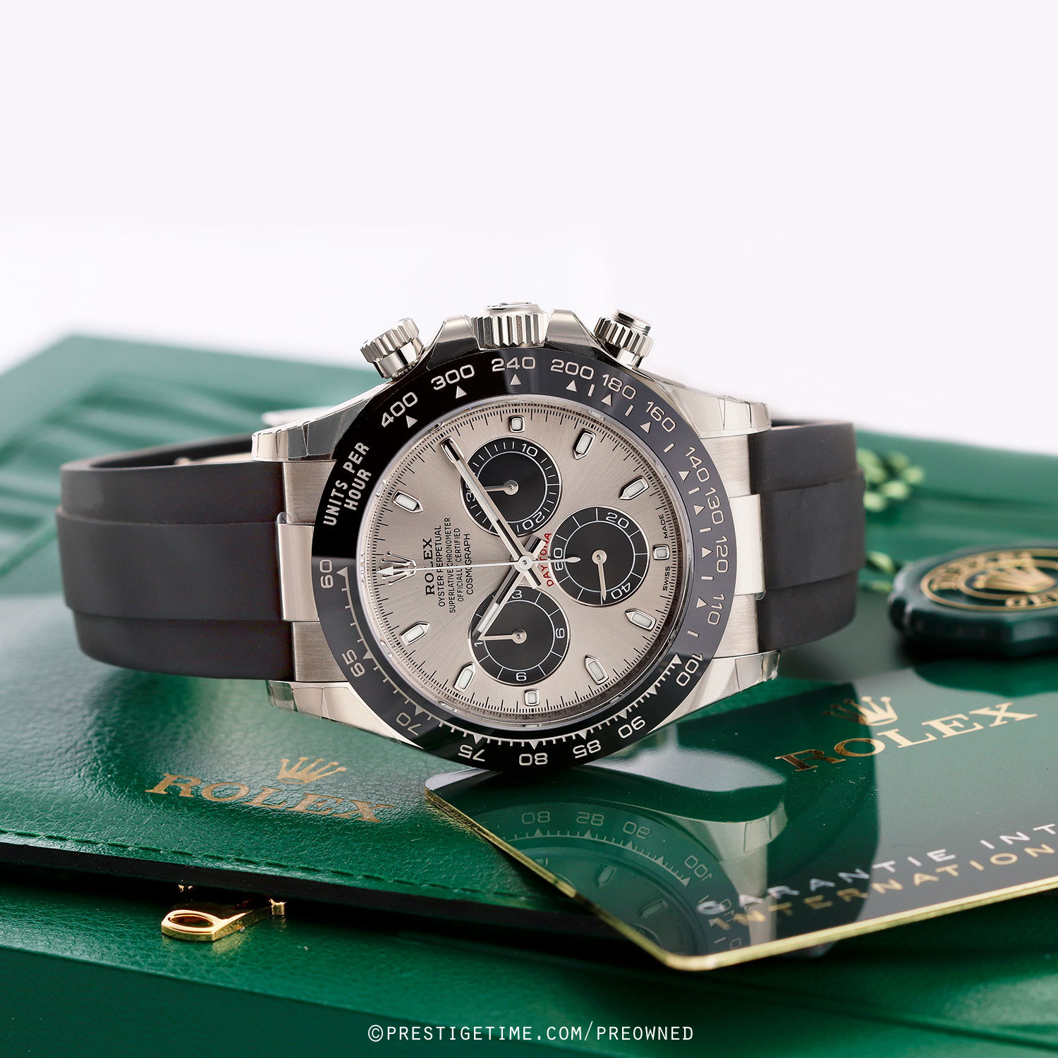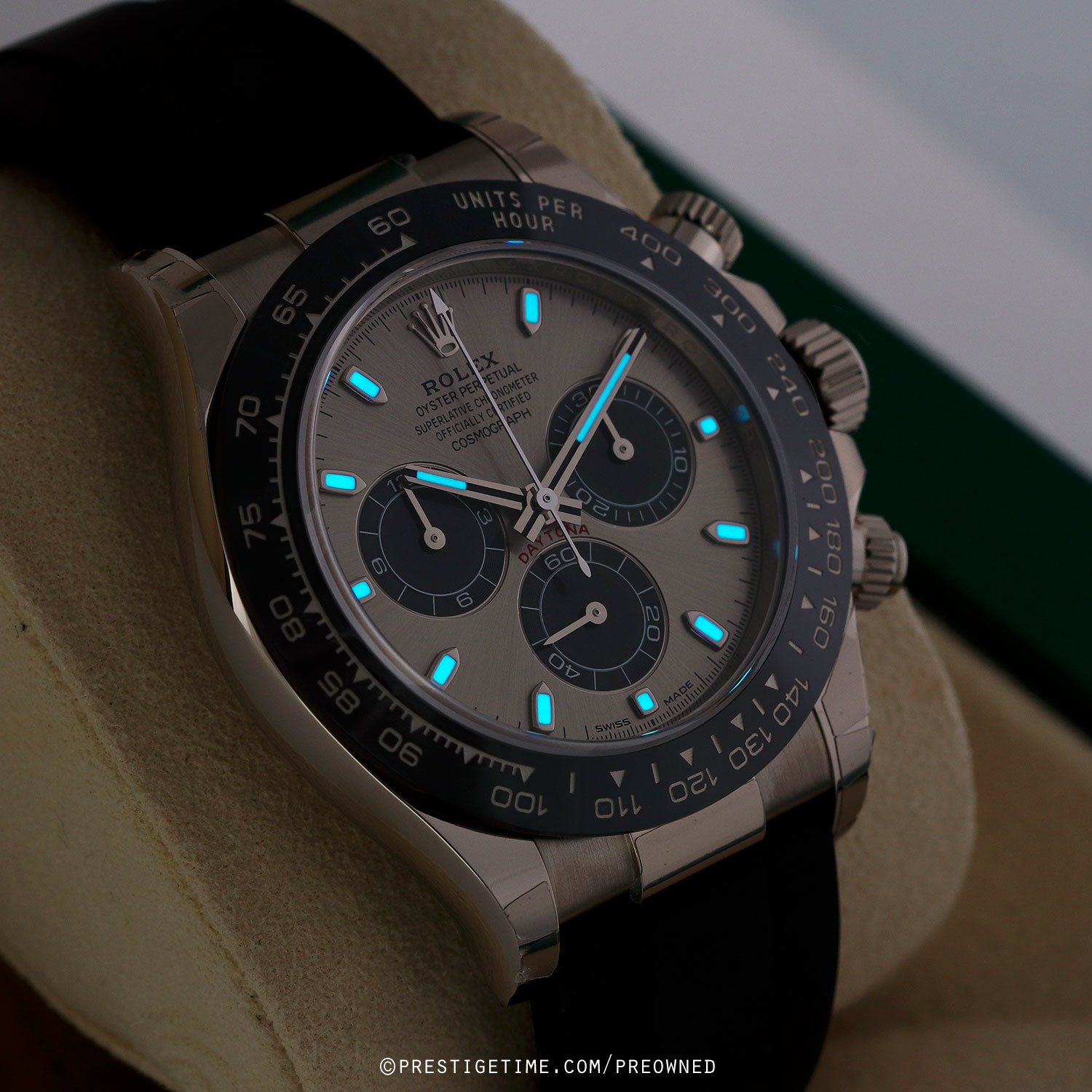 Movement: Powered by a Rolex in-house Superlative Chronometer certified calibre 4130, with a Paramagnetic blue Parachrom hairspring, beats at 28,800 vph, contains 44 jewels & has a power reserve of 72 hours when running the time only, or 66 hours with the chronograph function running.