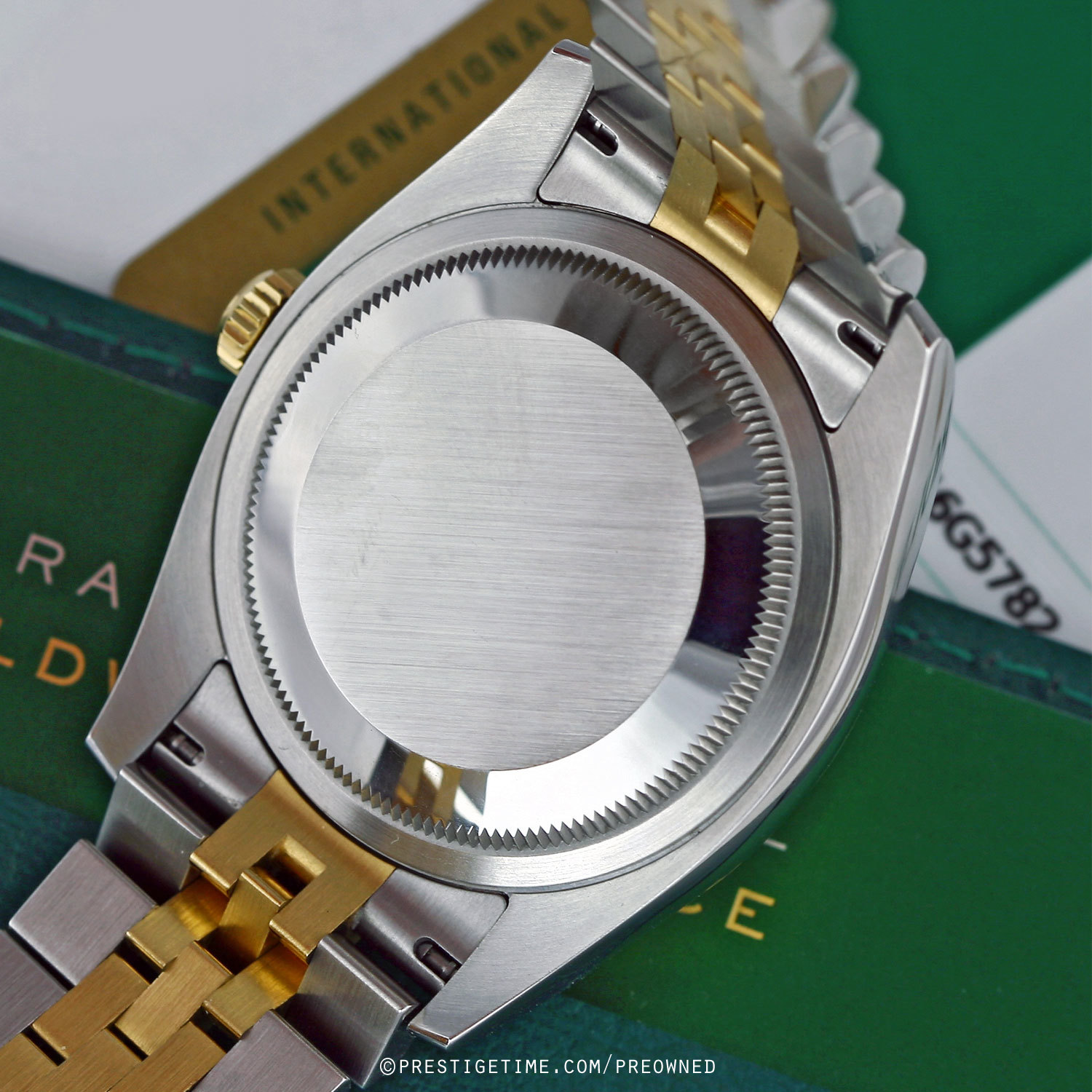Strap: Fitted on its original stainless steel & 18kt yellow gold Jubilee bracelet, fitted with a Rolex concealed folding Crownclasp. The bracelet has all links.