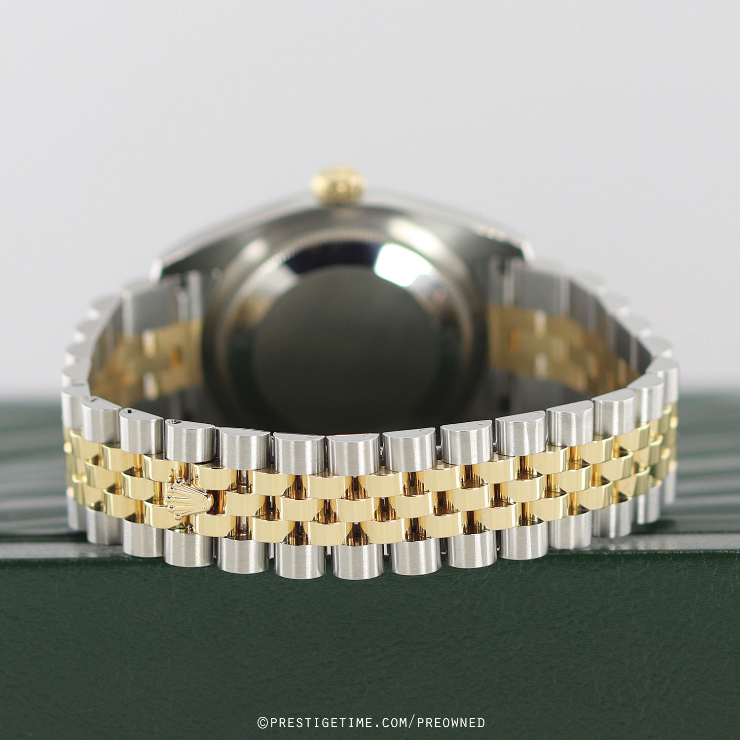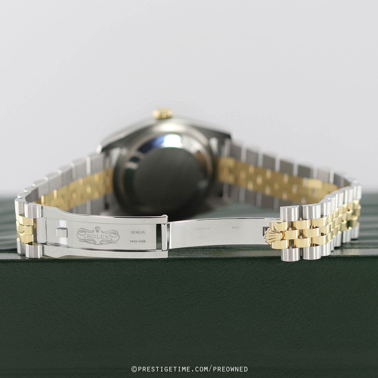 Strap: Fitted on its original stainless steel & 18kt yellow gold Jubilee style style bracelet fitted with an Rolex concealed folding Crownclasp. The bracelet has all of its original links & will fit up to a 7-7/8" (20cm) wrist.