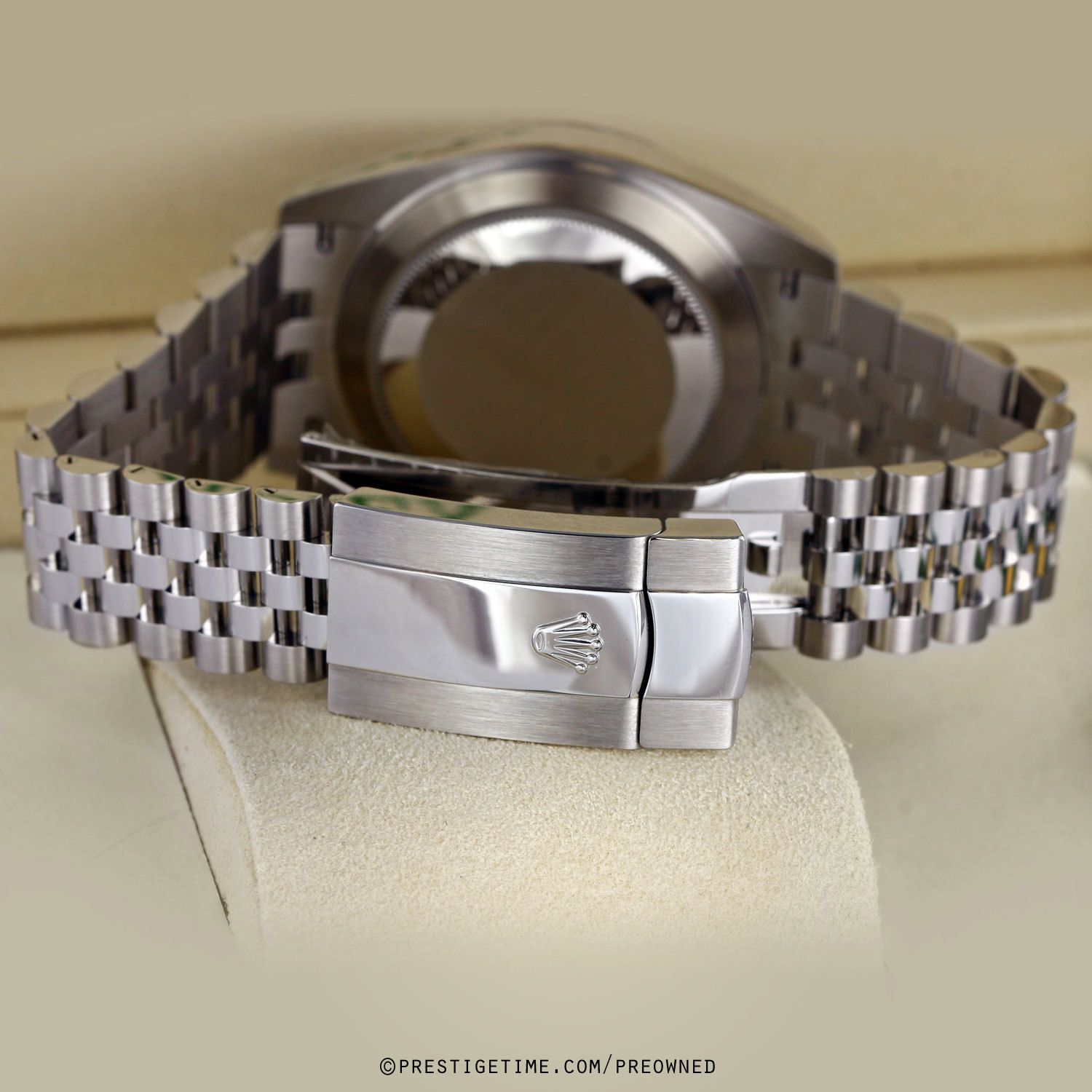 Strap: Fitted on its original brushed & polished Jubilee stainless steel bracelet, fitted with a Rolex Folding Oysterclasp featuring the Easylink 5mm comfort extension link. The bracelet has all links.