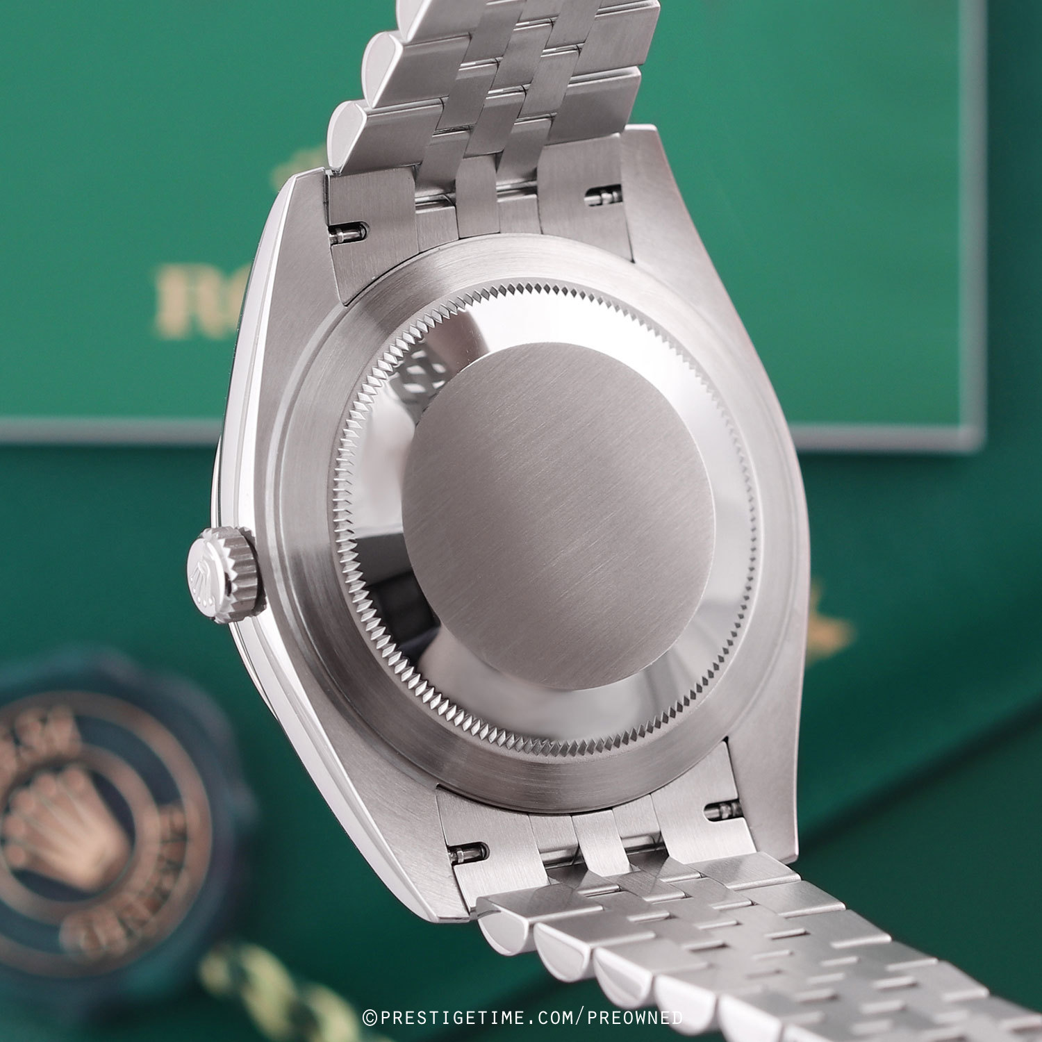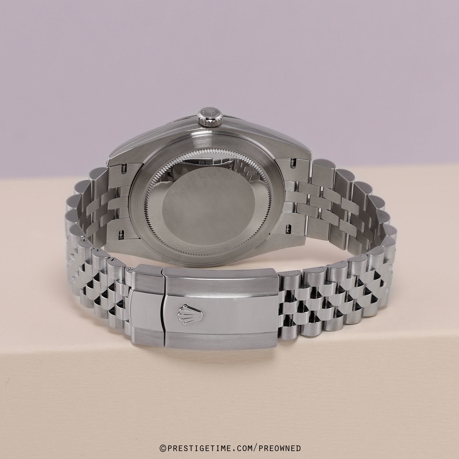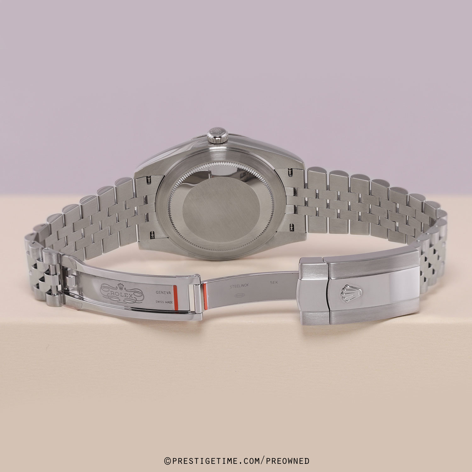 Strap: Fitted on its original brushed & polished Jubilee stainless steel bracelet, fitted with a Rolex Folding Oysterclasp featuring the Easylink 5mm comfort extension link. The bracelet has all links.