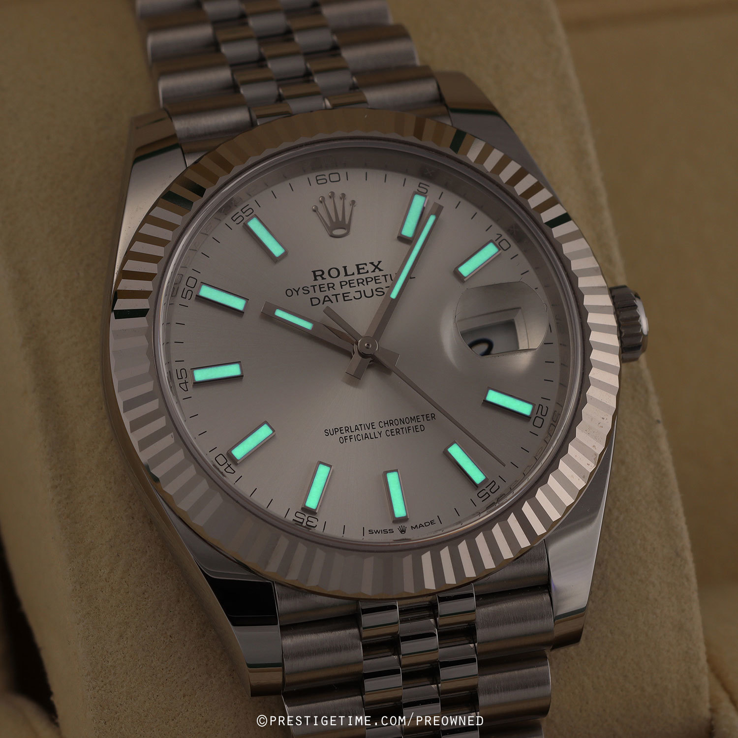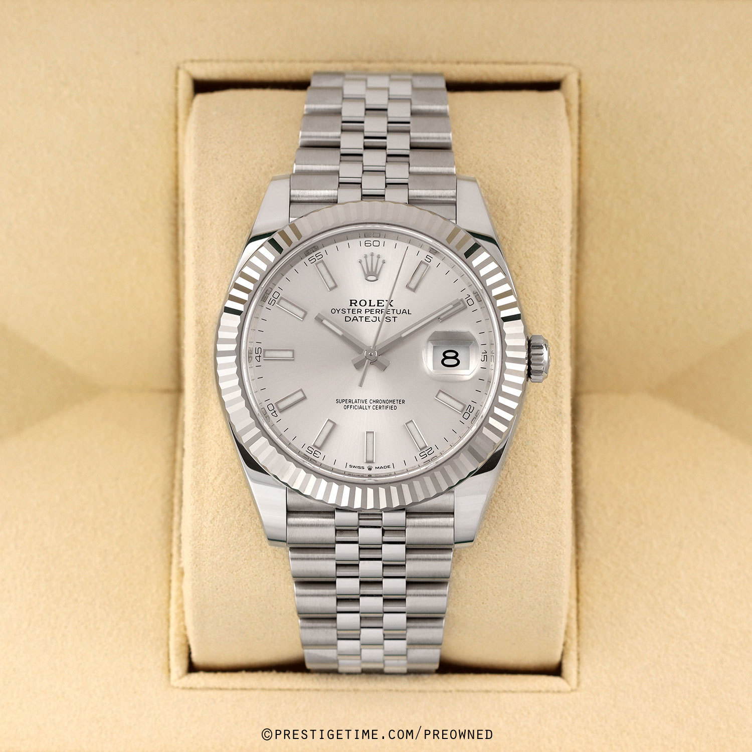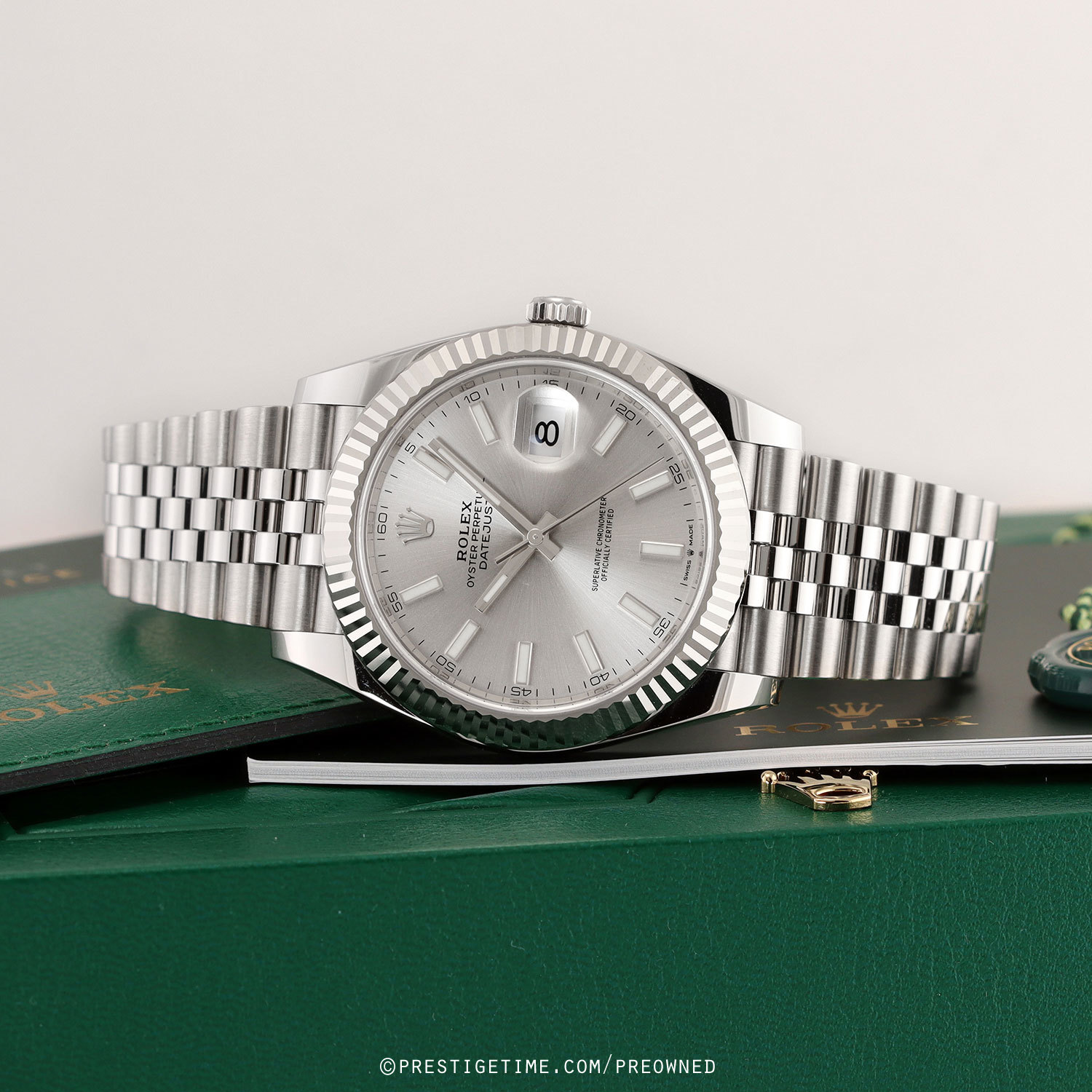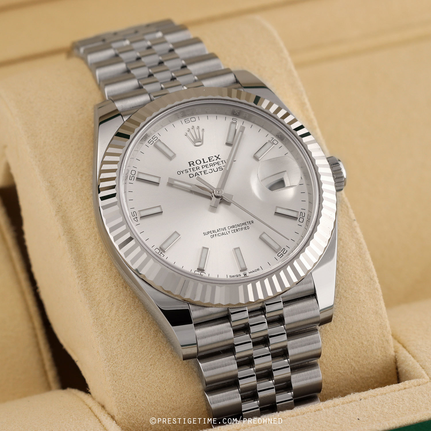Pre-owned Rolex Datejust 41mm Stainless Steel 126334 Silver Index Jubilee