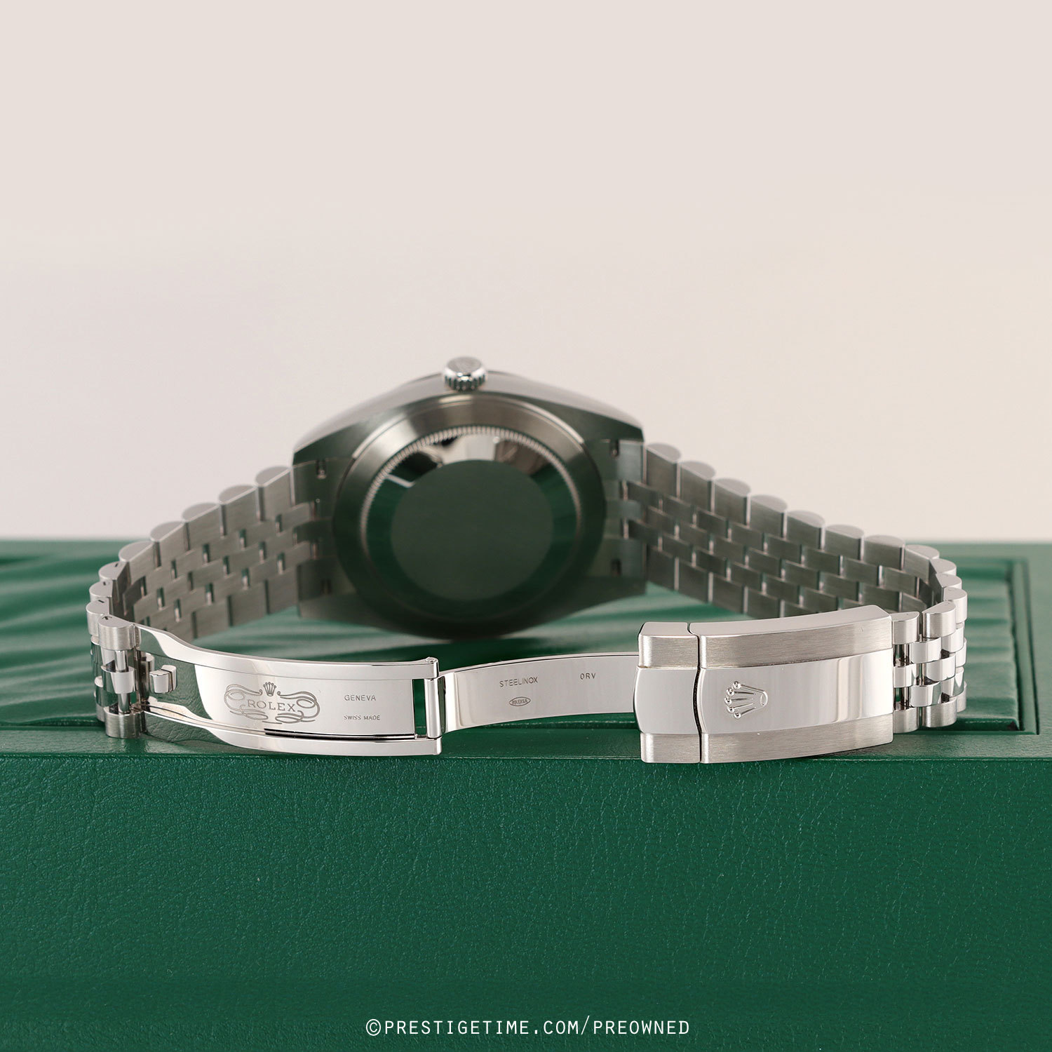 Strap: Fitted on a brushed & polished stainless steel jubilee style bracelet with an Oysterlock folding clasp. The clasp features Rolex's patented Easylink 5mm comfort extension link. The bracelet is fully linked & will fit up to a 7-7/8" wrist.
