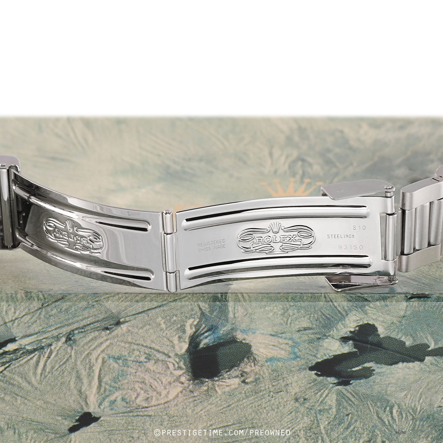 Bracelet: Fitted on its original Rolex 93150 bracelet with 501B end links. The bracelet is stainless steel with a brushed finished top & polished edges. Features an Oysterlock clasp with divers extension link & spring loaded micro-adjustments. The stamping on the bracelet, end links and clasp are clear, sharp & pronounced. The bracelet is fully linked & will fit up to a 8"+ wrist.