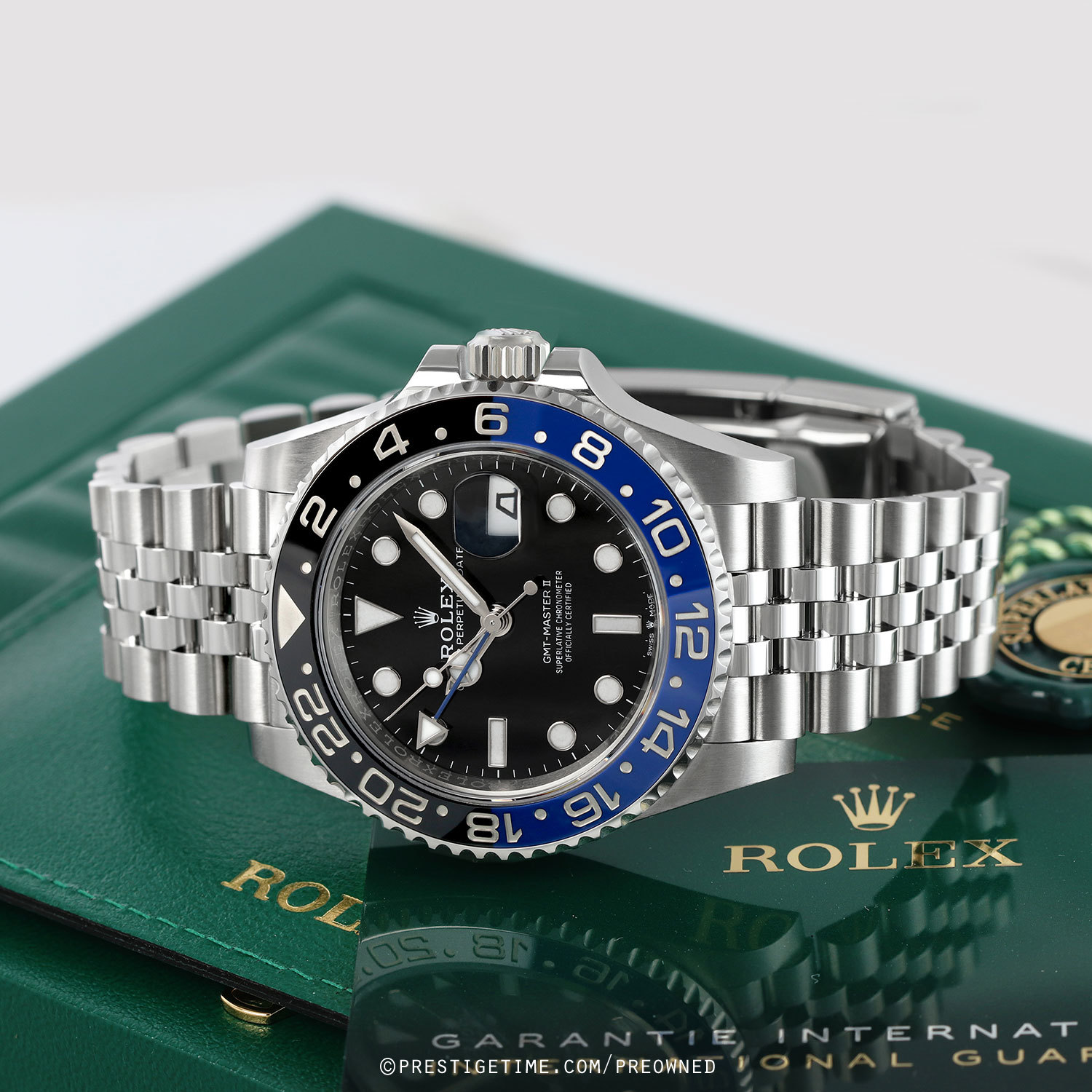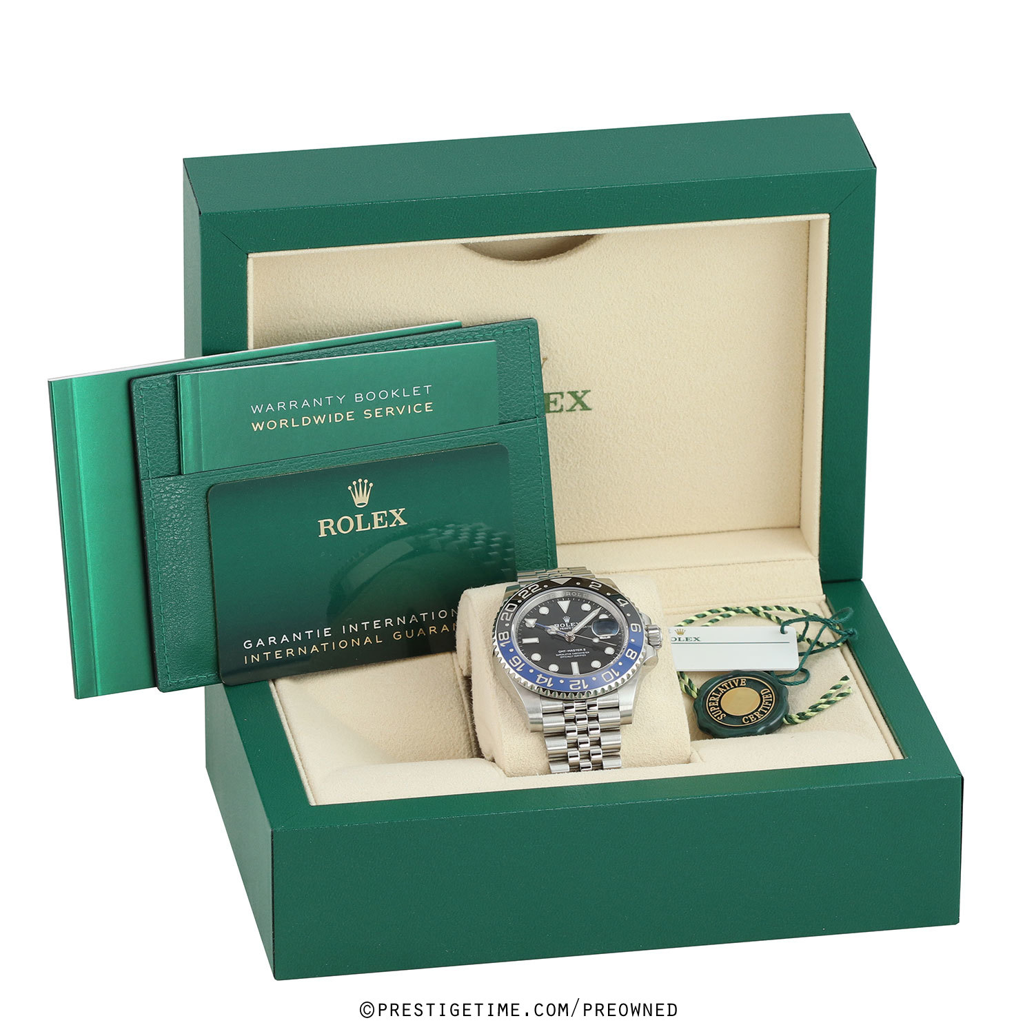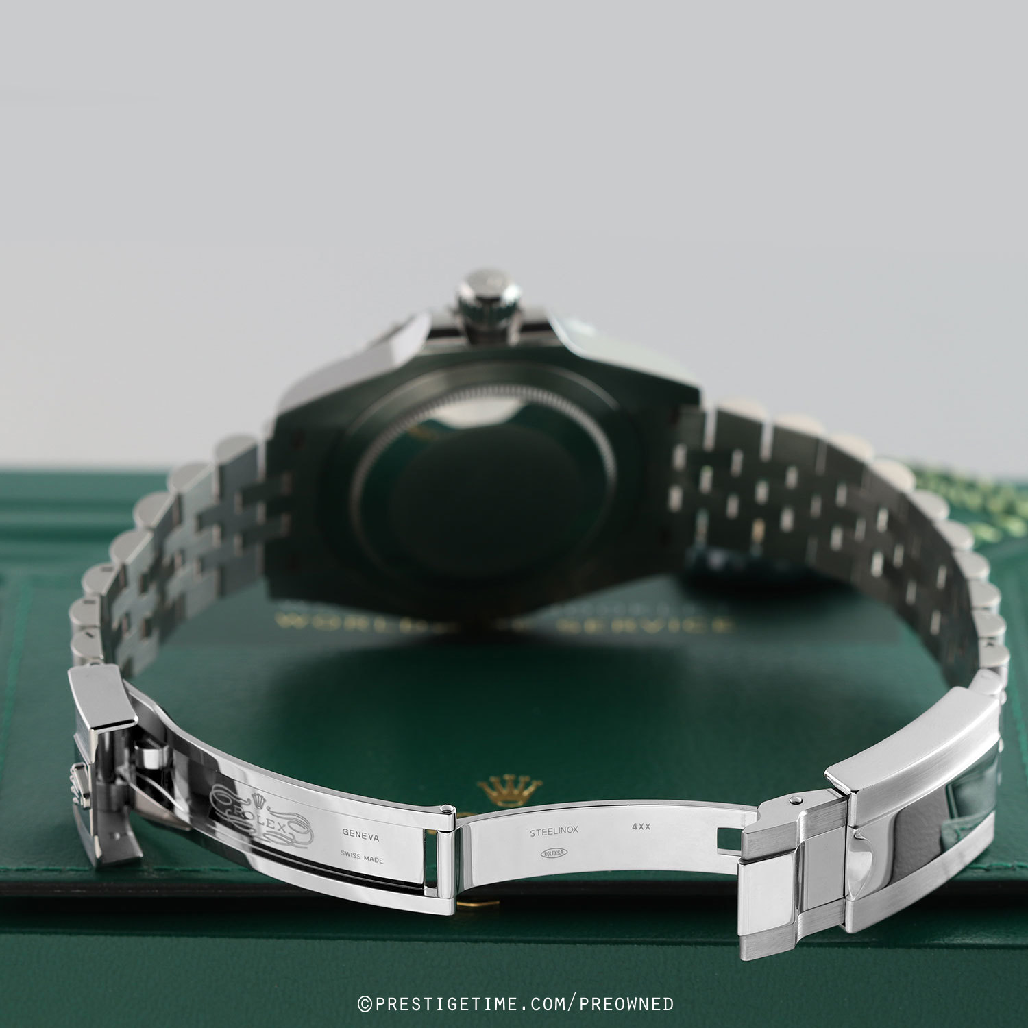 Condition: This watch is in excellent near new condition. We have had the watch lightly spot polished to remove most signs of wear. We would be comfortable rating this watch in an 97%+ overall condition. Delivered in its original box with all papers and with both the green & white hang tags.