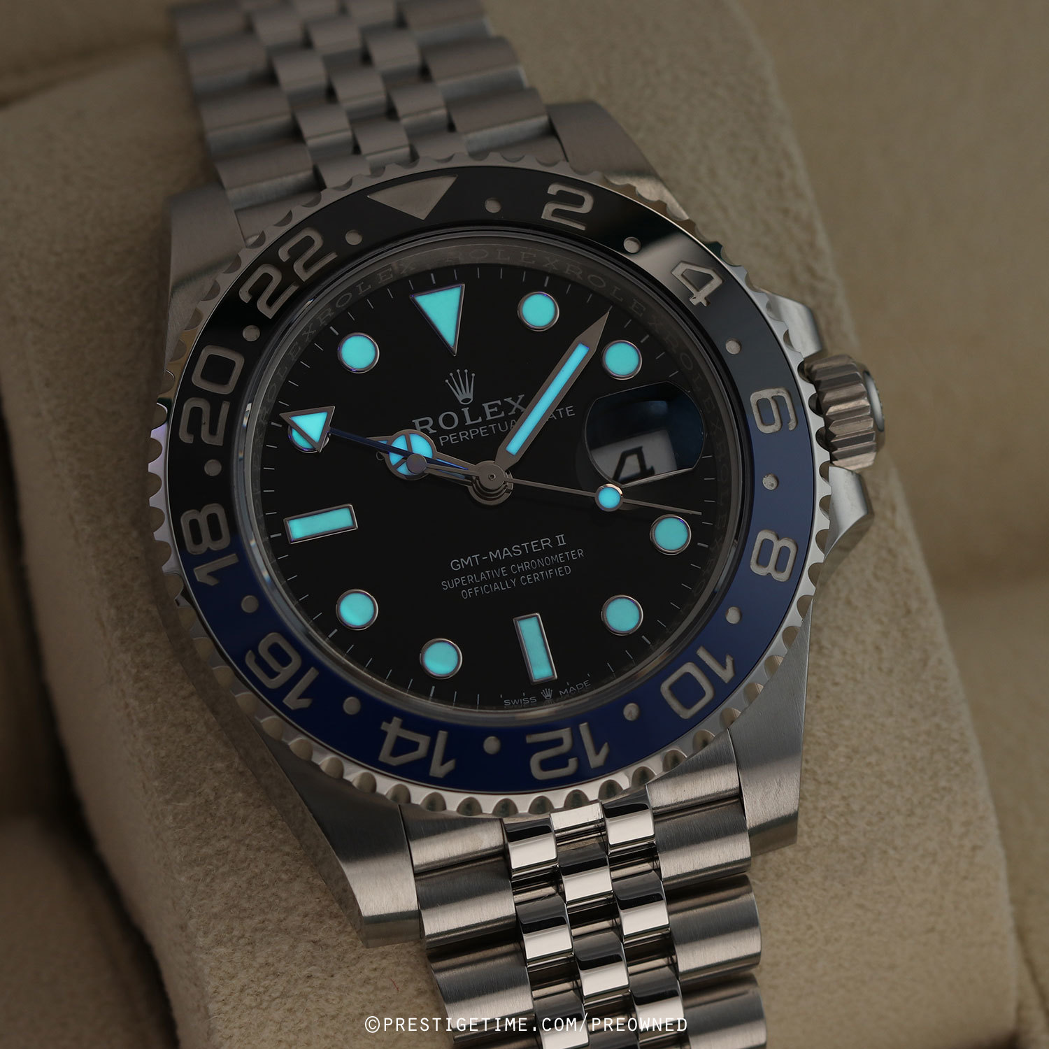 Movement: Powered by a Rolex caliber 3285, with a Paramagnetic blue Parachrom hairspring, high-performance Paraflex shock absorbers and a Chronergy escapement with optimized energy efficiency. The movement beats at 28,800 vph, contains 31 jewels & has a power reserve of +/- 70 hours.