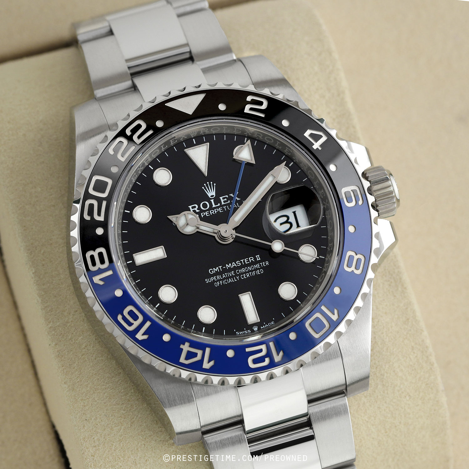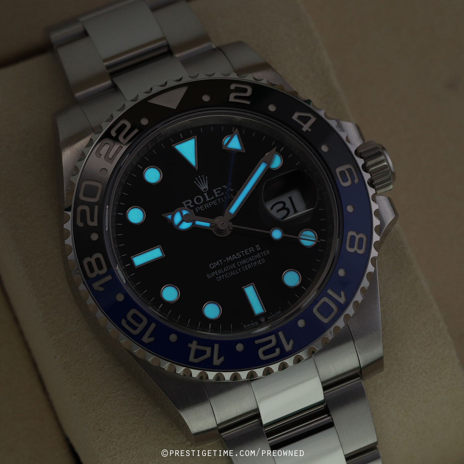 Case: Brushed & polished stainless steel case. Polished stainless steel triplock screw-down crown. Polished stainless steel bi-directional rotating bezel. Black & blue Cerachrom ceramic bezel insert with matte platinum coated 24 hour markings. Black dial. Polished hands with luminous fill. Applied polished hour markers with luminous fill. Date window at 3 o'clock with Cyclops magnifier.