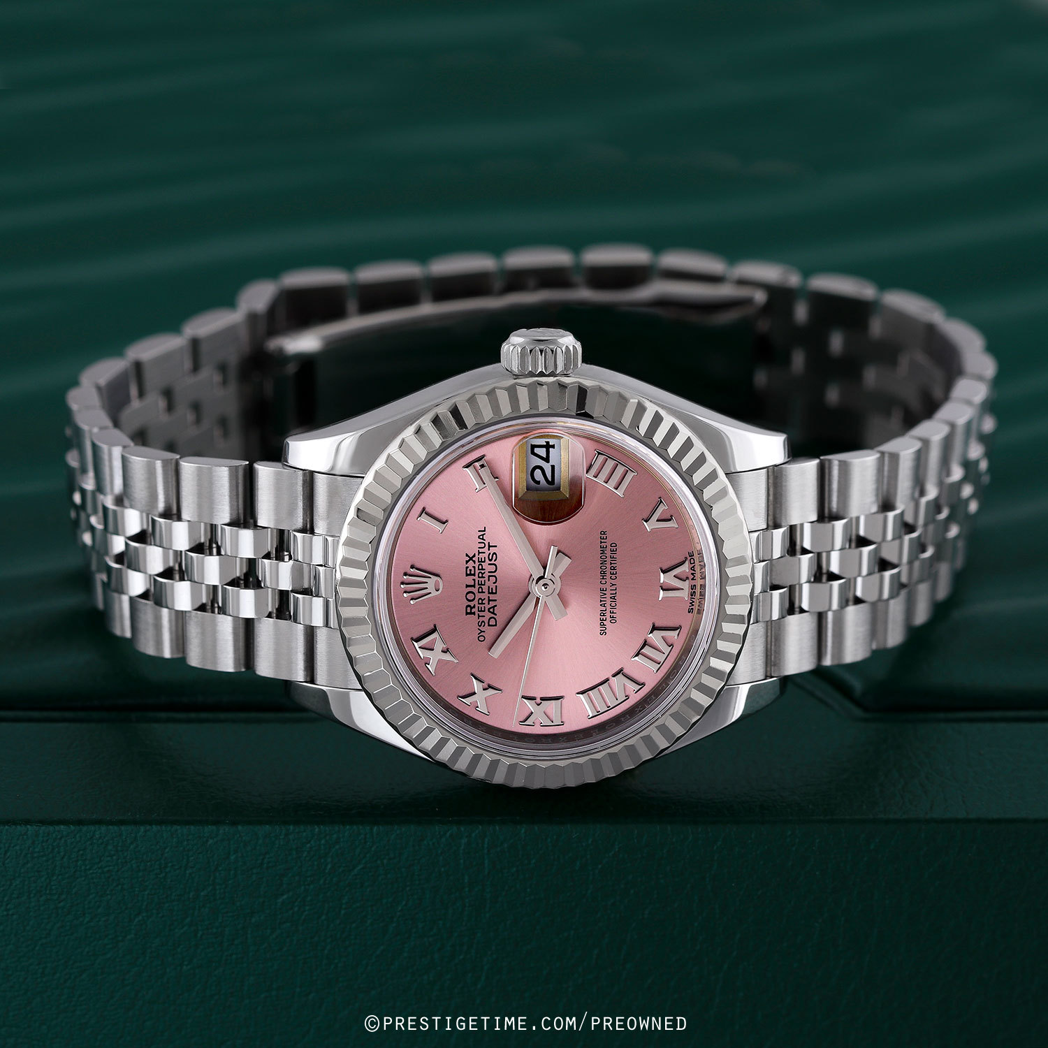Pre-owned Rolex Lady Datejust 28mm Stainless Steel 279174 Pink Roman Jubilee