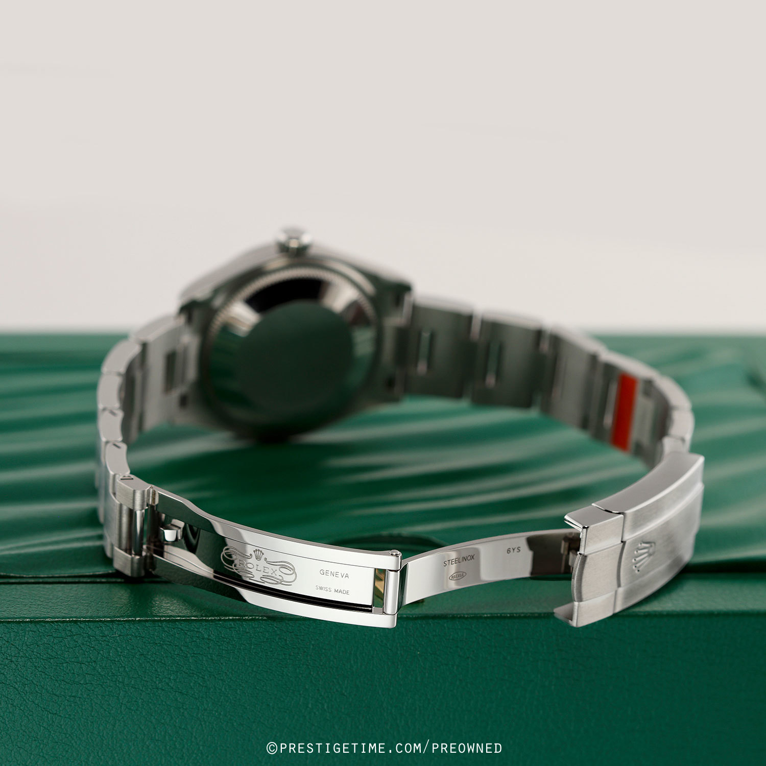 Strap: Fitted on a brushed stainless steel Oyster style bracelet with an a Rolex Folding Oysterclasp deployant clasp. The clasp features Rolex's patented Easylink 5mm comfort extension link. The bracelet is fully linked.