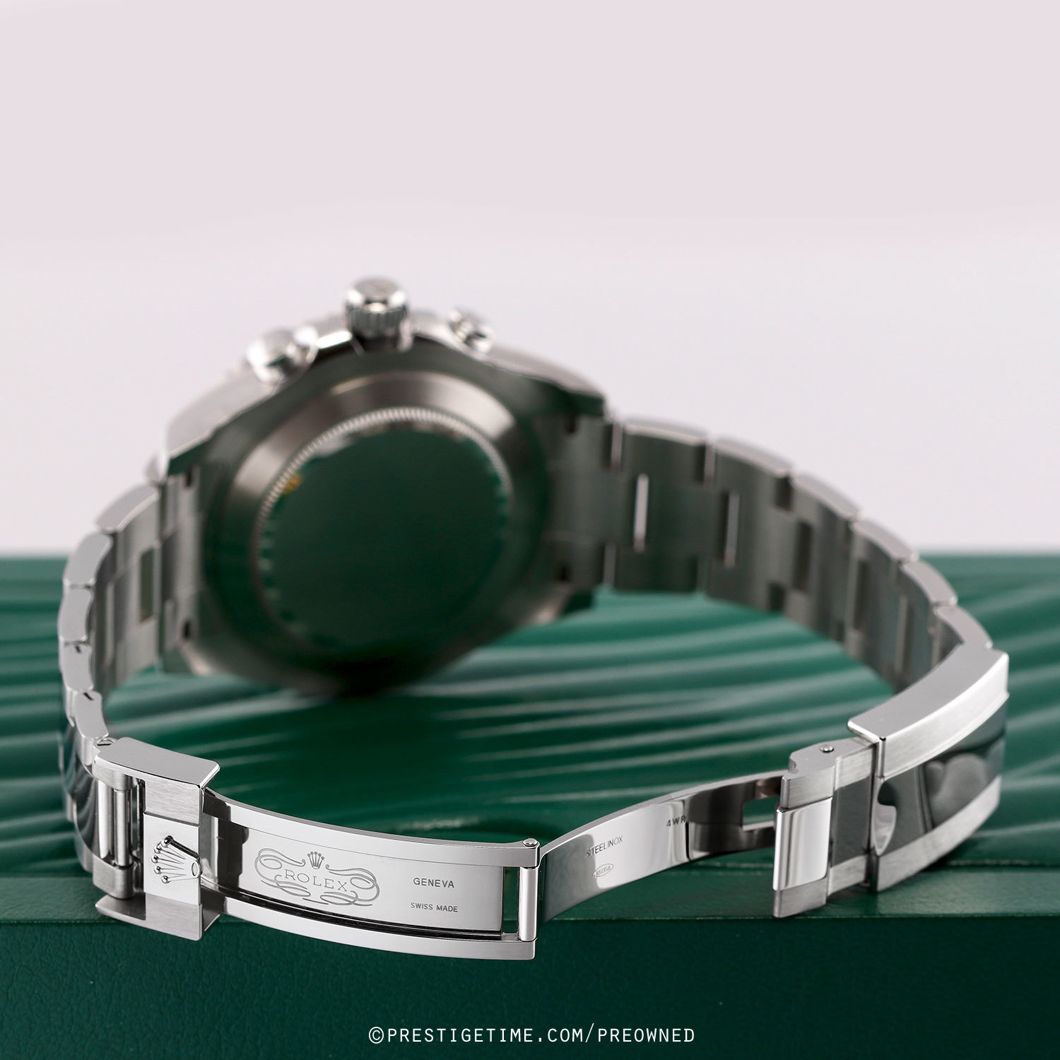 Condition: The watch is new & in unworn condition, however the factory protective stickers have been removed by the authorized dealer at the time of purchase. The watch is delivered with its original box, papers and both the white & green hologram hang-tags.