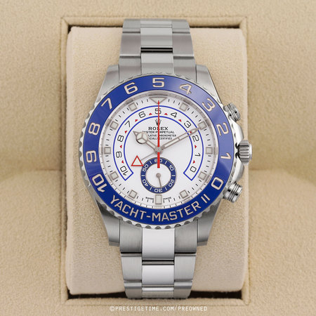 Case: Polished stainless steel case. Polished stainless steel Triplock screw-down crown. Stainless steel bezel ring with a polished blue Cerachrom ceramic insert & with matte silver finished engraved indications. White dial. Polished hours, minutes & small seconds hands. Applied polished hour markers with luminous fill. Printed minute/seconds track on the dial perimeter. Small seconds sub-dial at 6 o'clock.