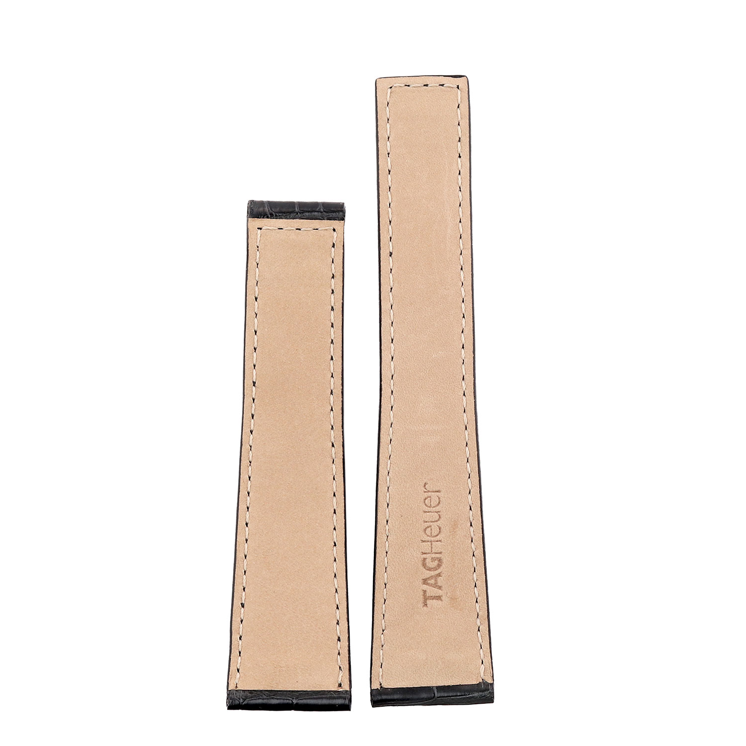 Genuine Tag Heuer black alligator leather strap for deployant buckle.