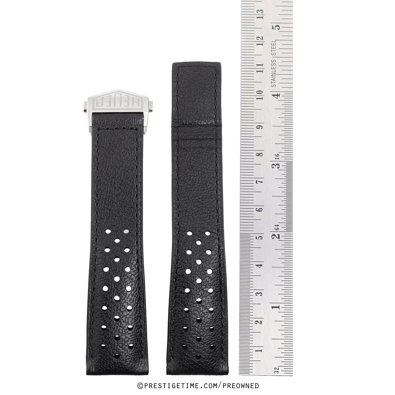 Genuine Tag Heuer black perforated calfskin strap with steel deployant buckle to fit Monaco Models.