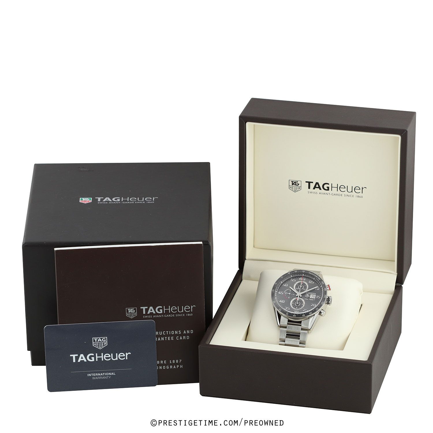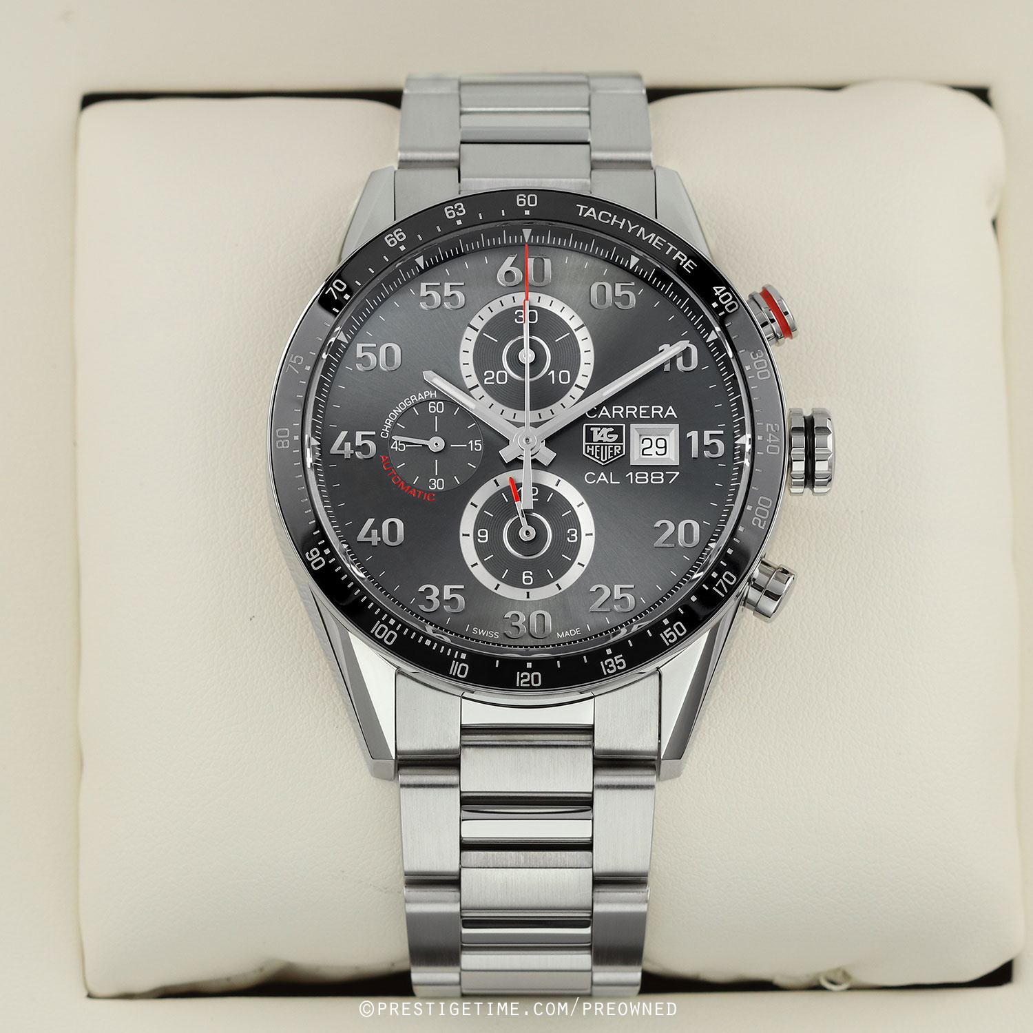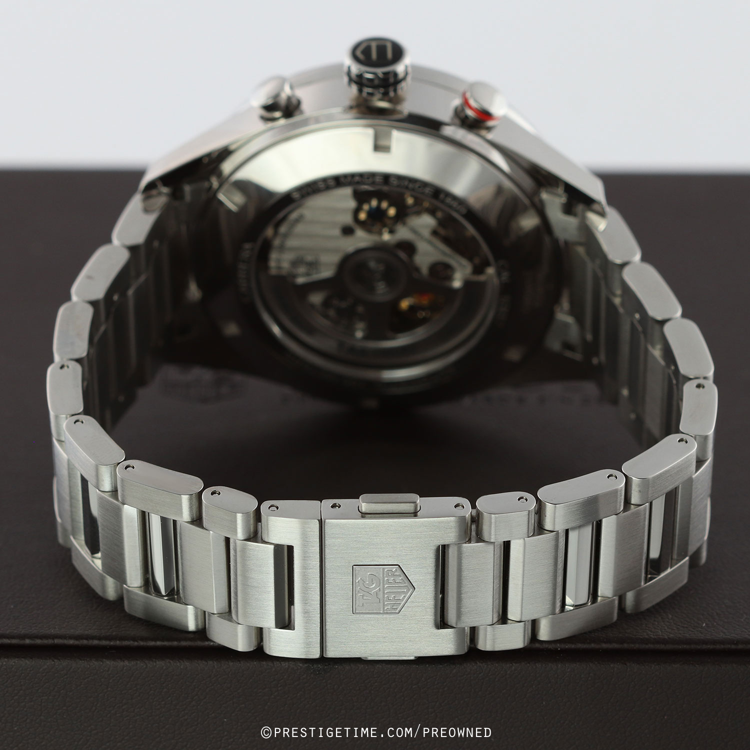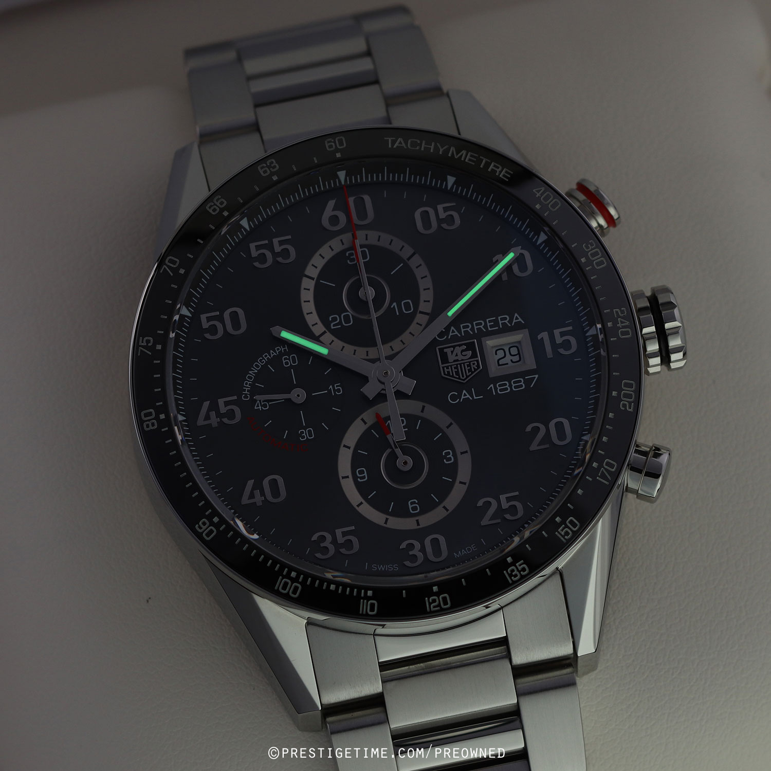 Movement: Powered by a TAG Heuer caliber 1887, beats at 28,800 vph, contains 39 jewels & has a power reserve of +/- 50 or +/- 40 hours when the chronograph is running.