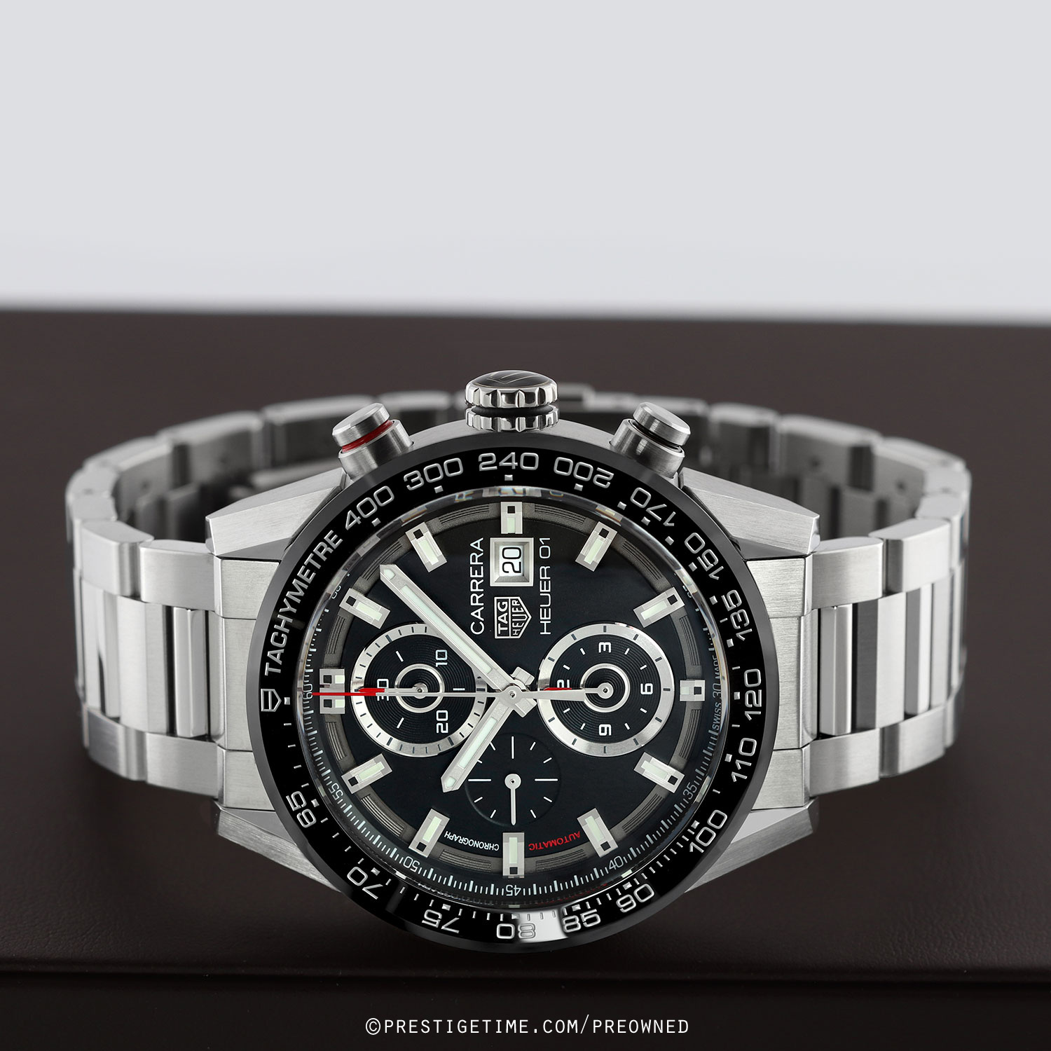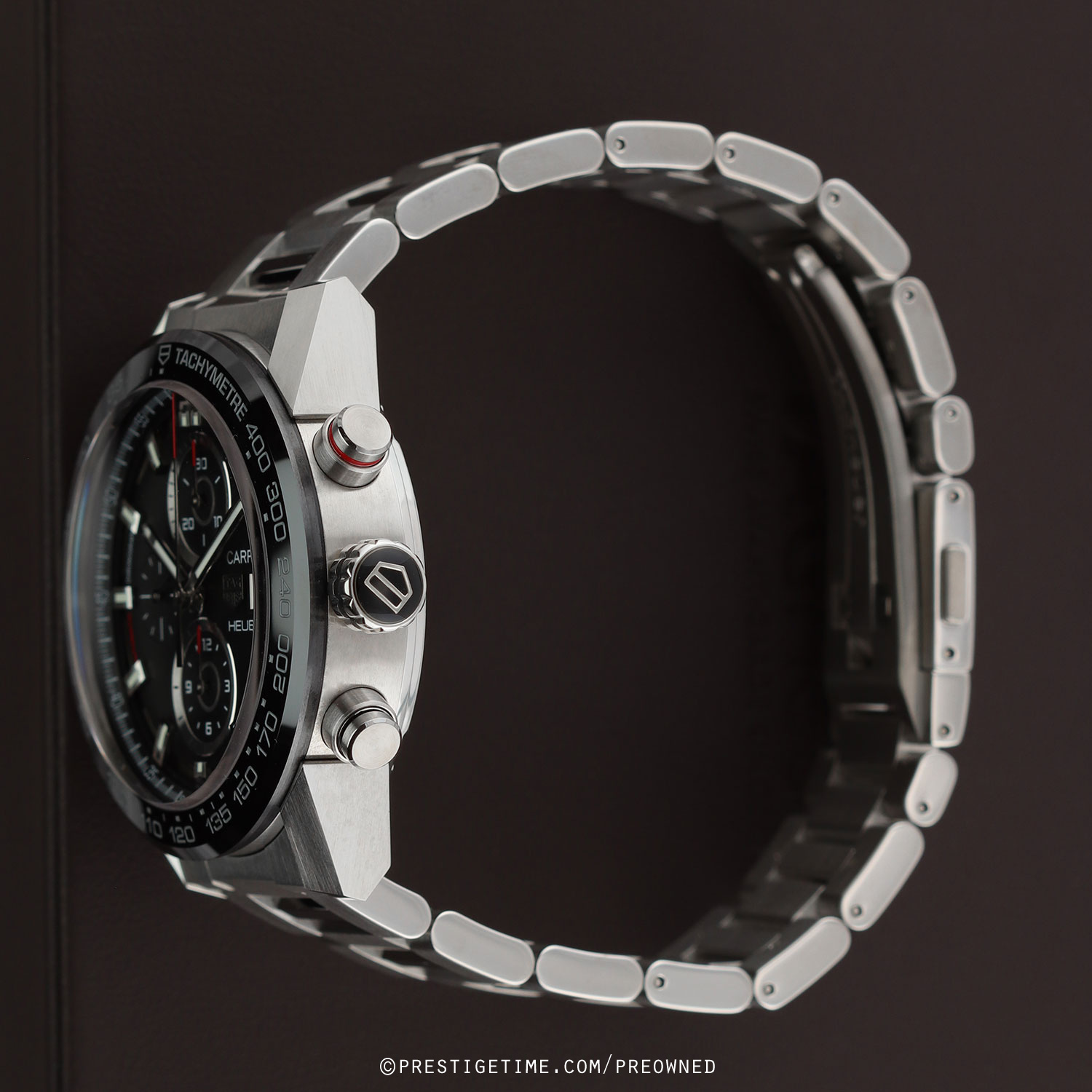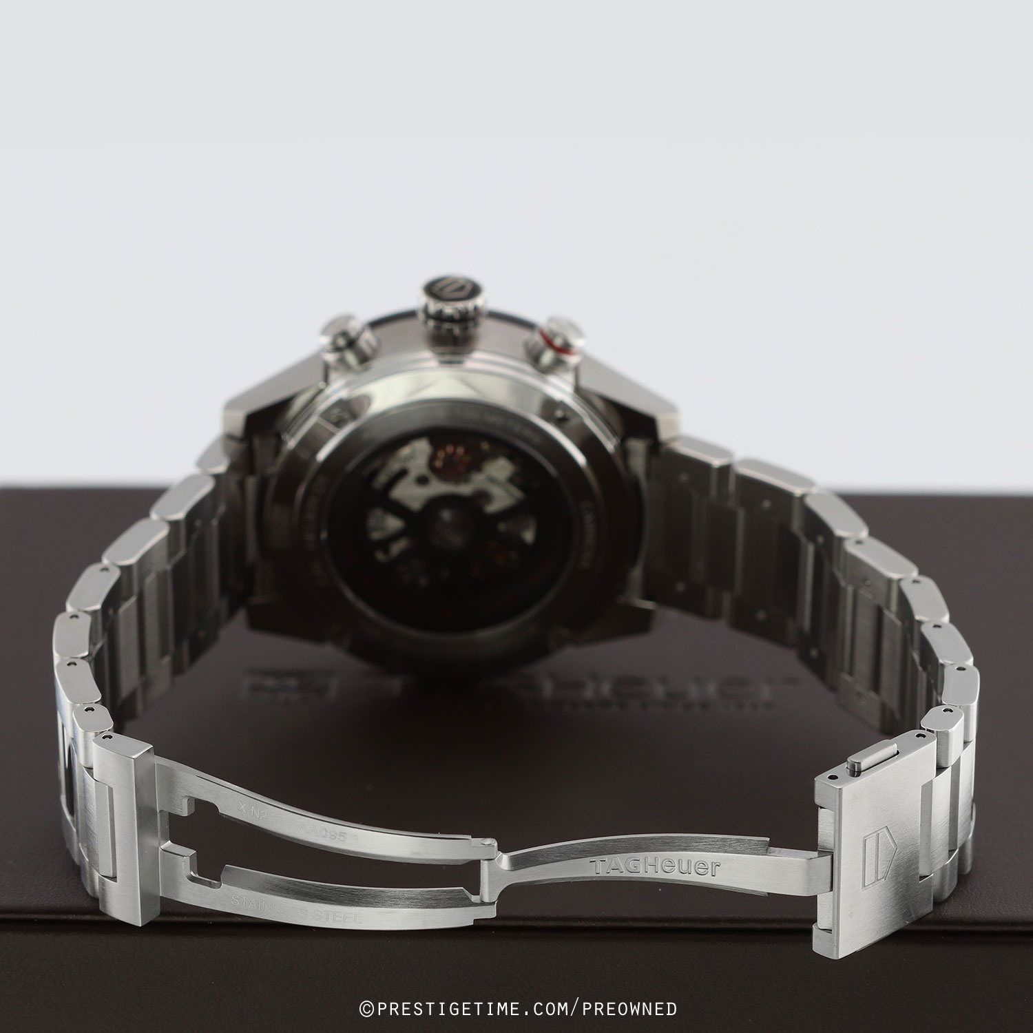 Movement: Powered by a TAG Heuer caliber 01, beats at 28,800 vph (4Hz), contains 39 jewels & has a power reserve of +/-50 hours if just the watch is running or +/- 40 hour if the chronograph function is running.