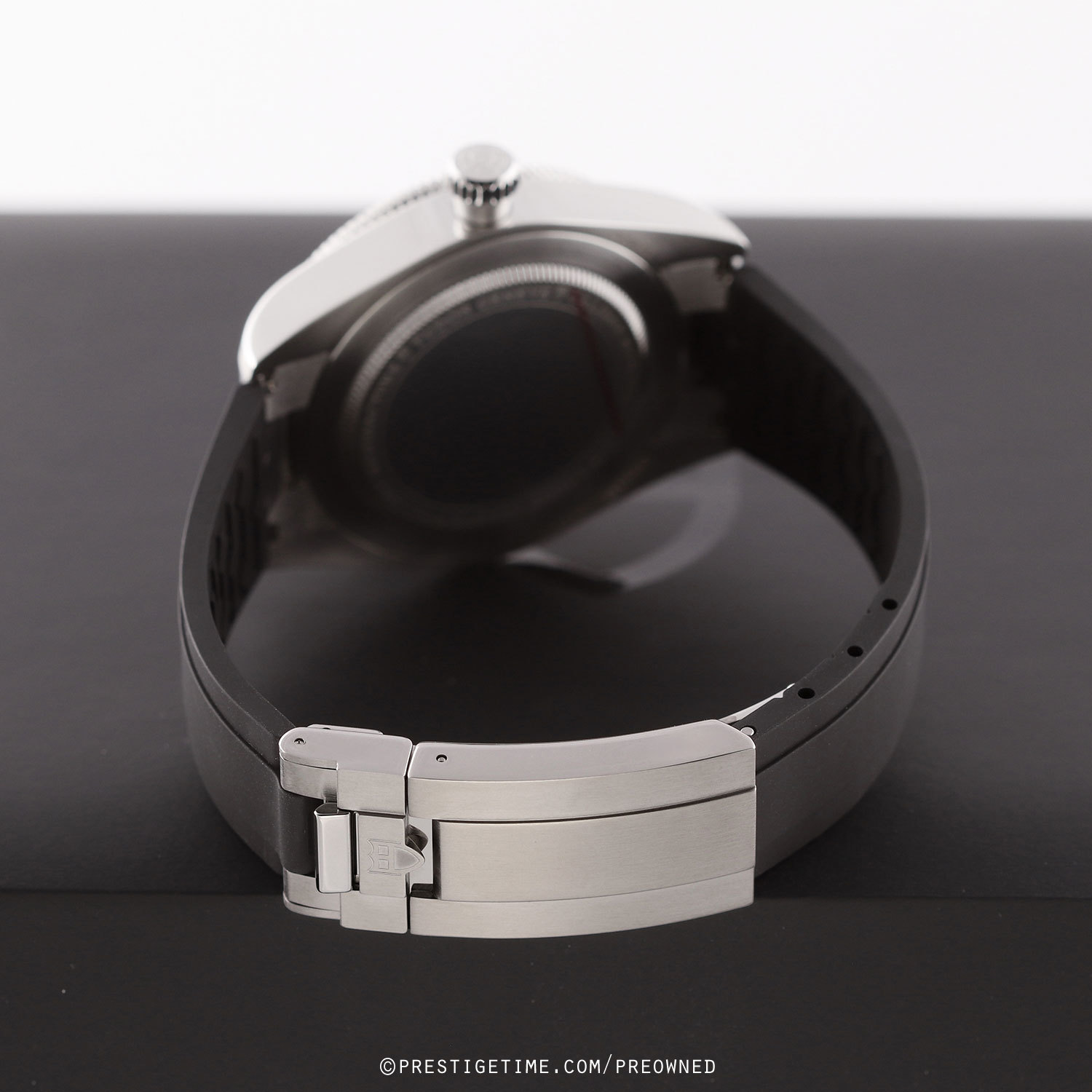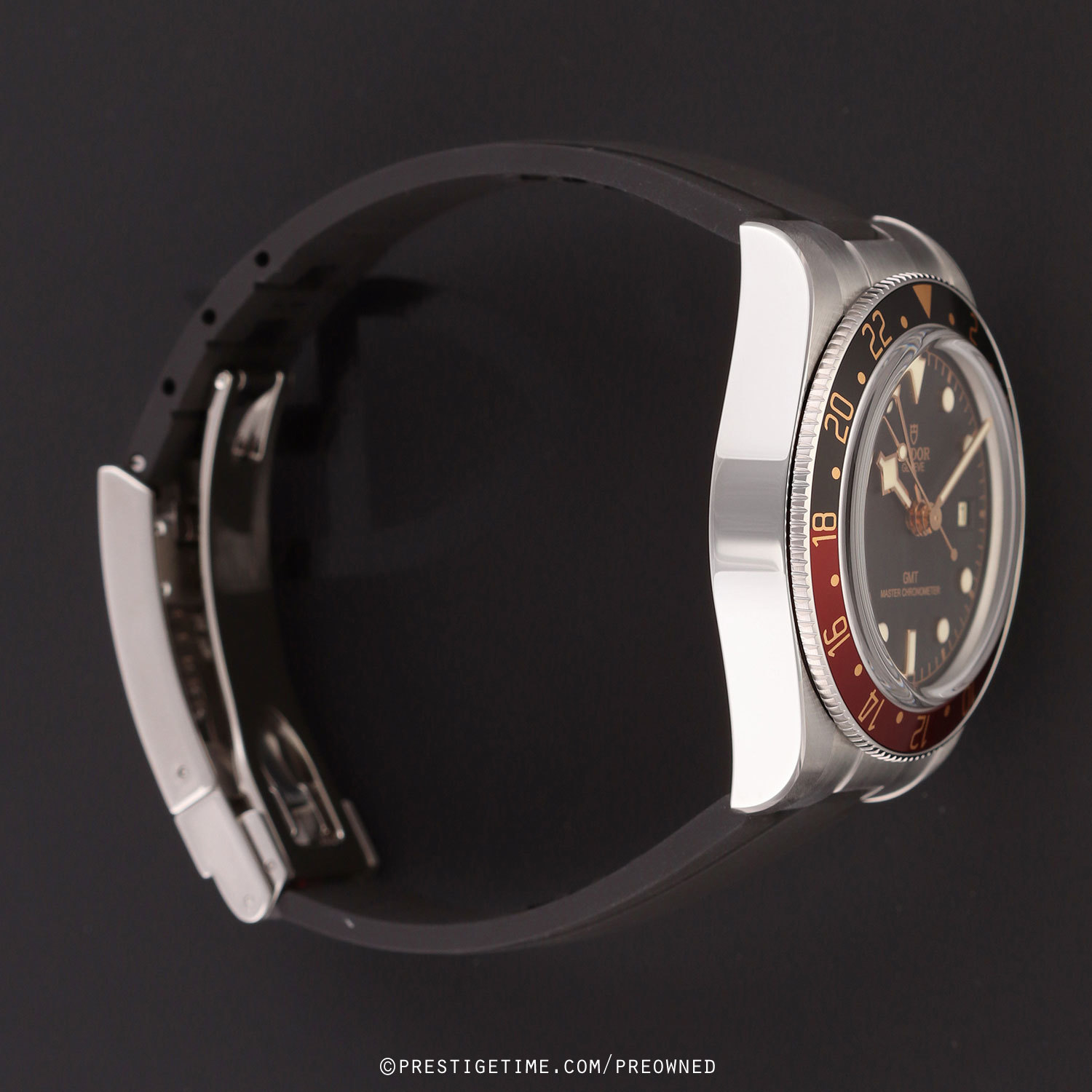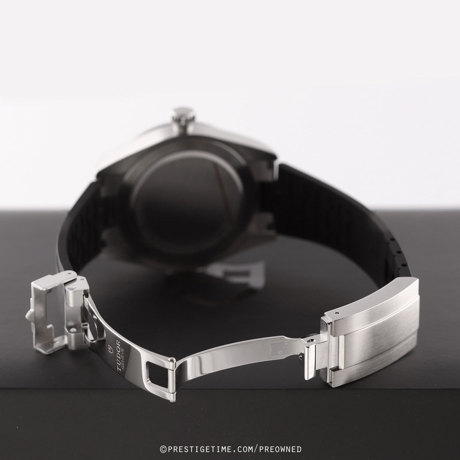 Strap: Fitted with its original Tudor black rubber with with a stainless steel Tudor T-fit deployant clasp. The strap is unworn in new condition with its full wear lifespan remaining. The strap is uncut at its full length, fitting up to an 8" wrist, it would most likely need to be cut down to size.