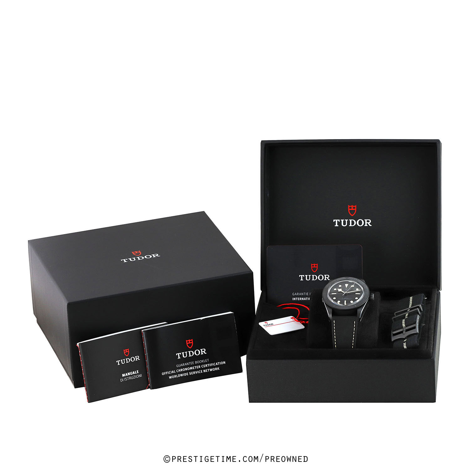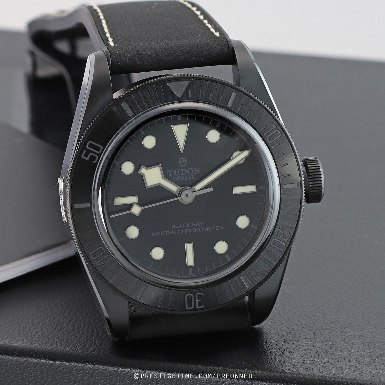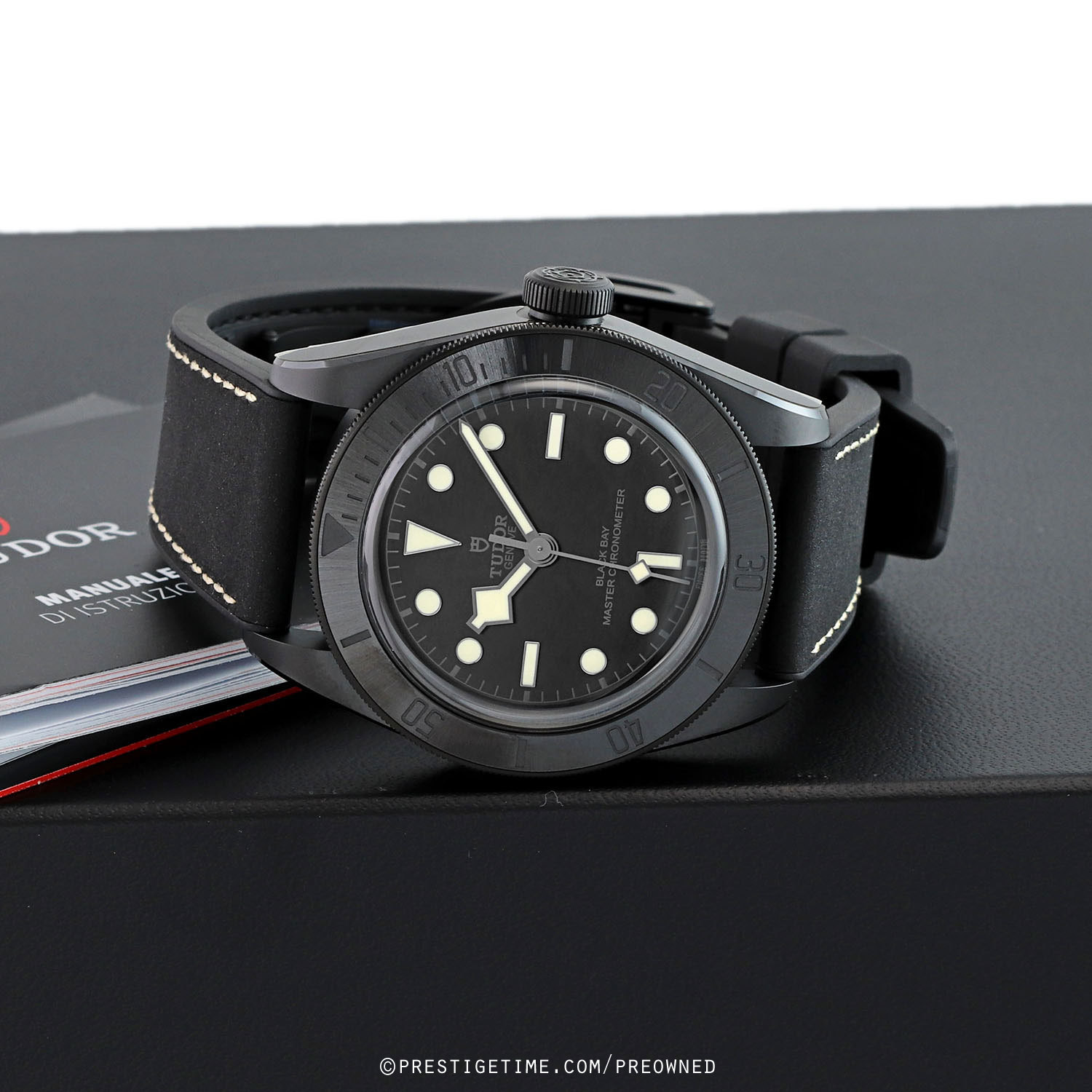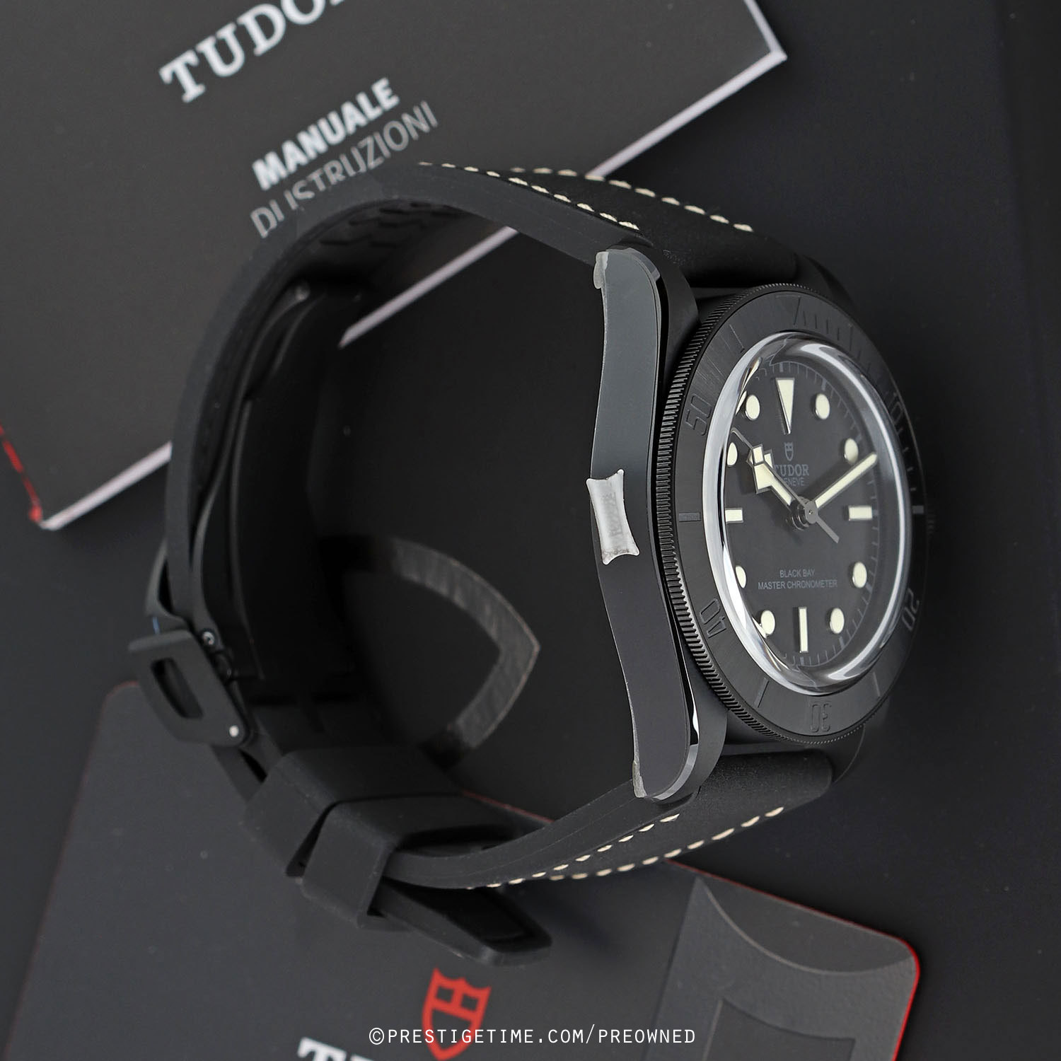 - Fitted with its original Tudor black calfskin leather with black rubber lining strap and with a matte black PVD coated stainless steel deployant buckle. The strap is unworn and in new condition with its full wear lifespan remaining.