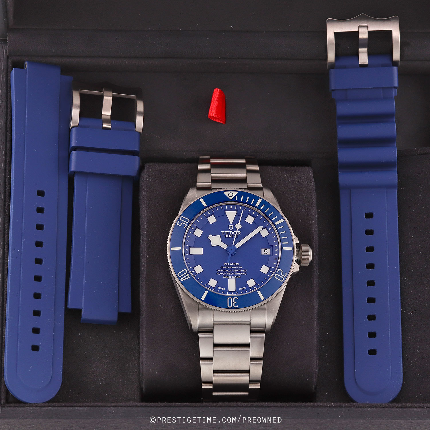 - Delivered with an additional Tudor original blue rubber strap with a tang buckle & a divers extension strap with a tang buckle. The strap is unworn in new condition with its full wear lifespan remaining.