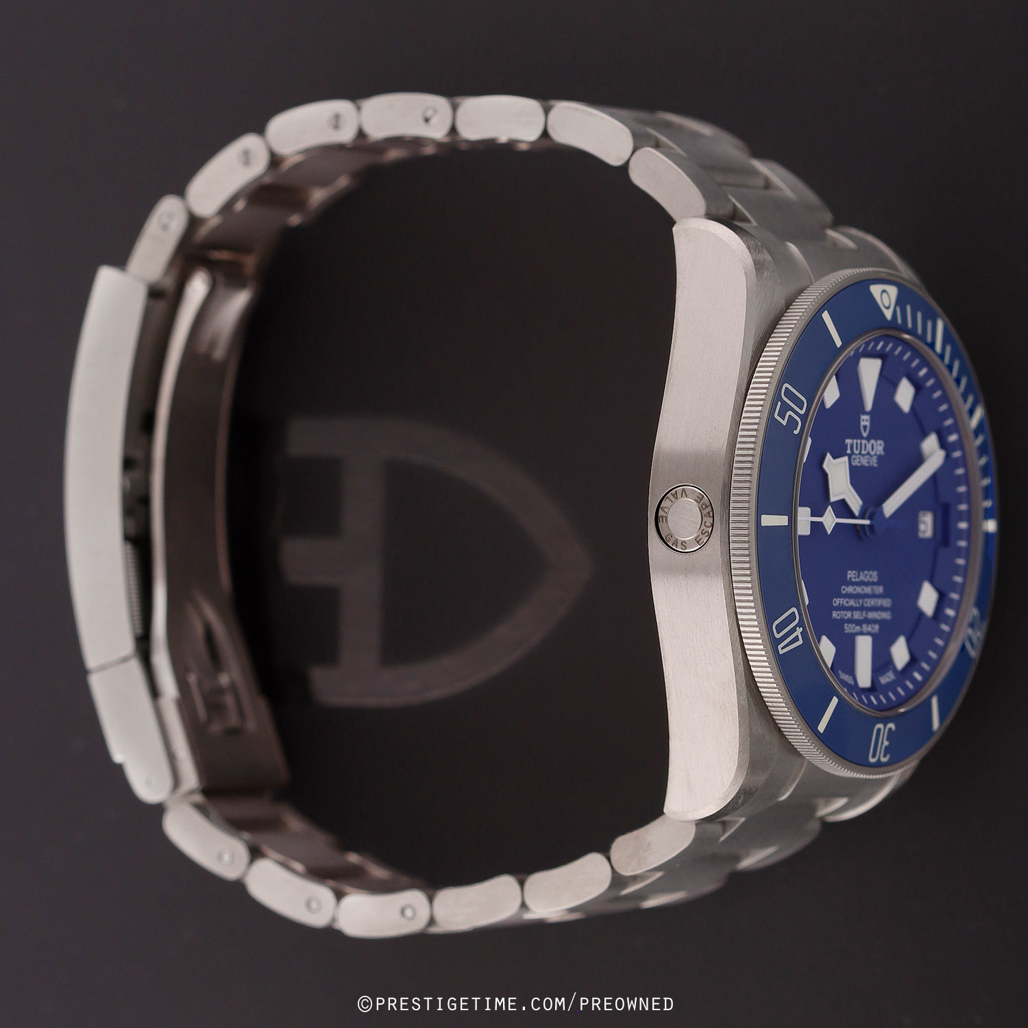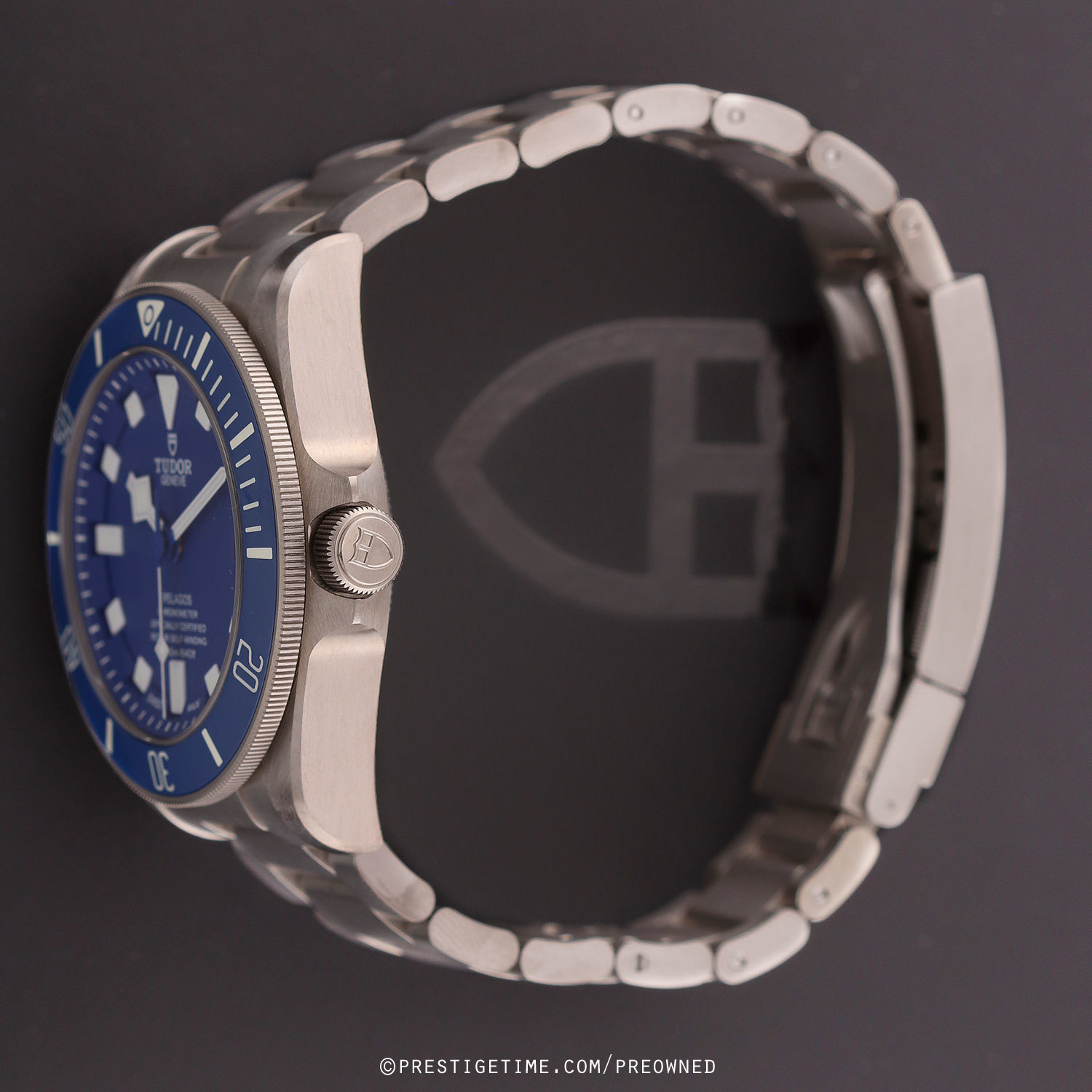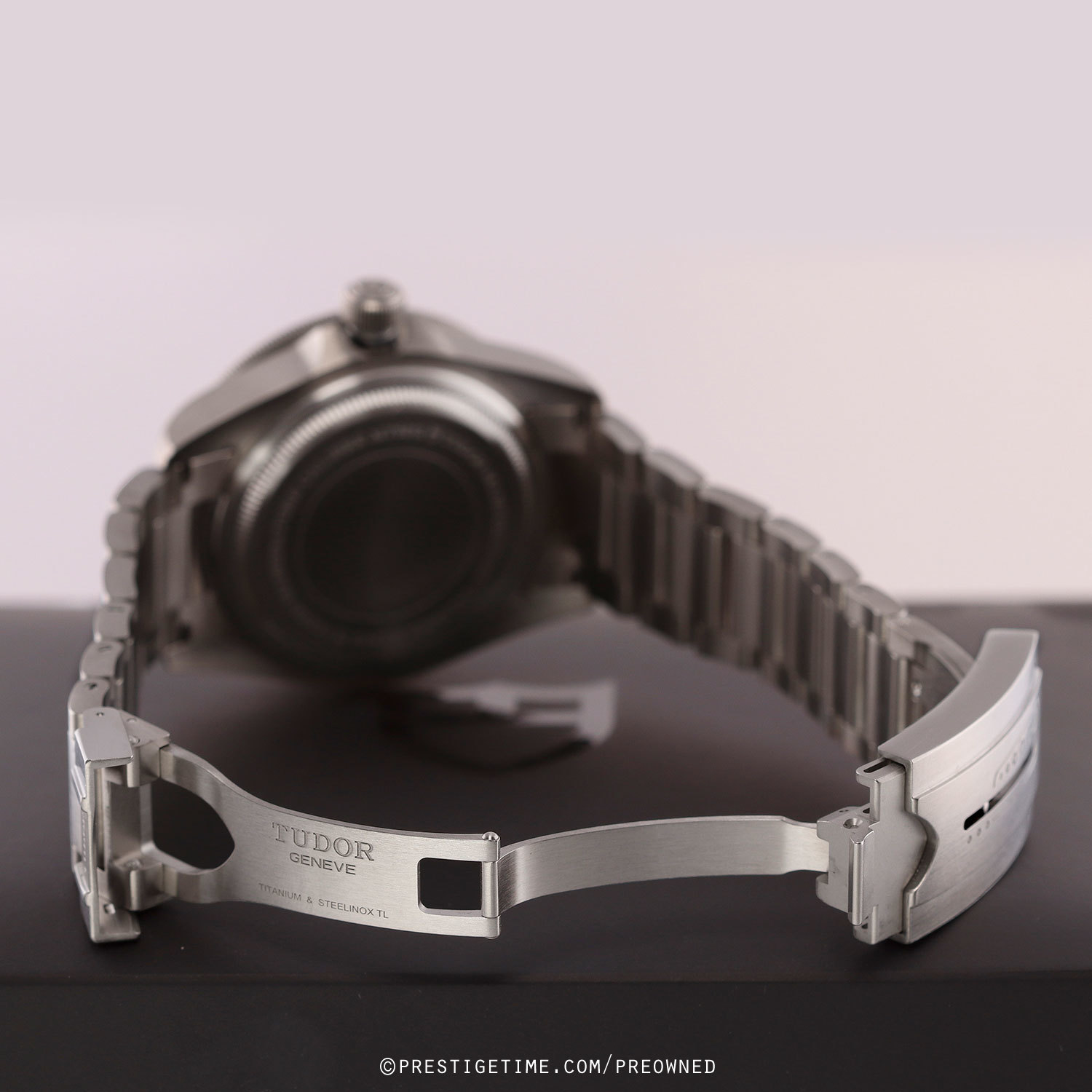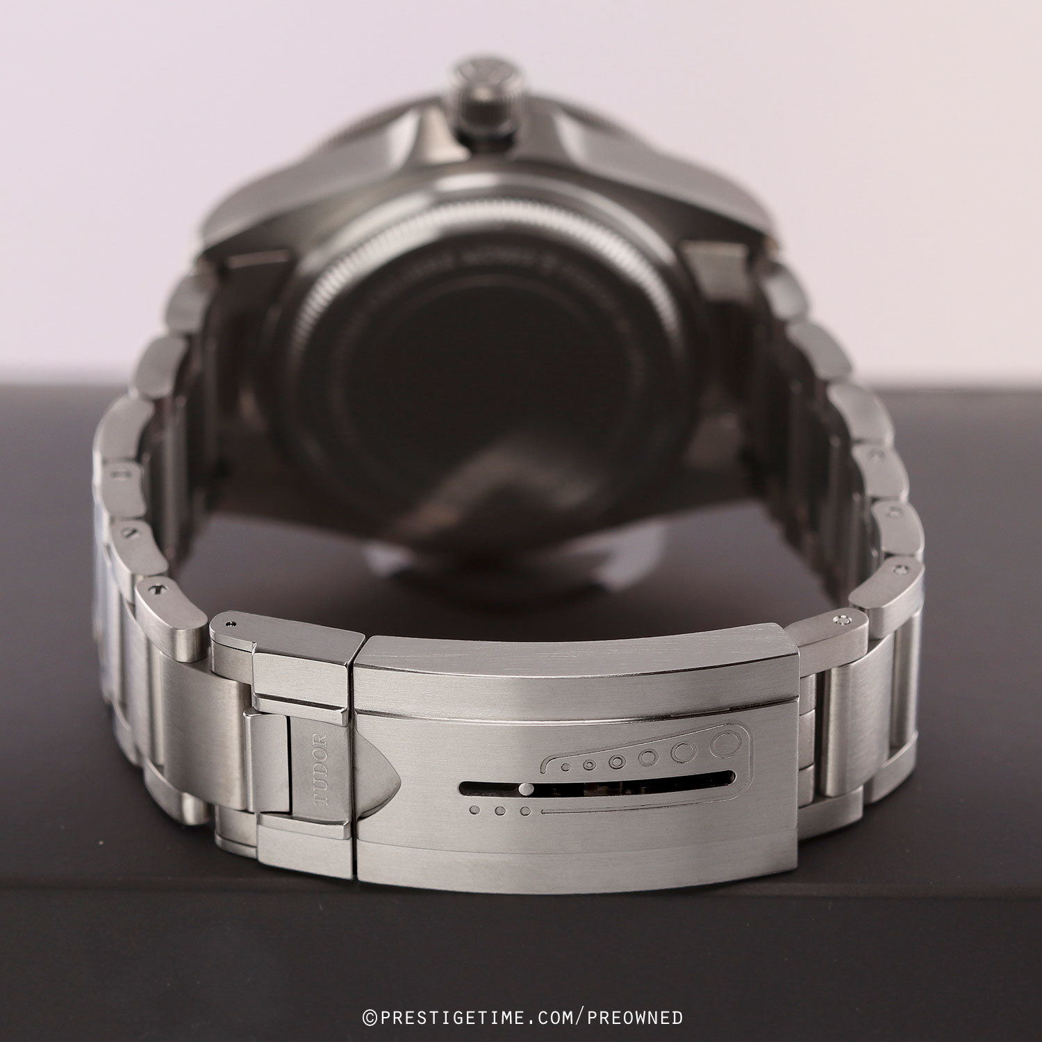 - Fitted on its original brushed titanium bracelet with a folding clasp & safety latch. The bracelet is fully linked & will fit up to a 8" wrist. The buckle features a Tudor patented divers extension system.