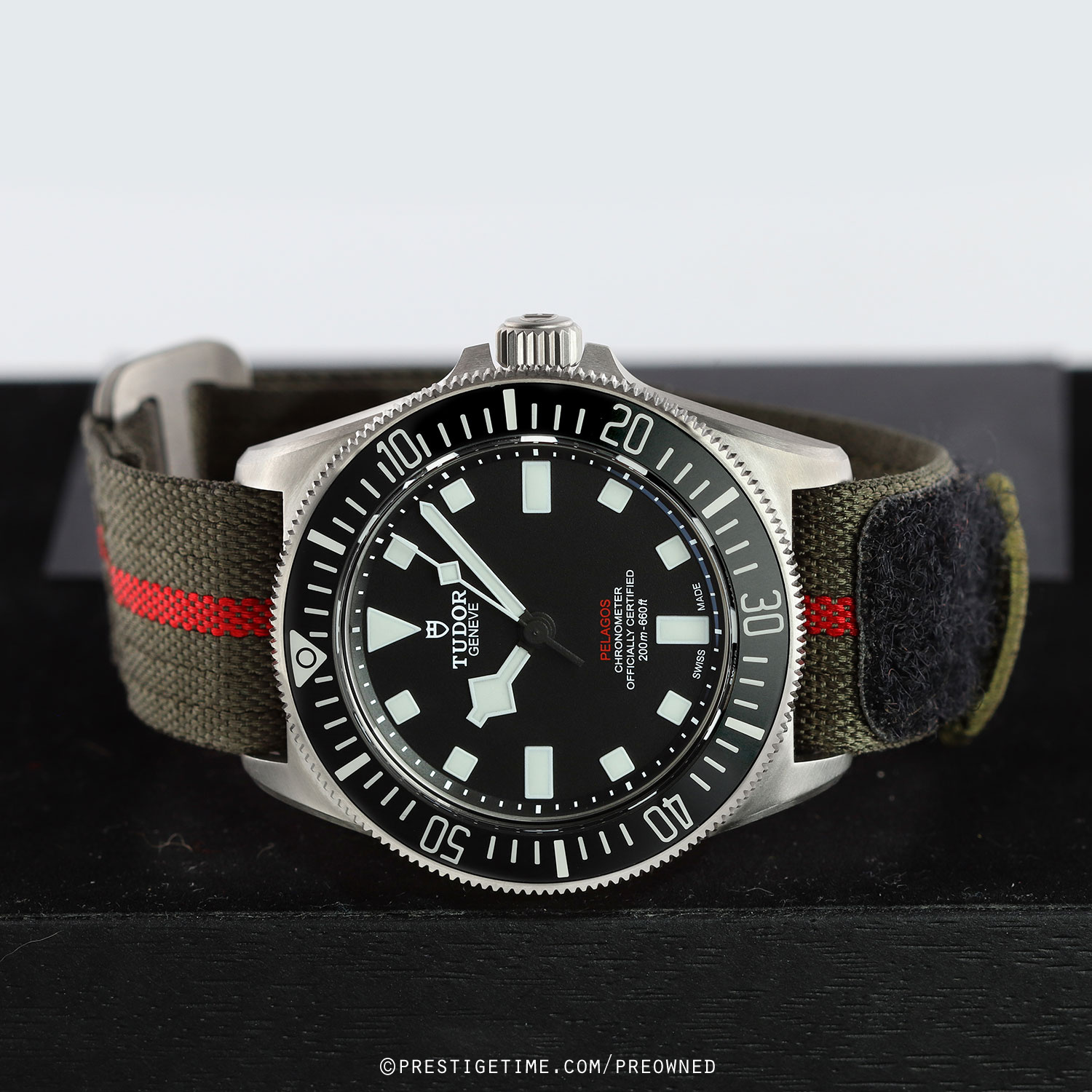 - Fitted on its original forest green fabric strap with a Velcro fastening system. This strap is in excellent, near new condition with the majority of its wear lifespan remaining. We would be comfortable rating the strap as in 96% condition.