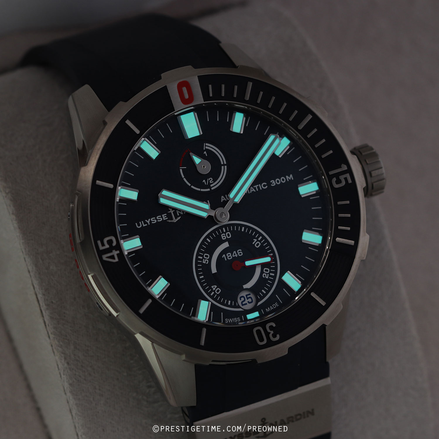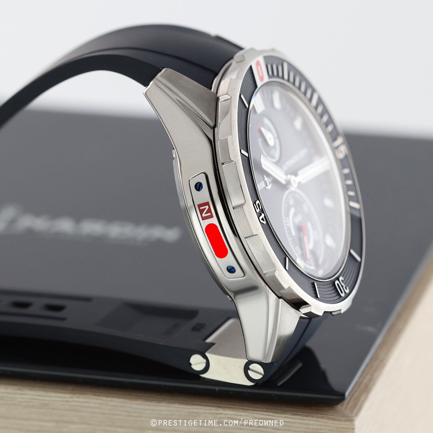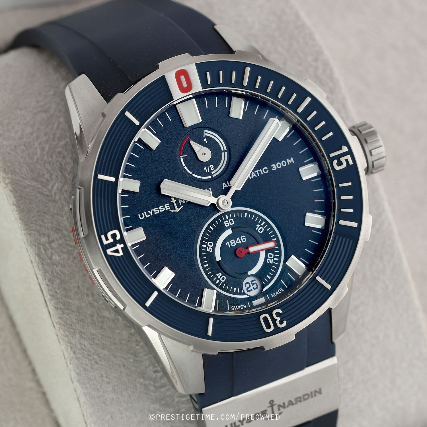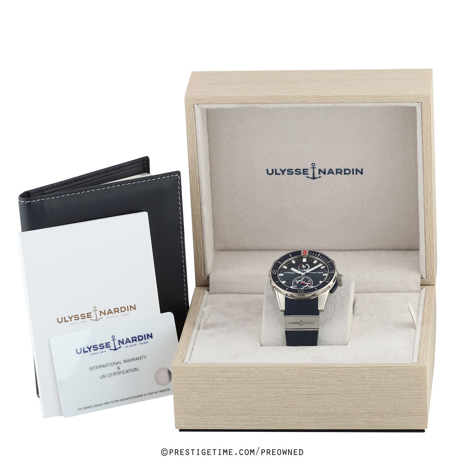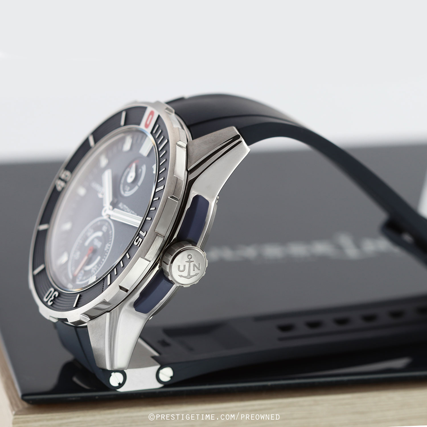 Strap: Fitted on a new Ulysse Nardin original blue rubber strap with a single titanium element & a tang buckle. The strap is unworn, in new condition with its full wear lifespan remaining.