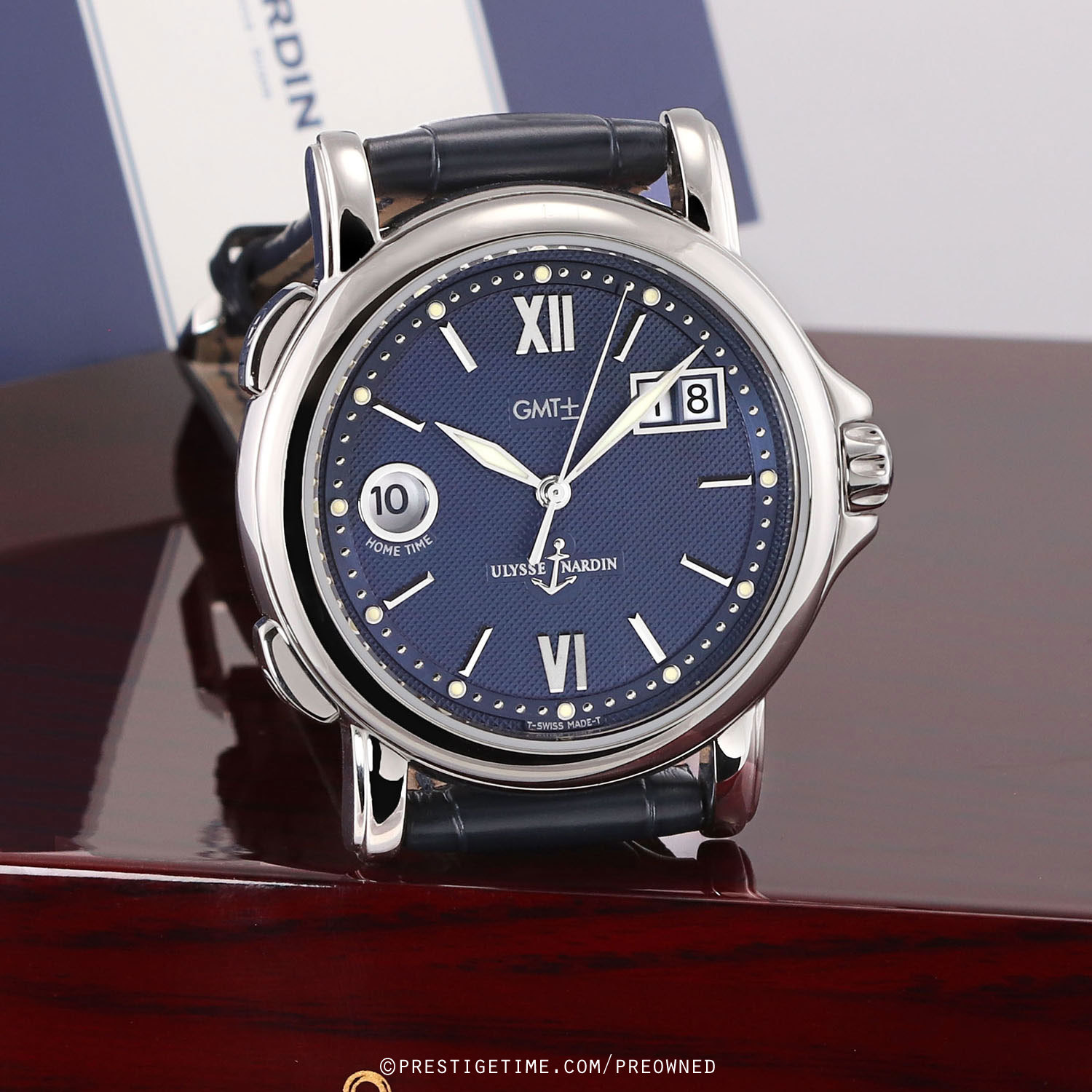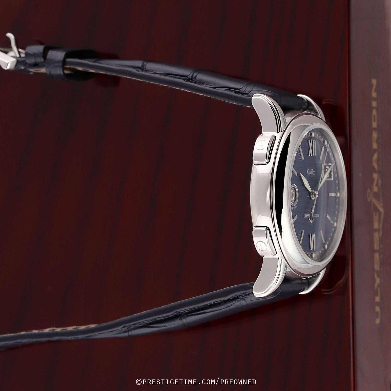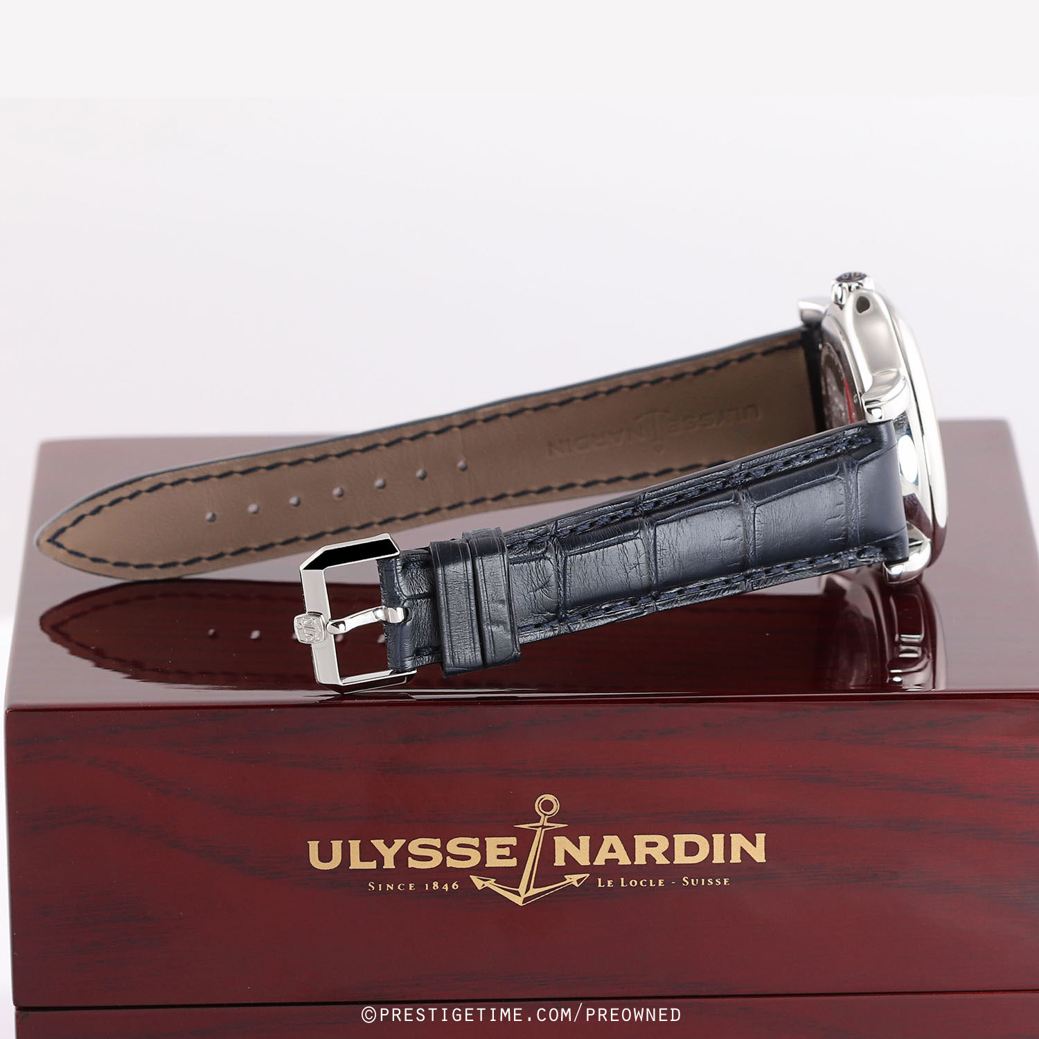 Strap: Fitted on a brand new original Ulysse Nardin blue alligator leather strap with a stainless steel buckle tang buckle. The strap is brand new & unworn with its full wear life-span remaining.