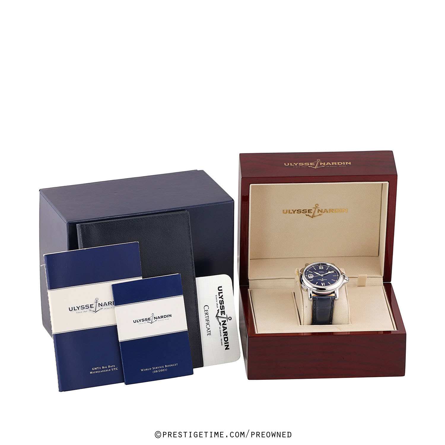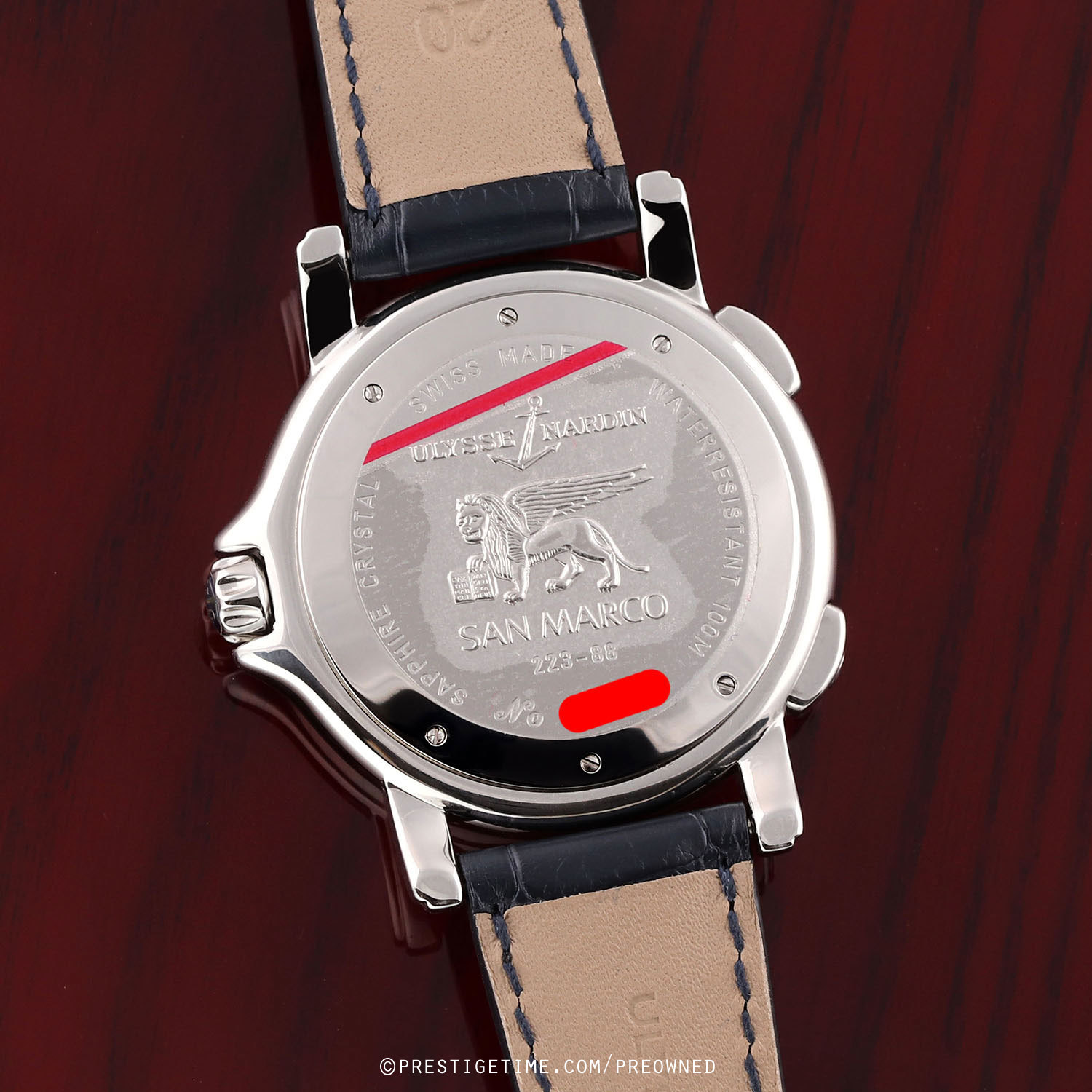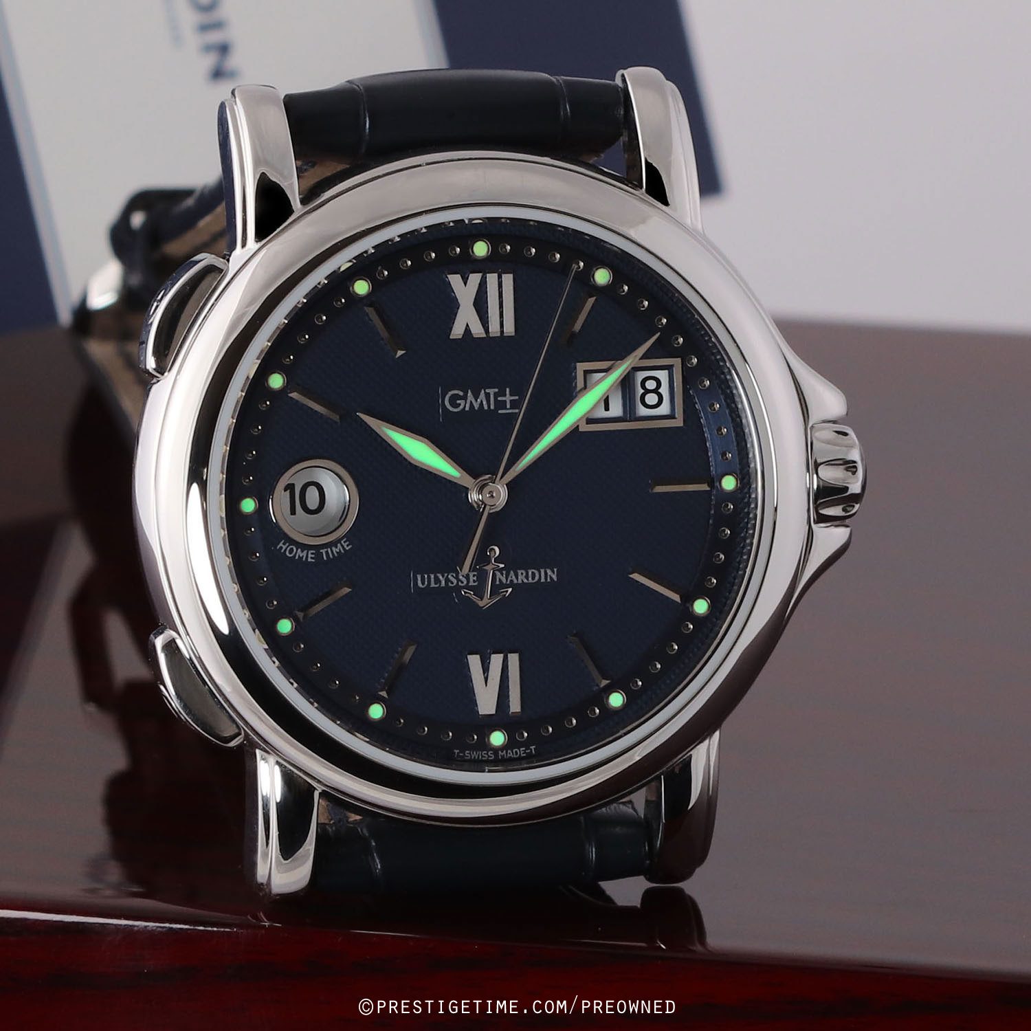 Strap: Fitted on a brand new original Ulysse Nardin blue alligator leather strap with a stainless steel buckle tang buckle. The strap is brand new & unworn with its full wear life-span remaining.