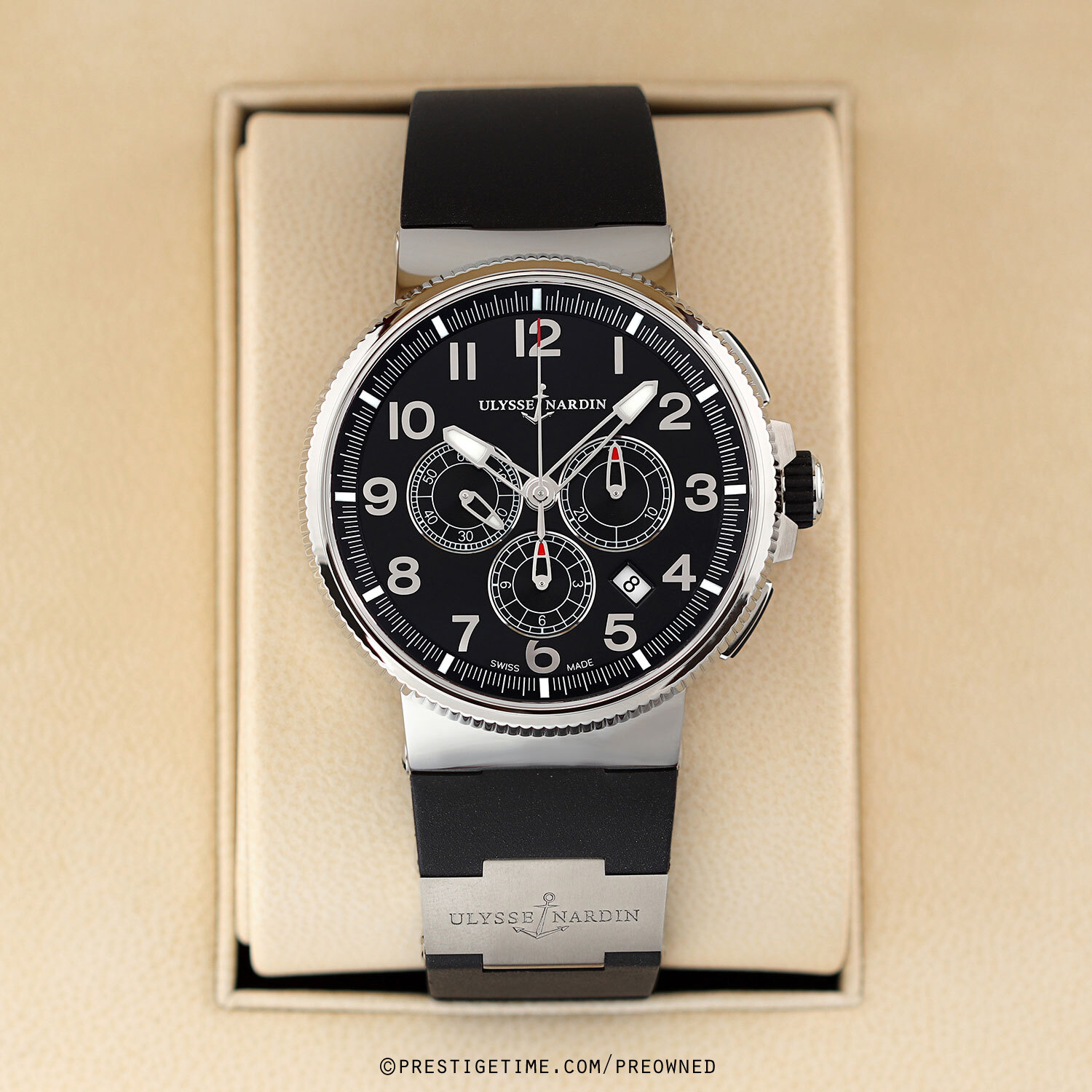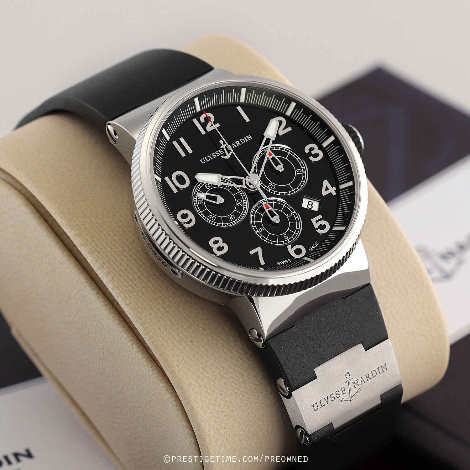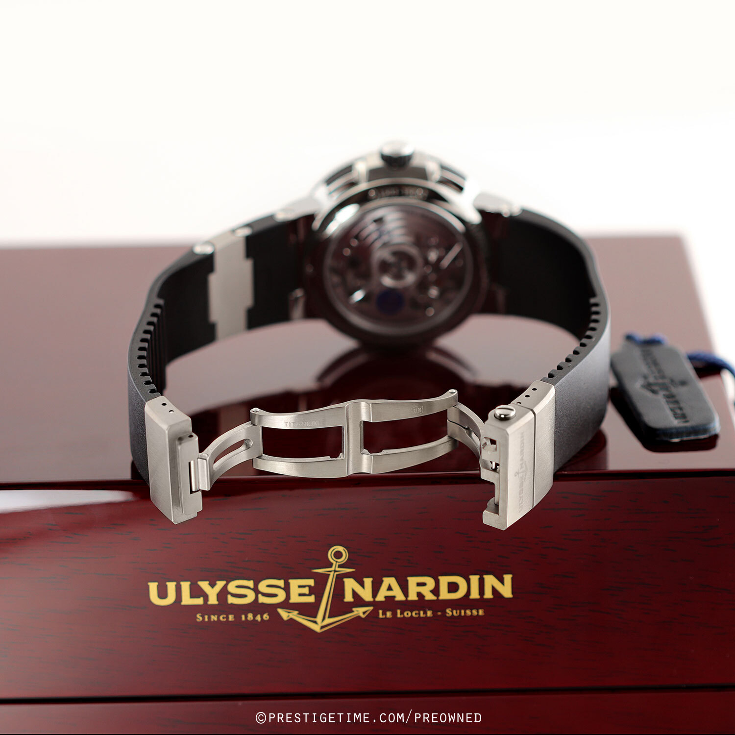 Strap: Fitted on its OEM Ulysse Nardin black rubber strap with an integrated titanium element & a titanium push button deployant clasp .